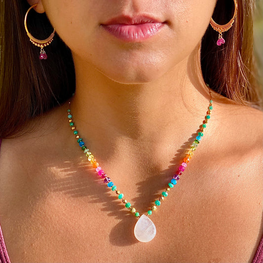 Golden Droplet Hoops with Moonstones, Medium (21MM)