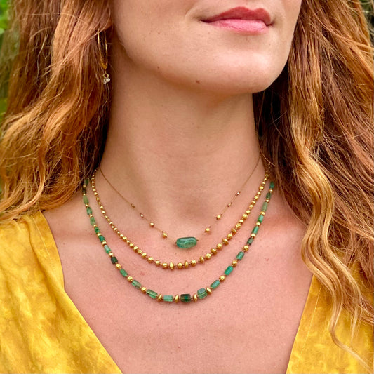 Emerald Cylinders with Gold Beads