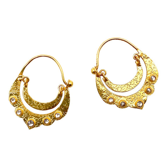 Hand-Hammered Golden Droplet Hoops with Light Diamonds