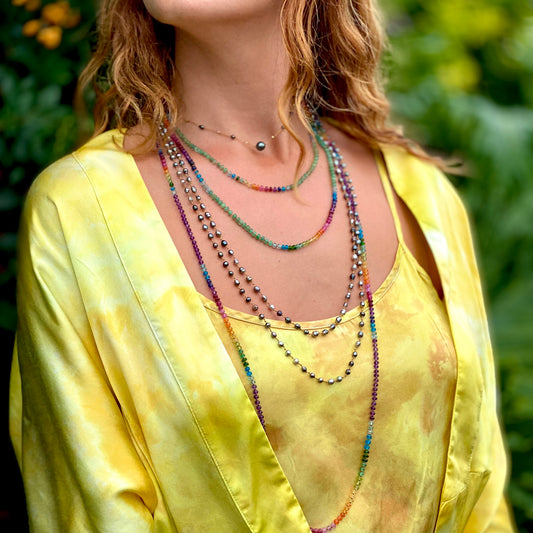 Big Tahitian Pearl & Pink Sapphire Long Rainbow Lei