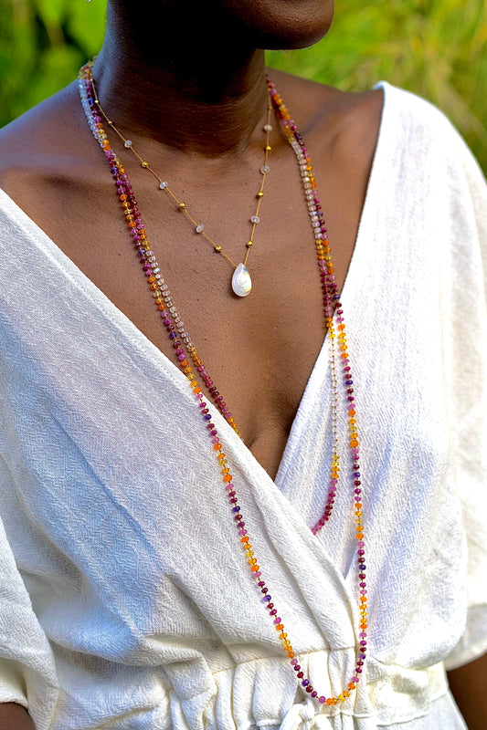 Big Tahitian Pearl & Pink Sapphire Long Rainbow Lei