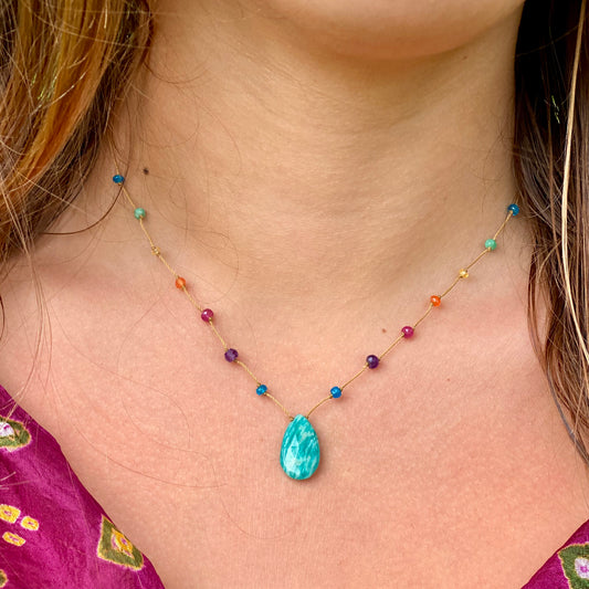 Aqua Amazonite Rainbow Lei