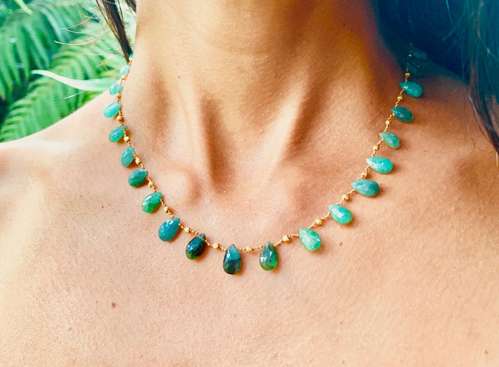 I decided to expand my collection and delve deeper into the Ali'i series. I chose five different gemstones for Ali'i necklaces, each representing one of the five elements. For the element of Metal/White, I have selected Moonstone. Emerald, a beautiful green gemstone, represents the element of Wood. To embody the element of Water/Blue, I have chosen Aquamarine and Blue Sapphire. For Fire/Red, I have opted for Pink Sapphire (or Ruby). To symbolize the element of Earth/Yellow, I have selected Pomegranate Gems and Citrine. These gemstones possess vibrant colors and distinct energies that bring a sense of balance and harmony to my personal practice. I LOVE all of my Ali'i necklaces.
