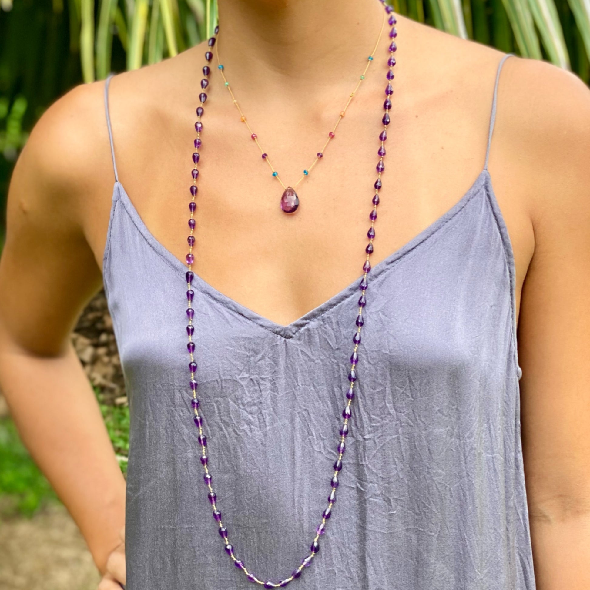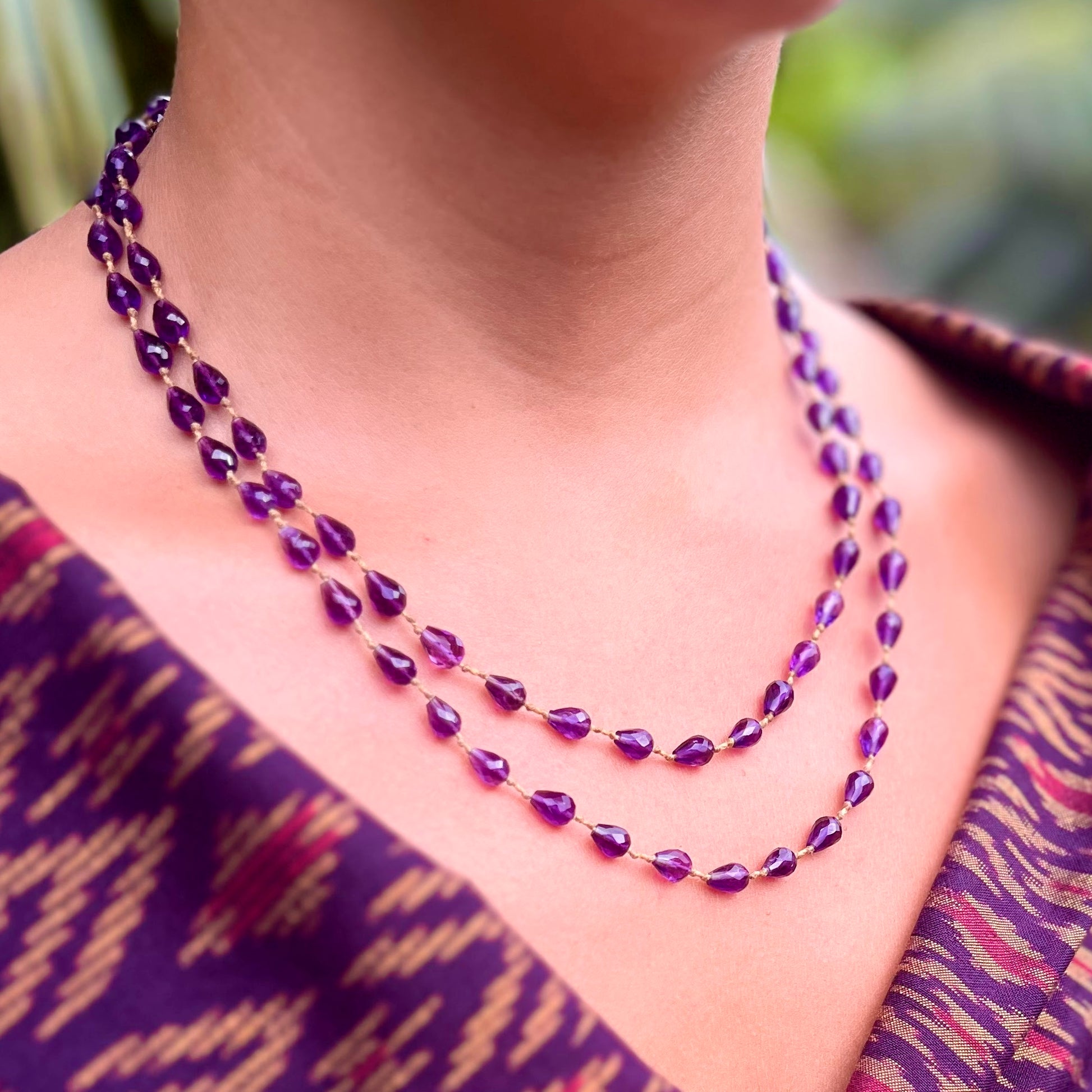 Sparkling Royal Purple Amethyst drops. Can be worn singled, doubled or sometimes wrapped around the wrist.