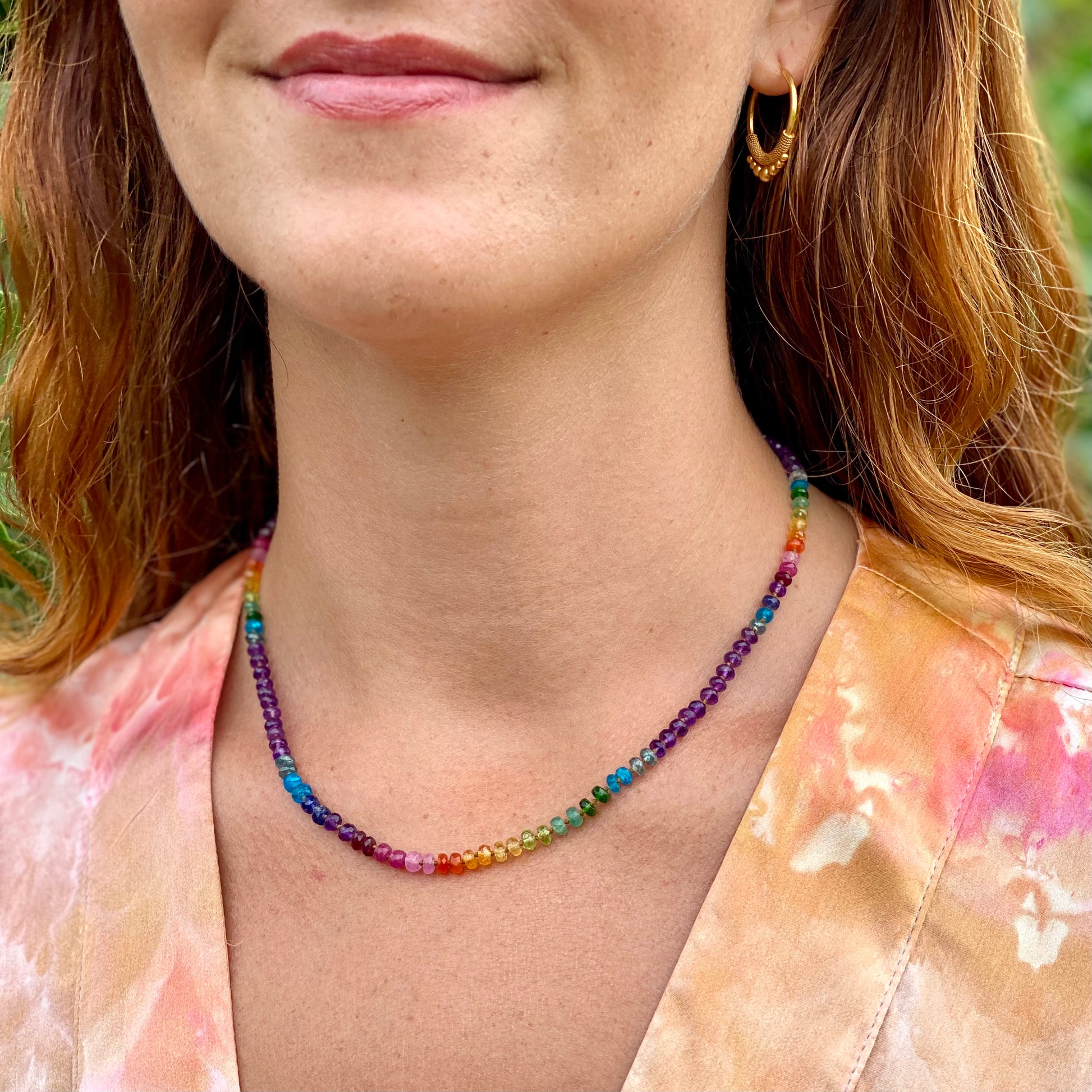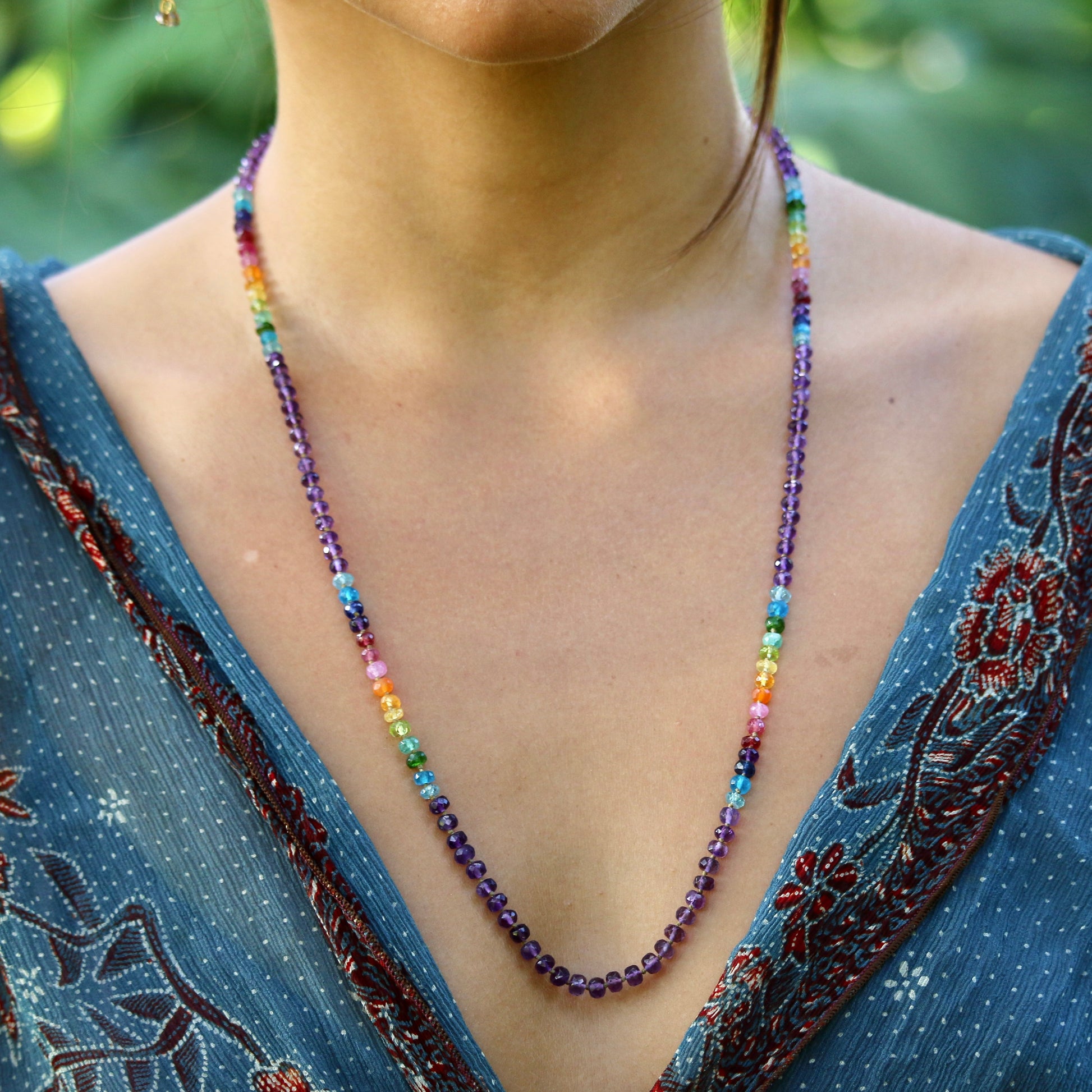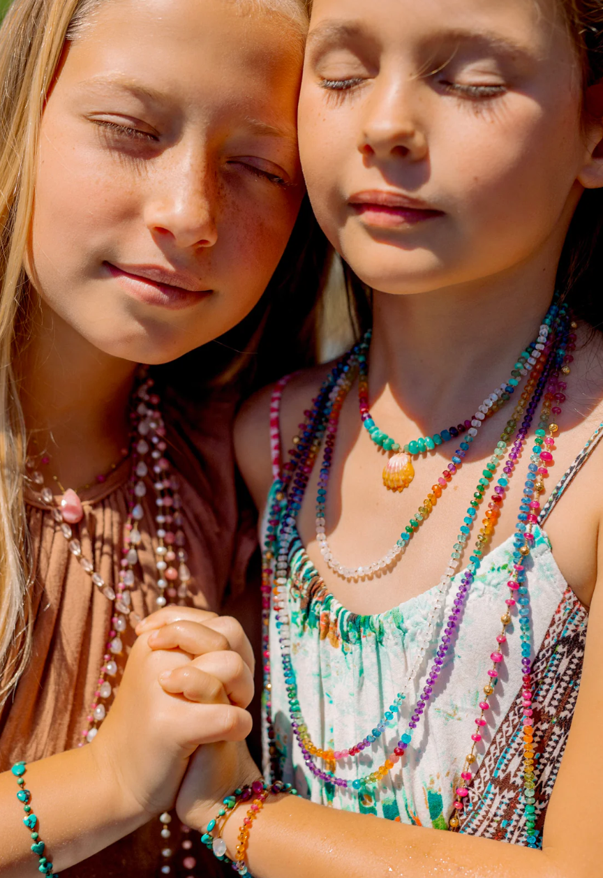 You can layer Rainbow Leis with with both our Alohi or Rainbow Drop collections. They are also a lovely compliment to our Rainbow Mana pieces and can be worn to bring forth dynamic color contrast or chosen mineral emphasis.