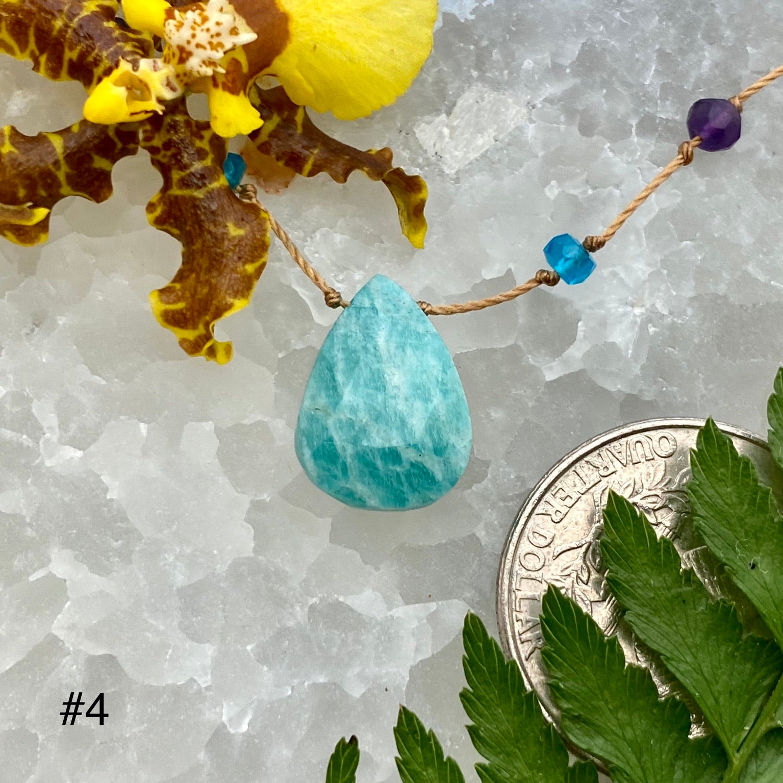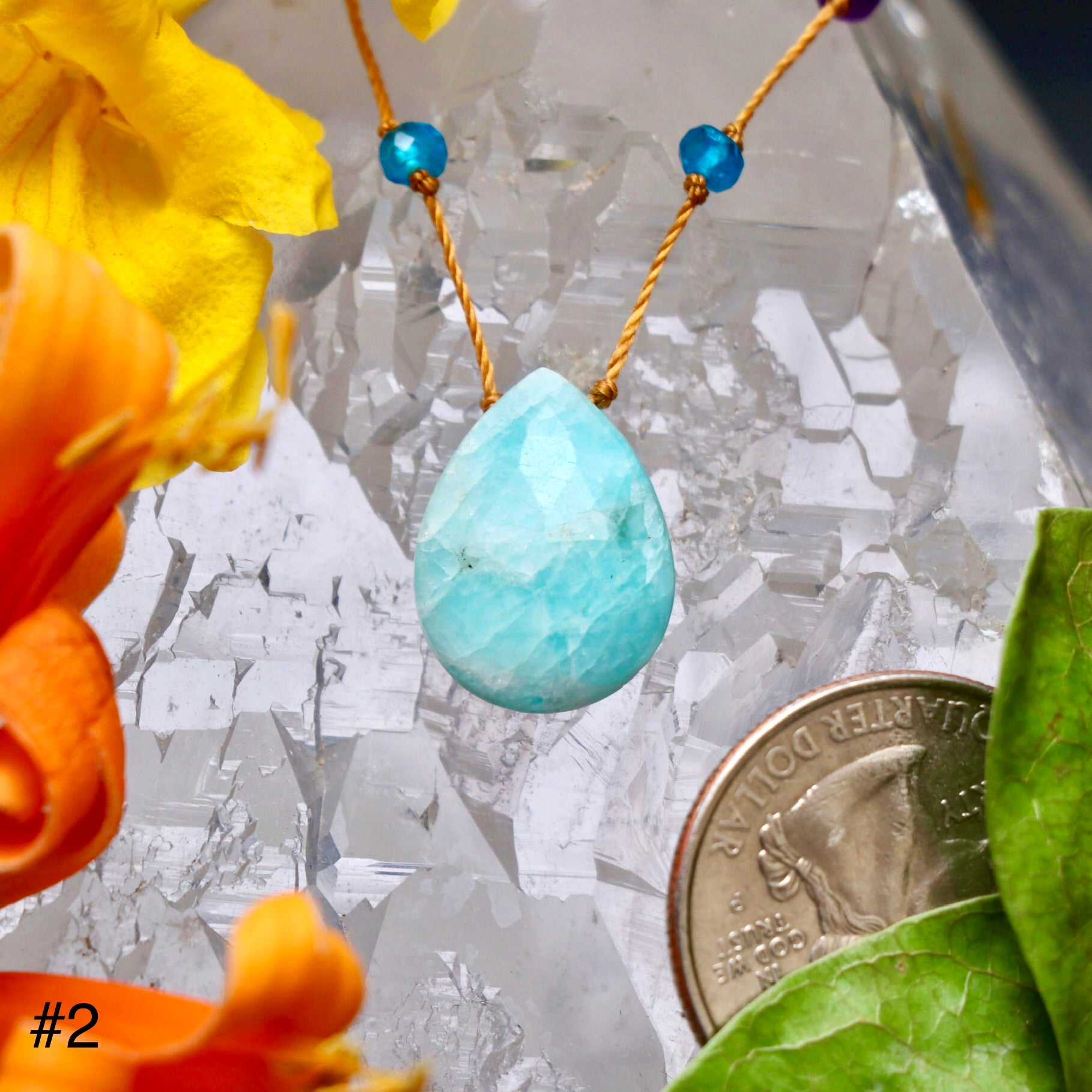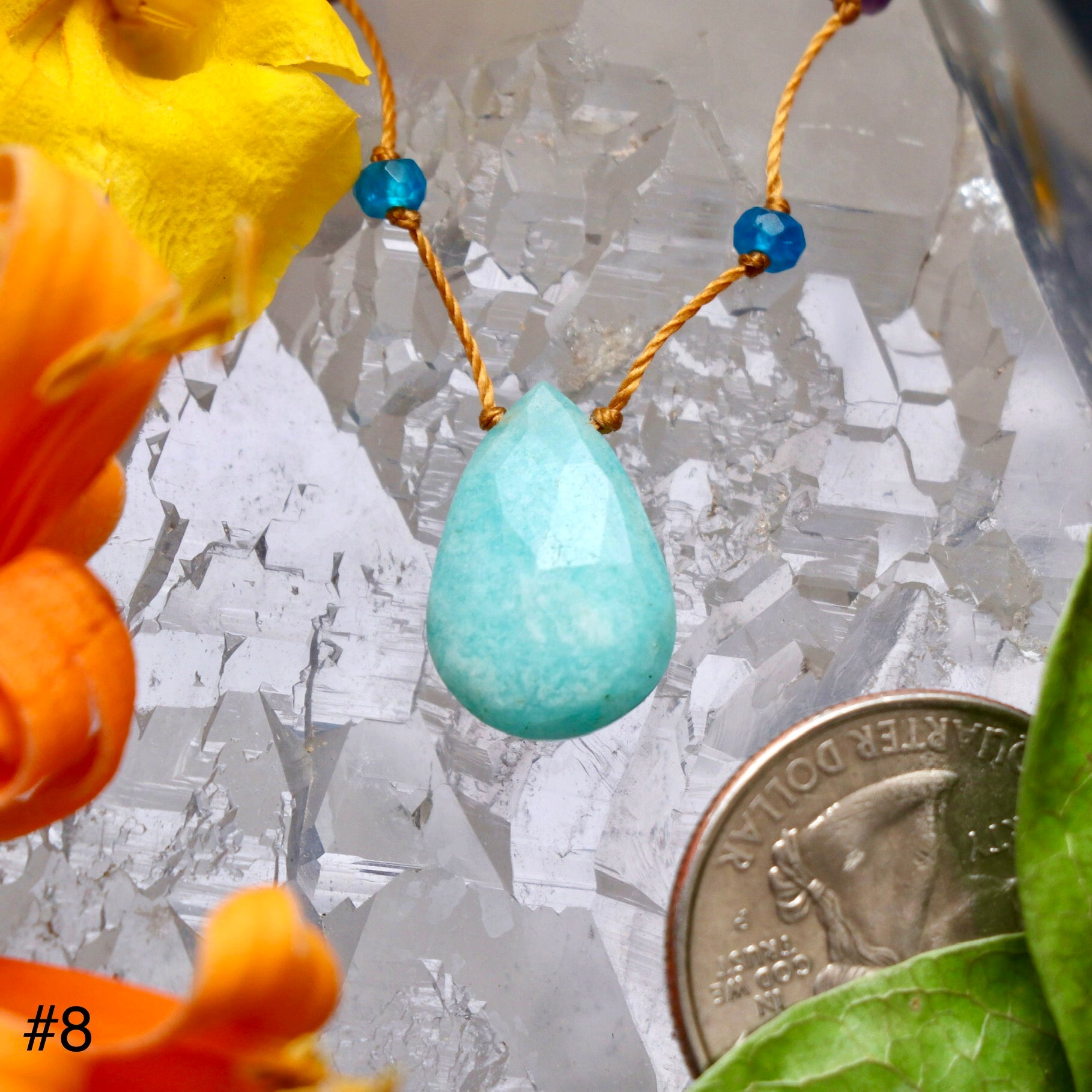 Mined from some of the most extraordinary places on the planet, including the banks of the Amazon River of Peru, this rare green blue feldspar emits dreamy vitality vibrations, soothes the nervous system, and is said to balance masculine and feminine energies while shielding from EMF’s. It harmonizes both earth and water elements as well as throat and heart chakras. It is a traditional talisman of good luck. This special aqua variety is less saturated in color than traditional Amazonite.