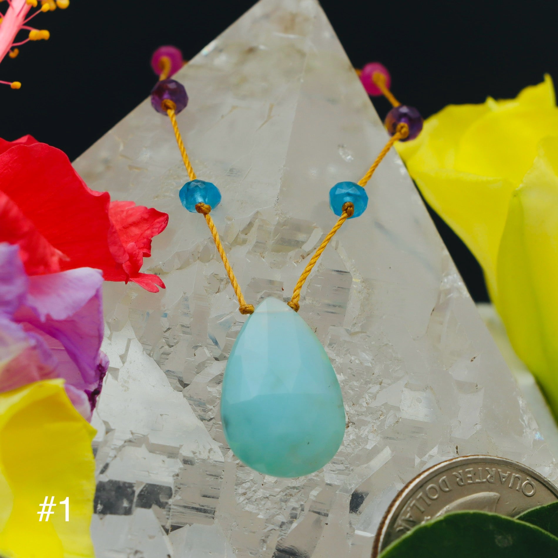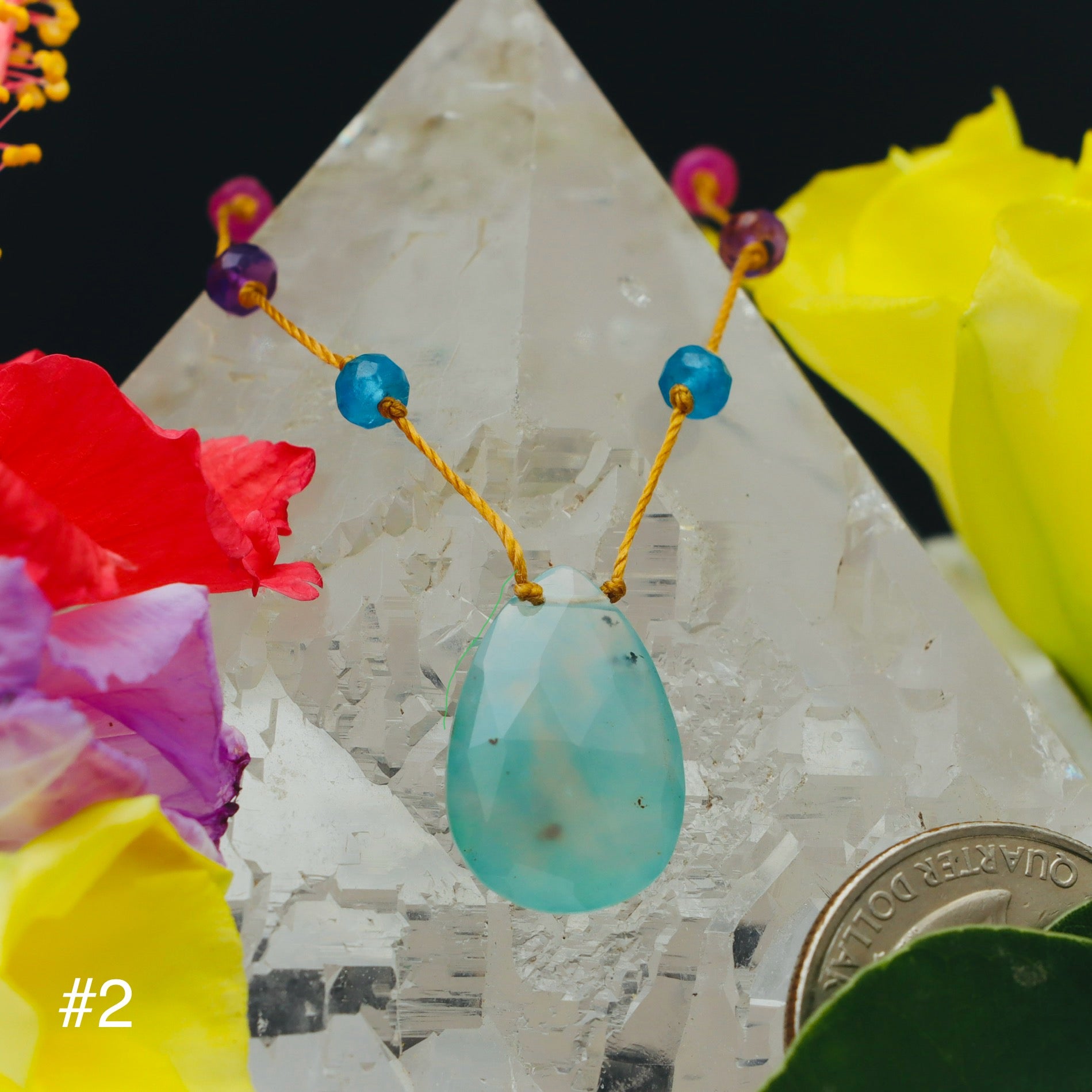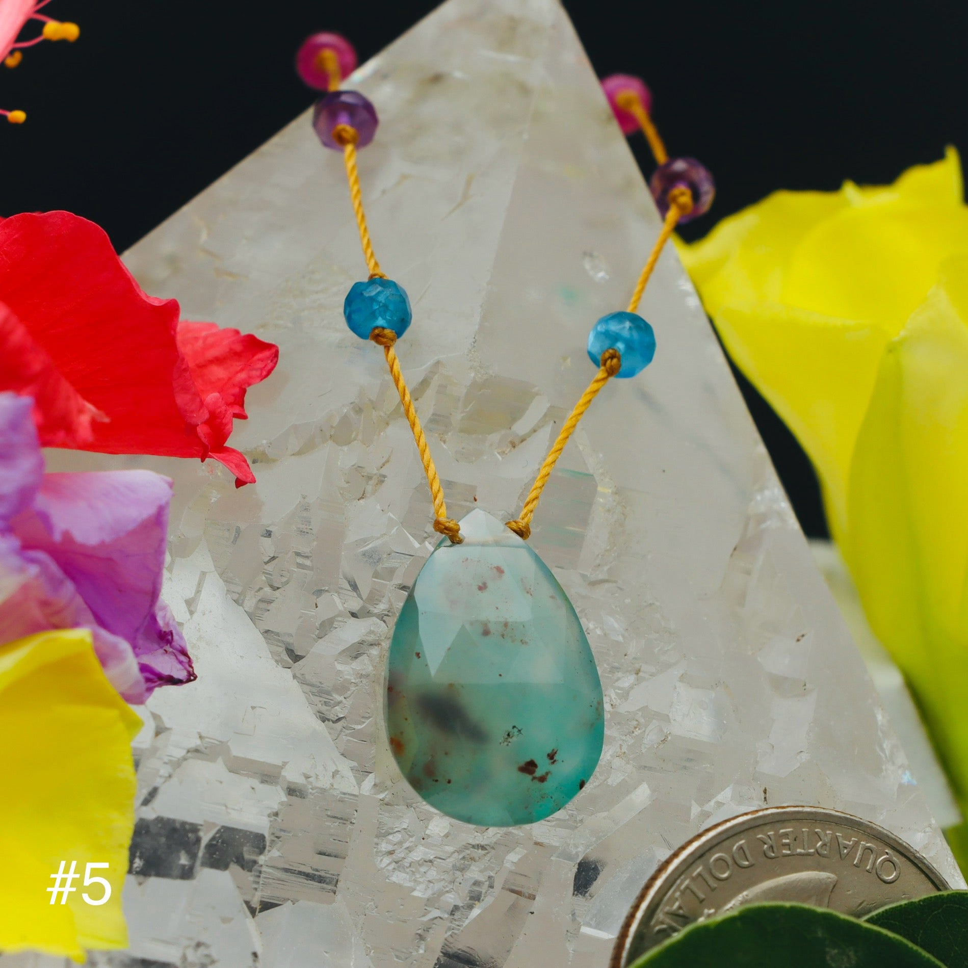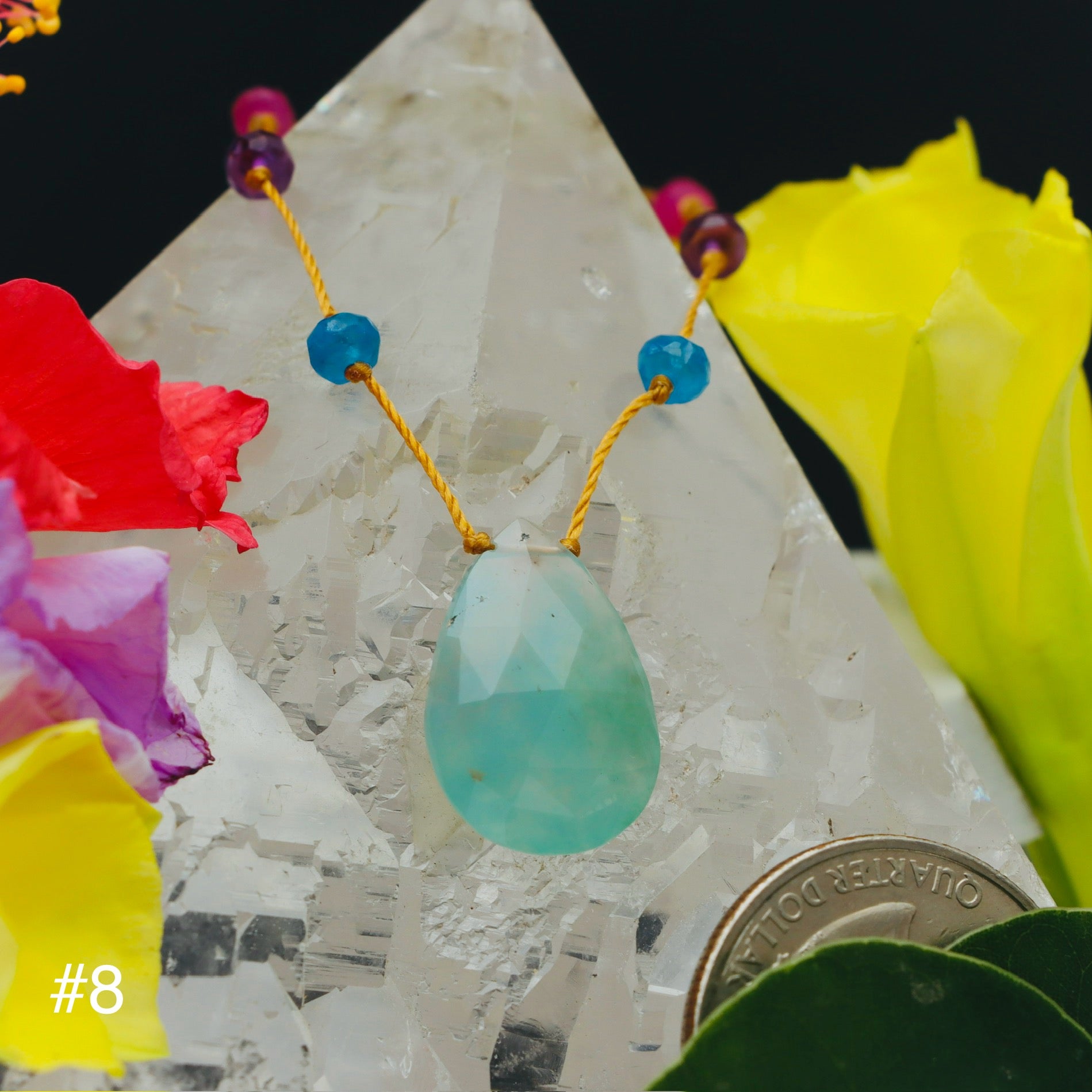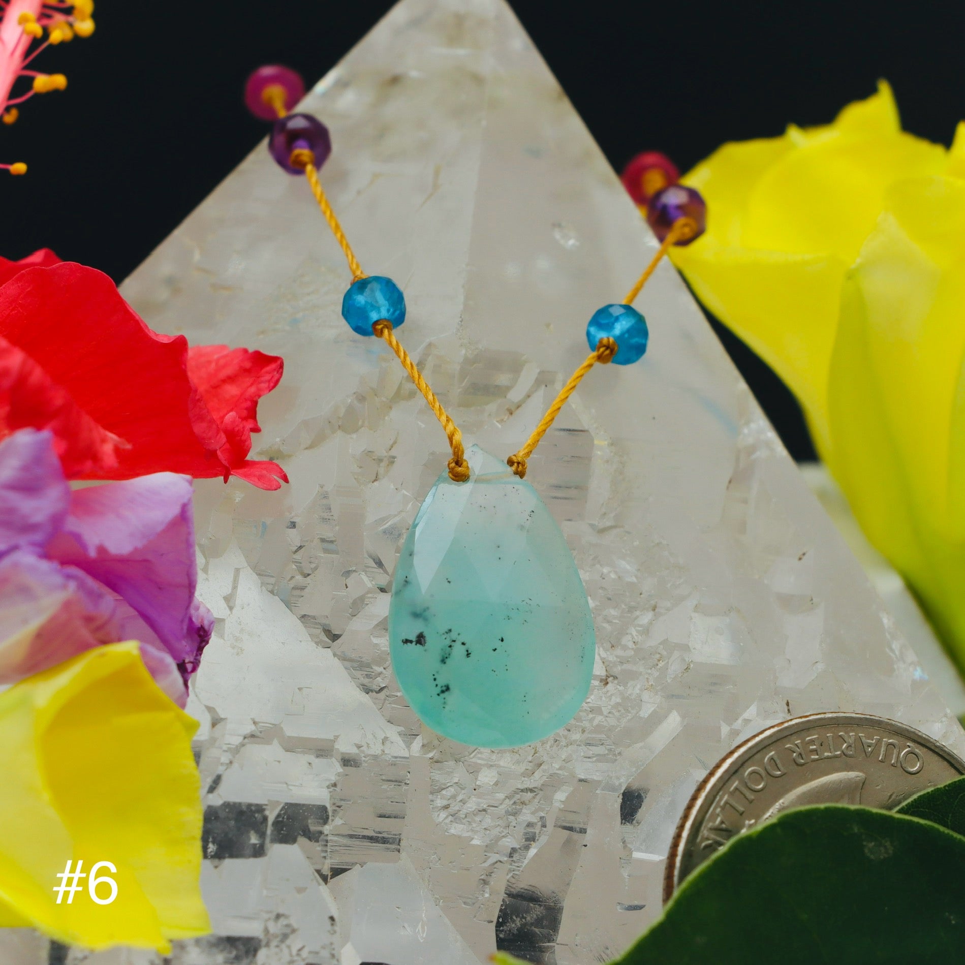 Rainbow drops accent our rainbow leis beautifully and can be worn to emphasize similar colors or to create striking contrasts. They also function as a powerful seed piece inside a stack of chosen malas, leis, and rainbow mana.