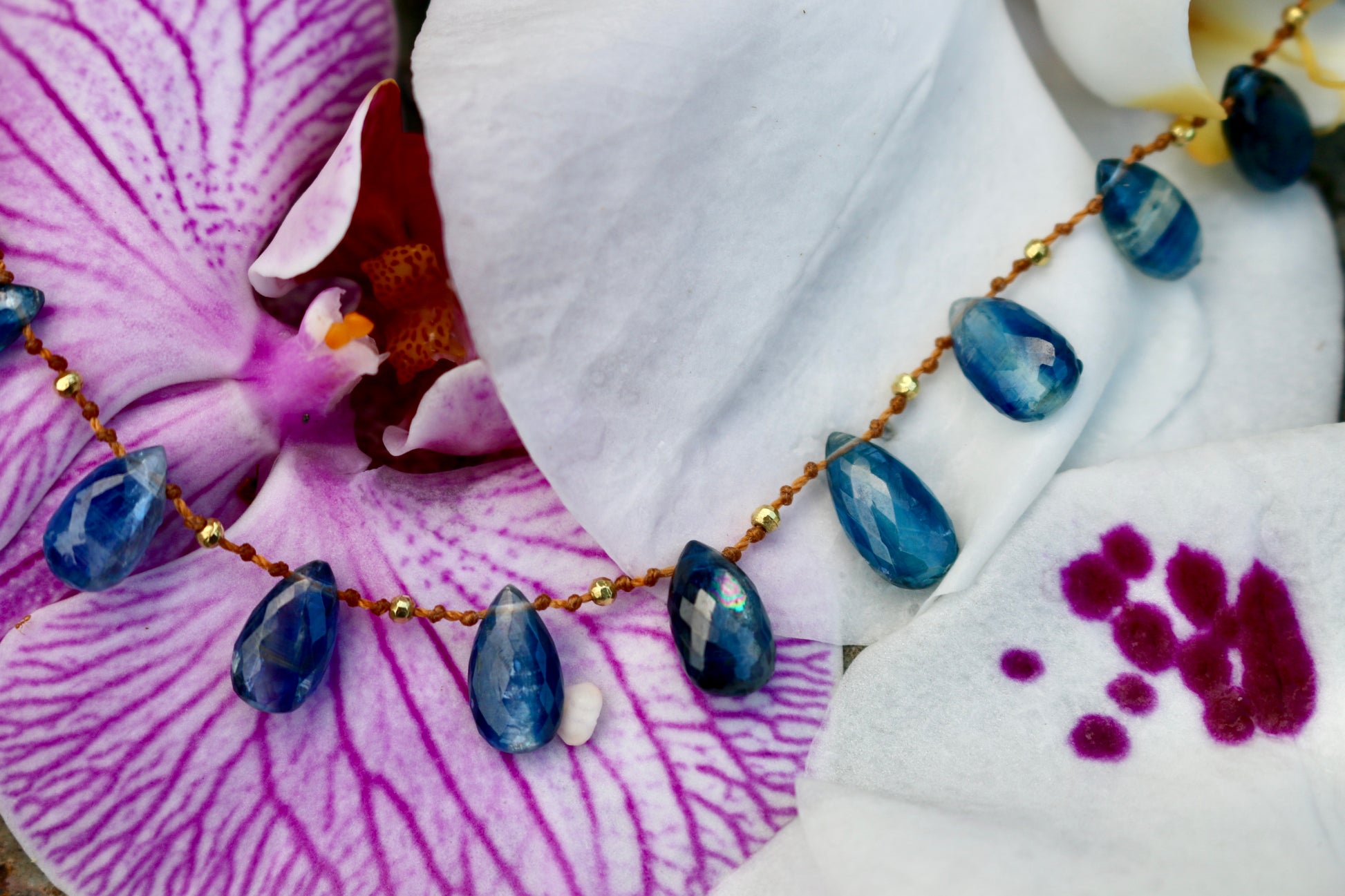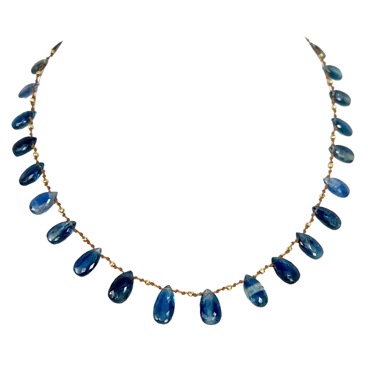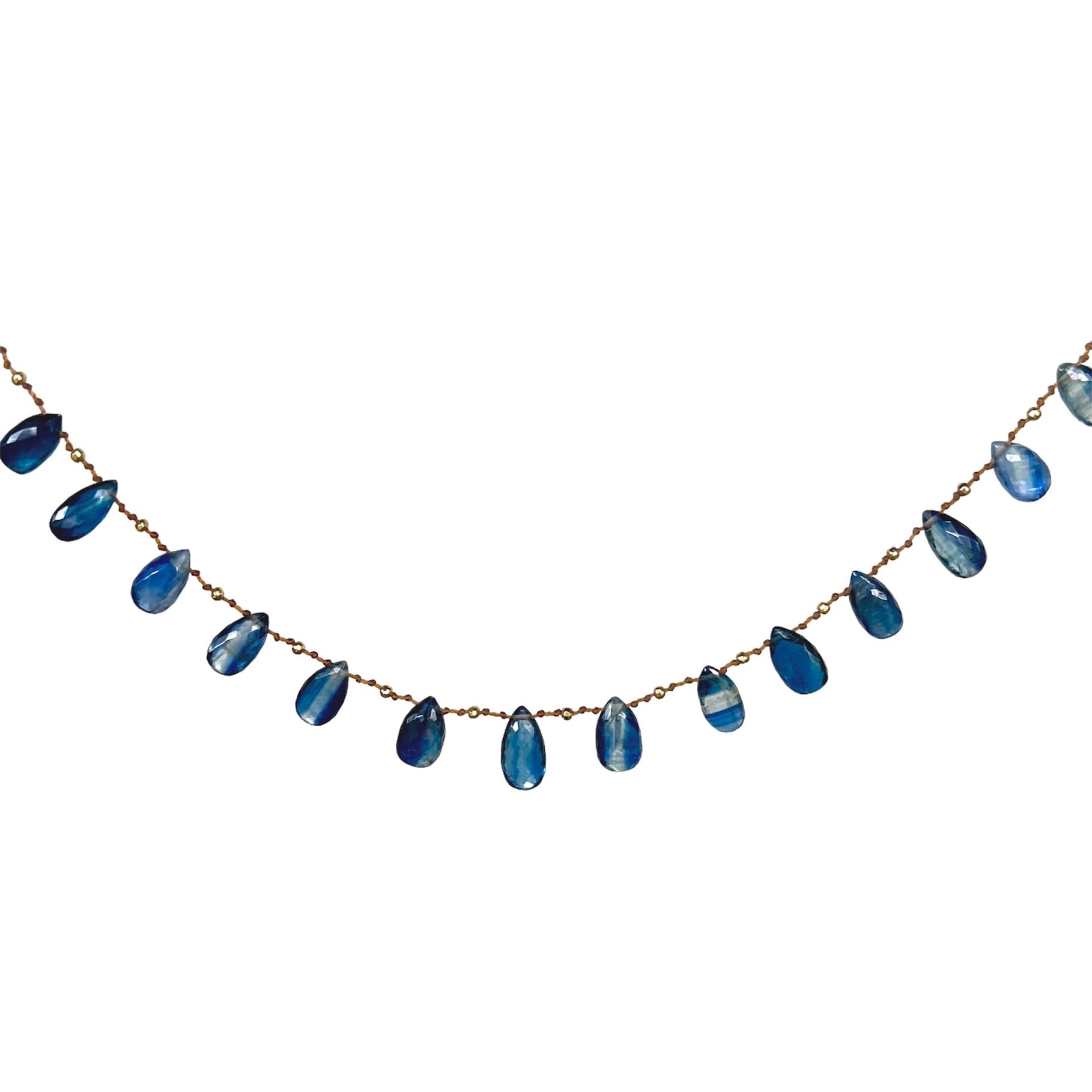 Deep Ocean Blue faceted Kyanites delicately spaced with handmade solid 18k gold beads