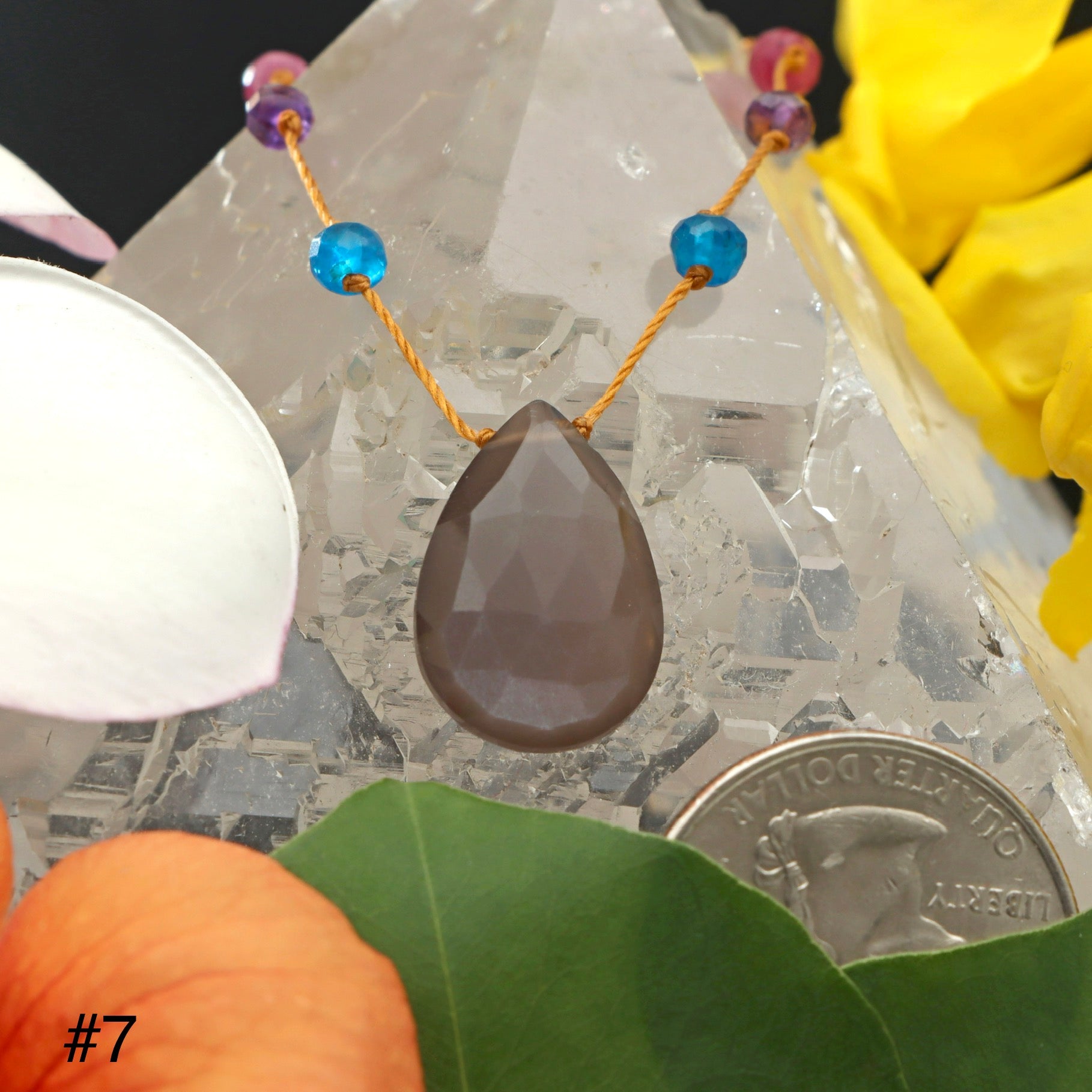Rainbow drops accent our rainbow leis beautifully and can be worn to emphasize similar colors or to create striking contrasts. They also function as a powerful seed piece inside a stack of chosen malas, leis, and rainbow mana.