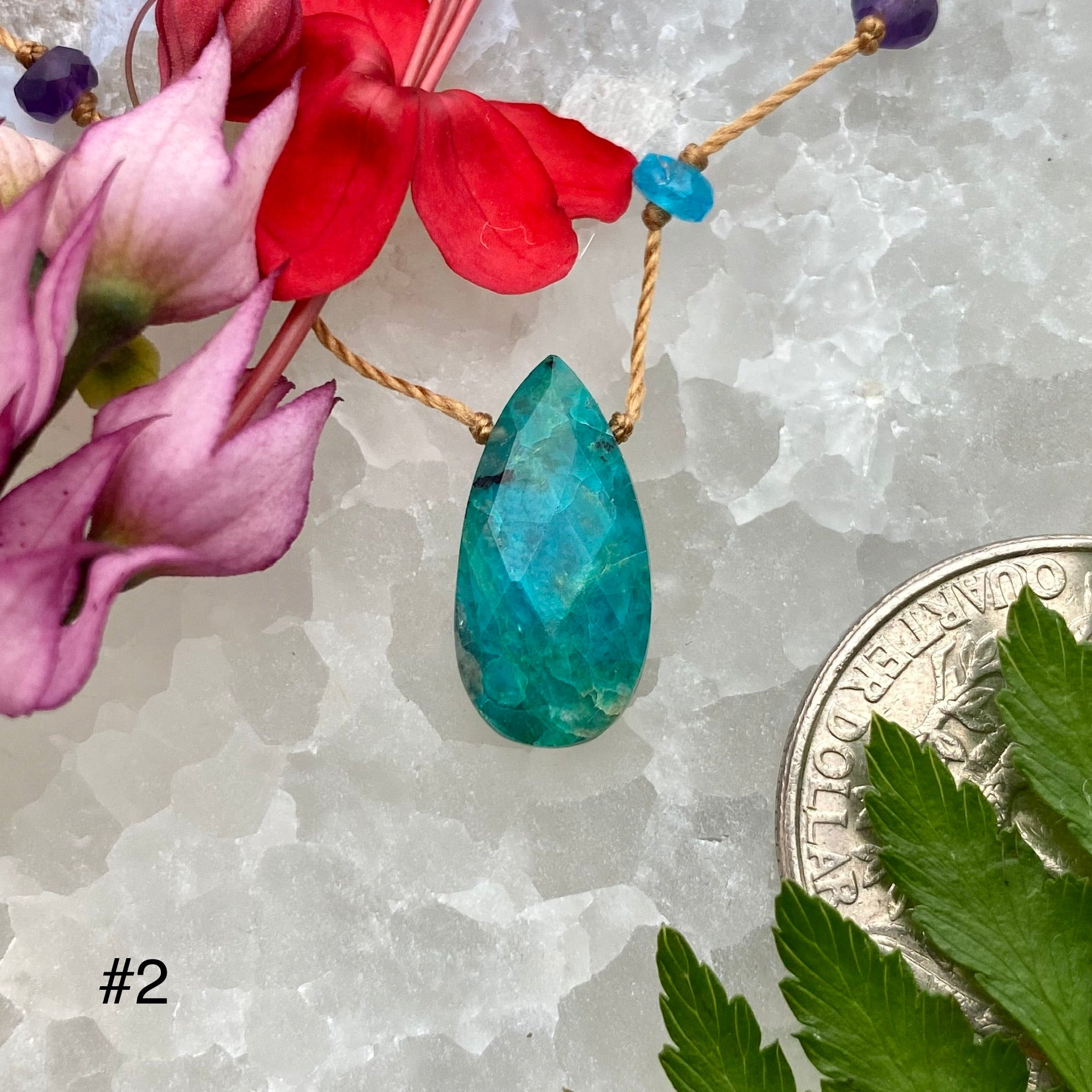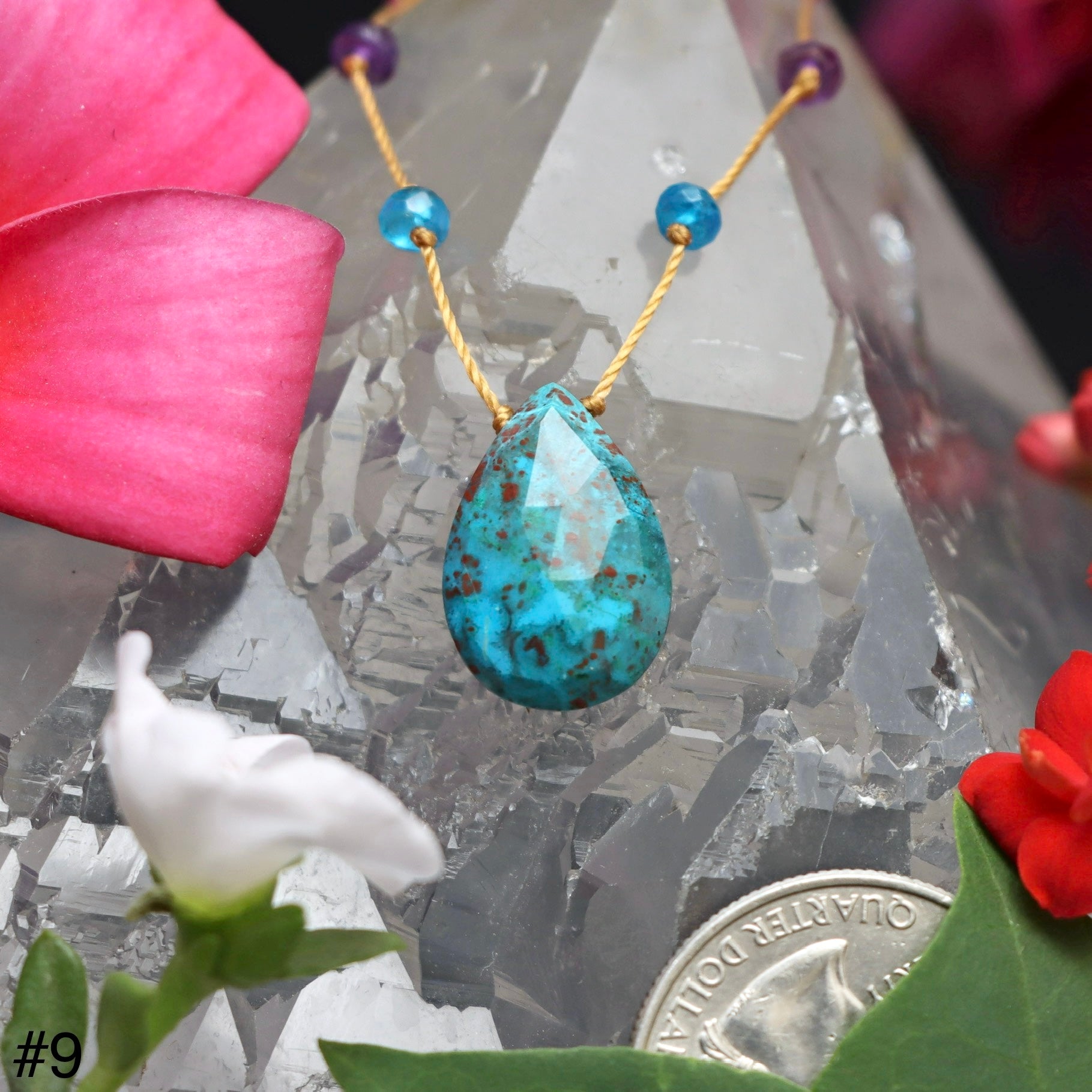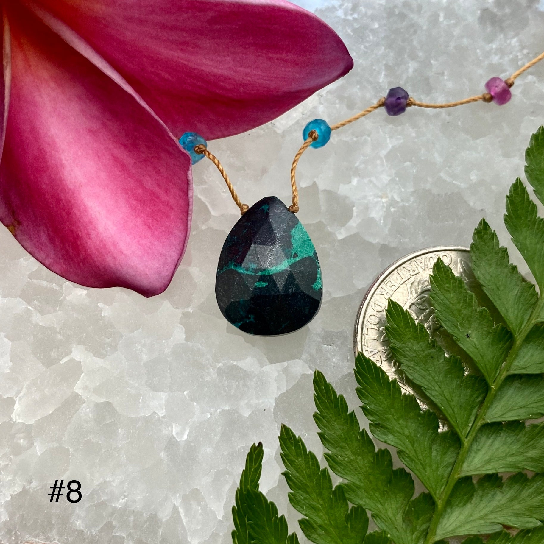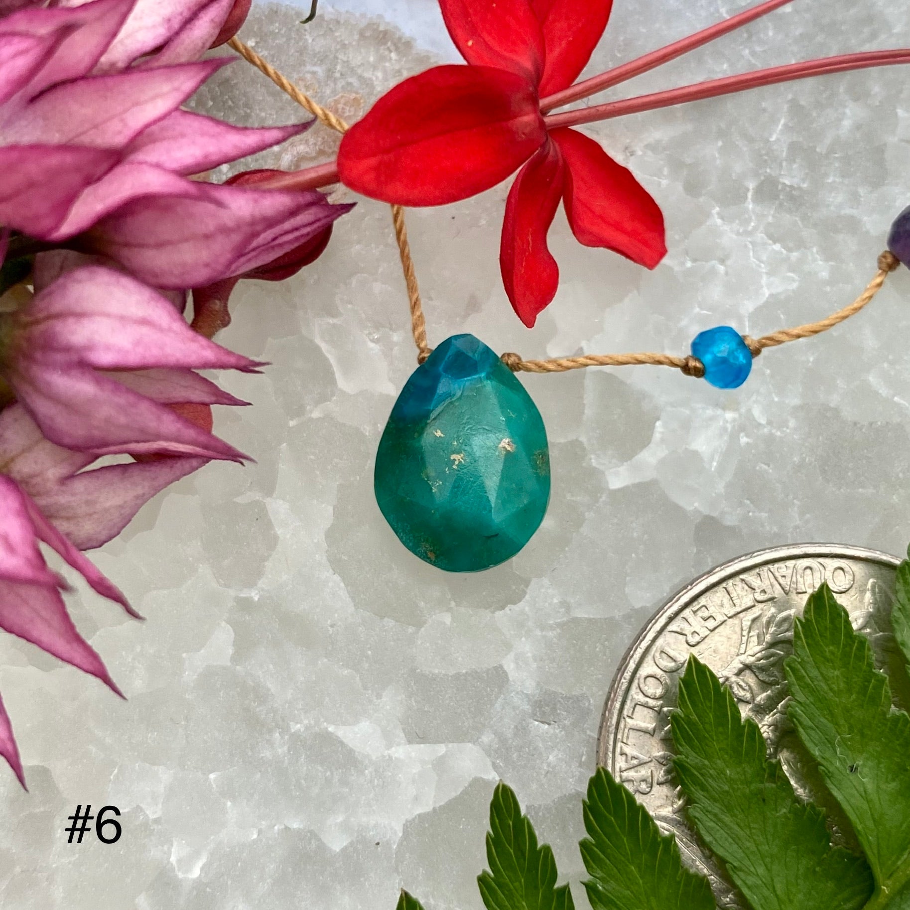 Both activating and cleansing, chrysocolla supports the throat-heart axis and is associated with spiritual transformation, vitality, serenity, and intuition. Blue green like mother earth, chrysocolla fortifies the body and strengthens the spirit. Believed to empower women and inspire creativity, chrysocolla is a popular stone among artists and those seeking inspiration.