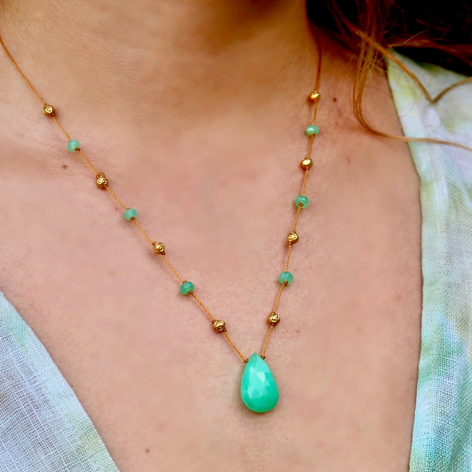 Meaning shining or brilliant one, our Alohi drops showcase singular gemstones. Paired with 18k gold beads these elegant strands are striking in their simplicity. They are an exquisite way to connect with a particular gemstone and also compliment longer strands in our other collections. However you choose to wear them, their message is simple, shine on beloved.