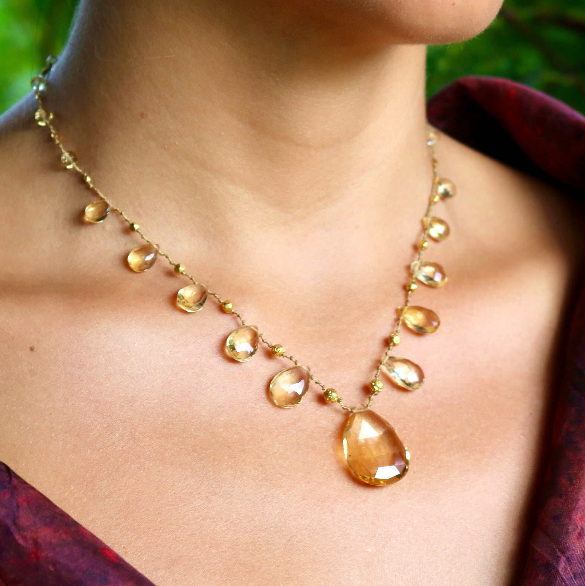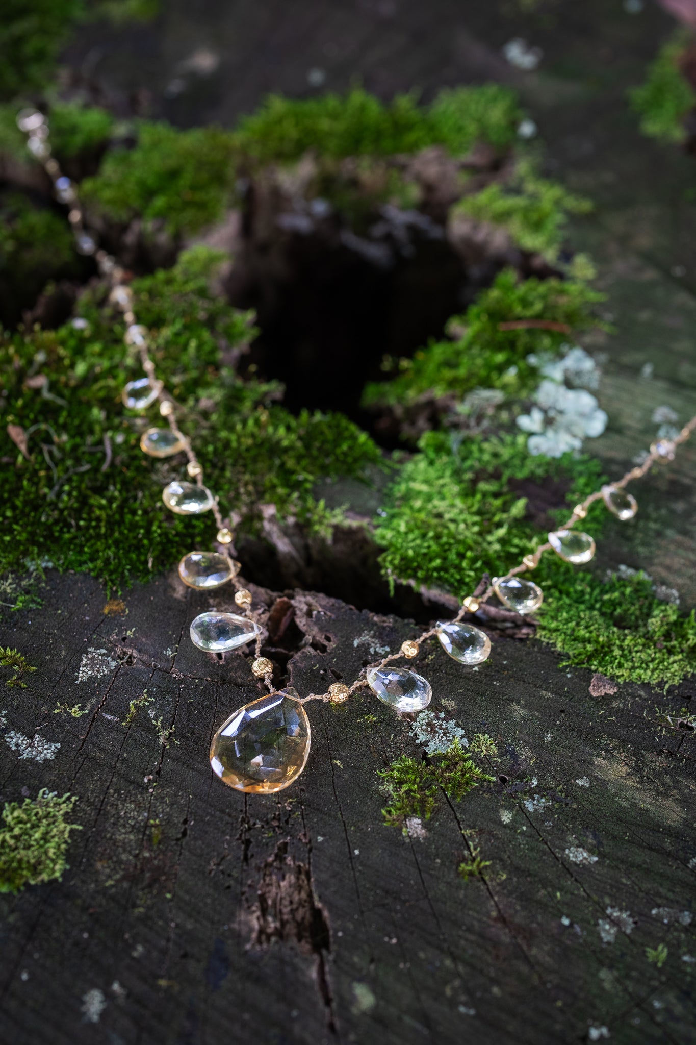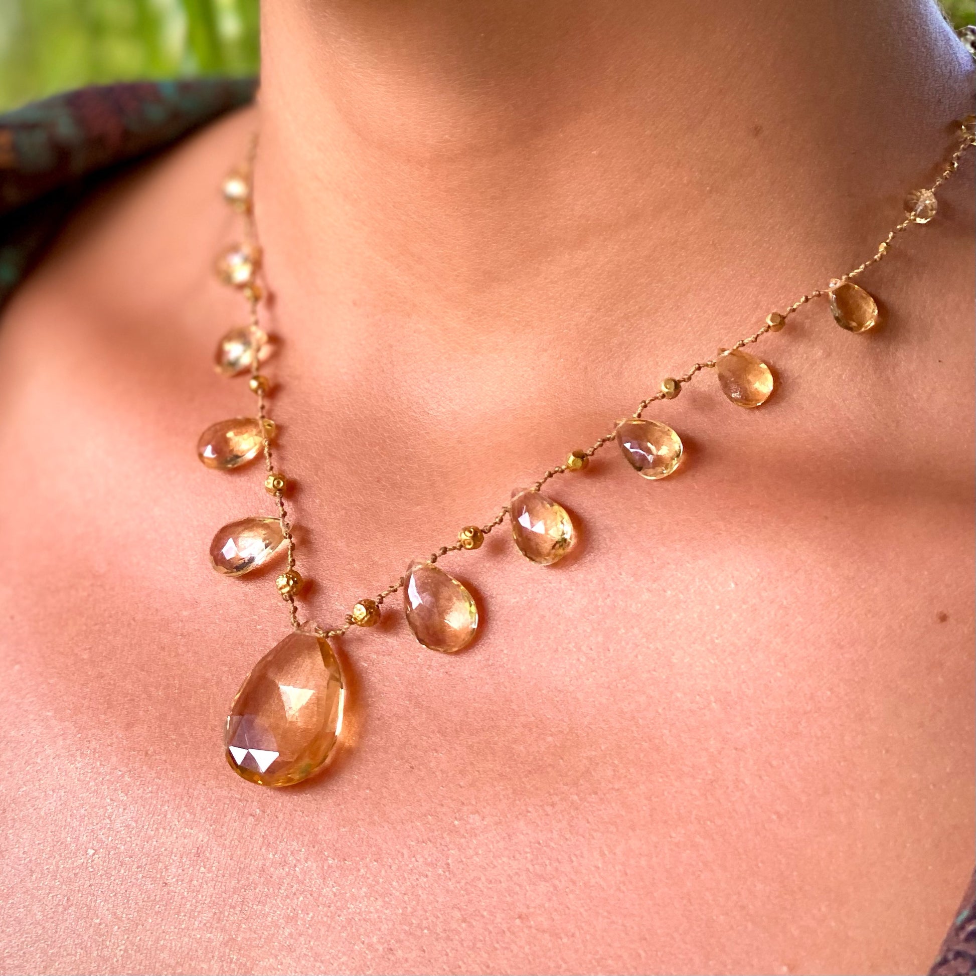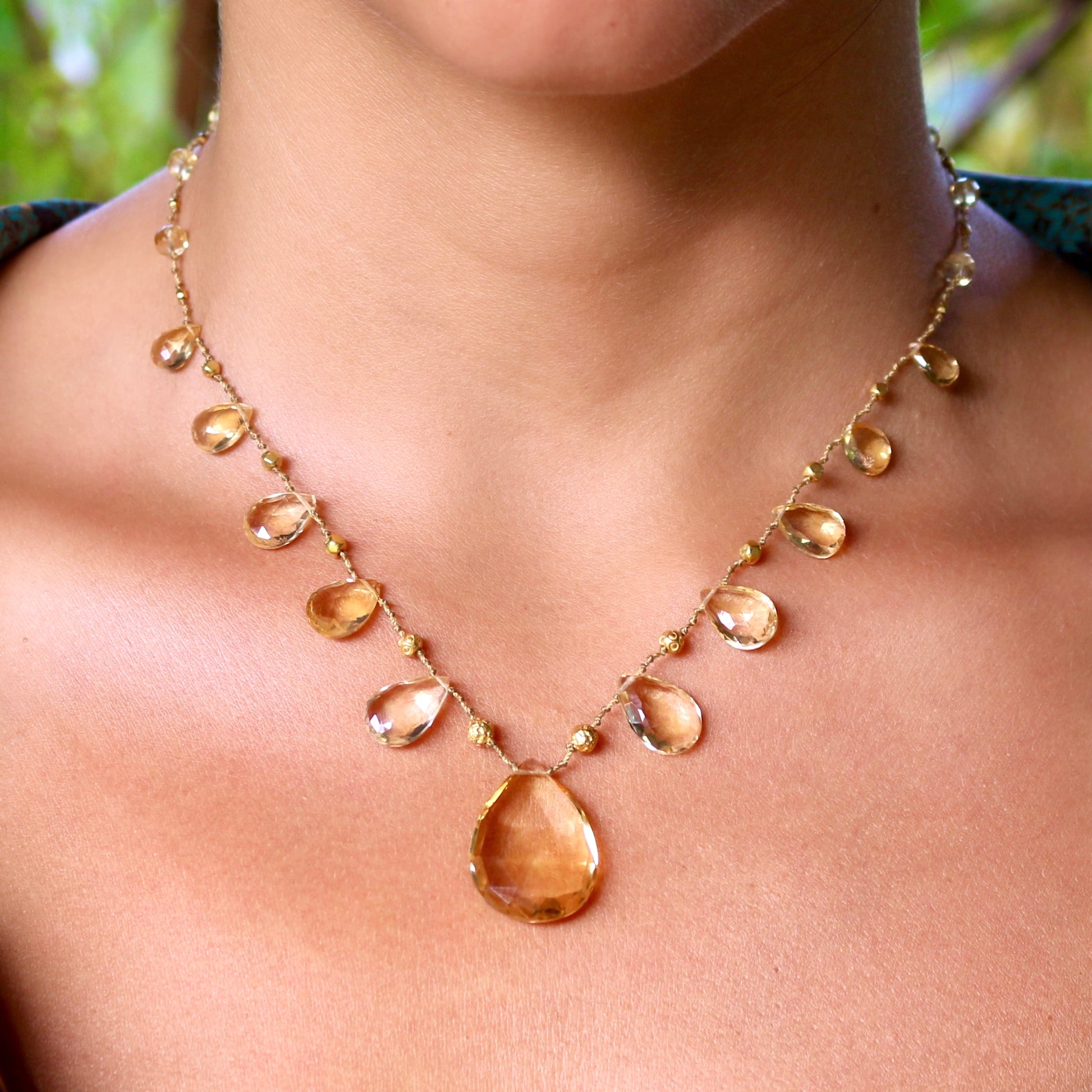 Unfailingly optimistic, these solar infused Citrine drops insist on our inherent abundance, capacity for manifestation, and return to wholeness. Radiating warmth and confidence, these bright graduated gems are set between handmade solid 18k gold beads.