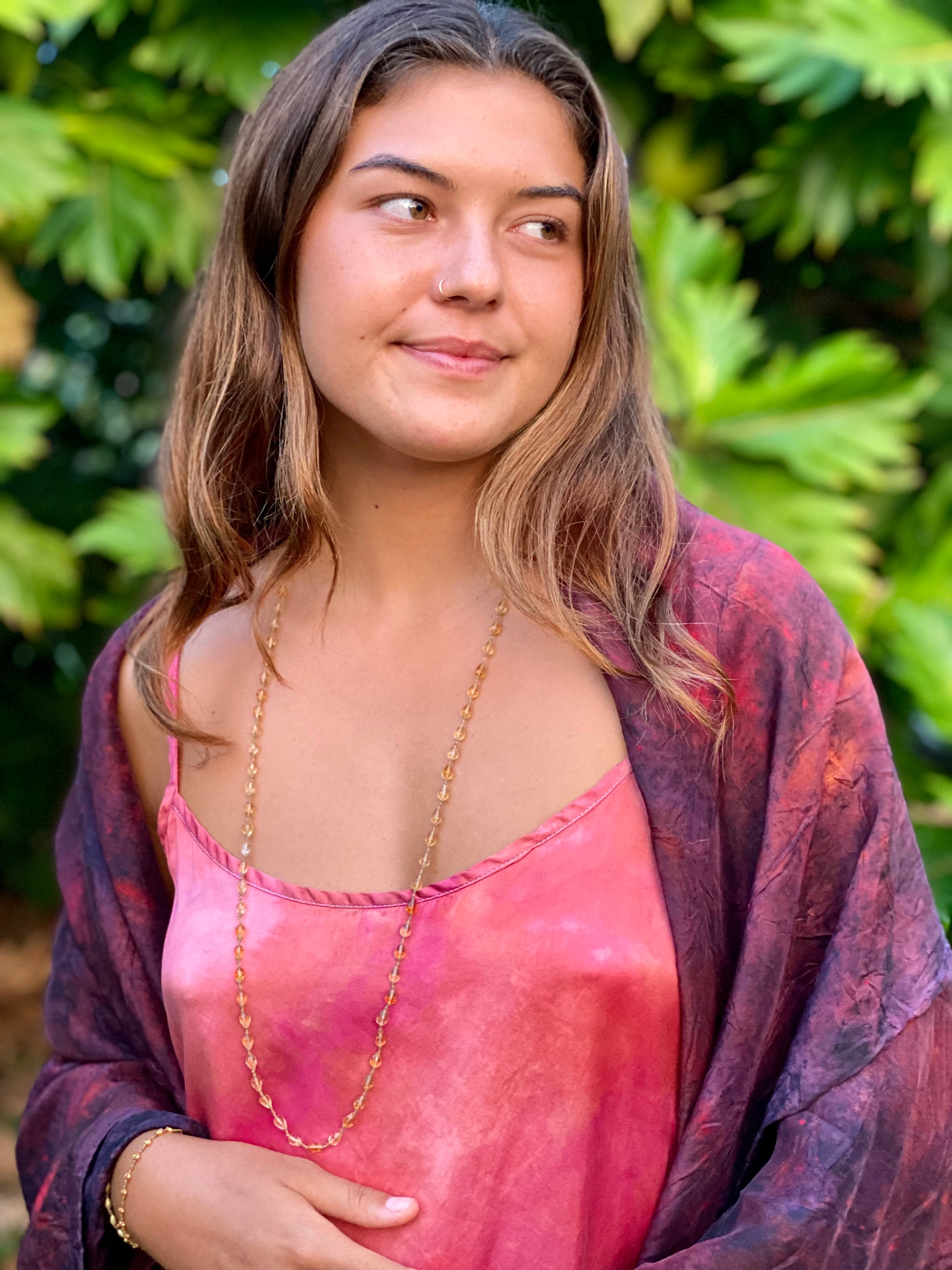 Leis are a quintessential Hawaiian tradition formed in the stringing of aromatic flower blossoms and local foliage bestowing the spirit of aloha upon the recipient. While these gemstone garlands are visually similar to our mala collection, the number of beads vary as benefits the particular gemstone design and are meant to be worn as a stringed embrace of love, friendship, welcome, appreciation and honor.