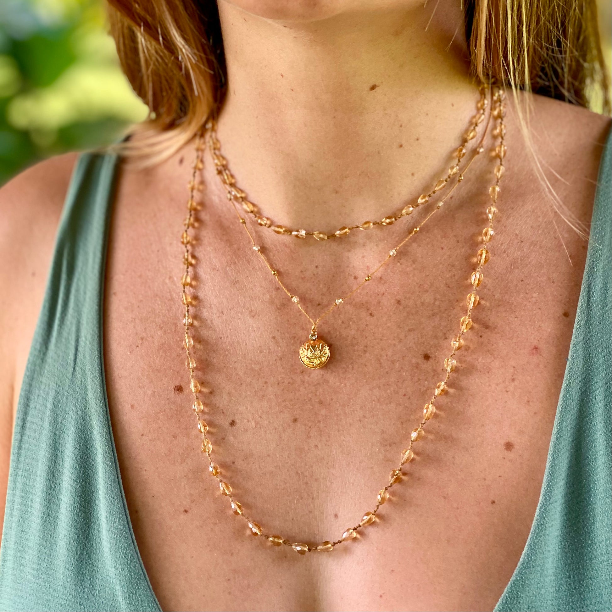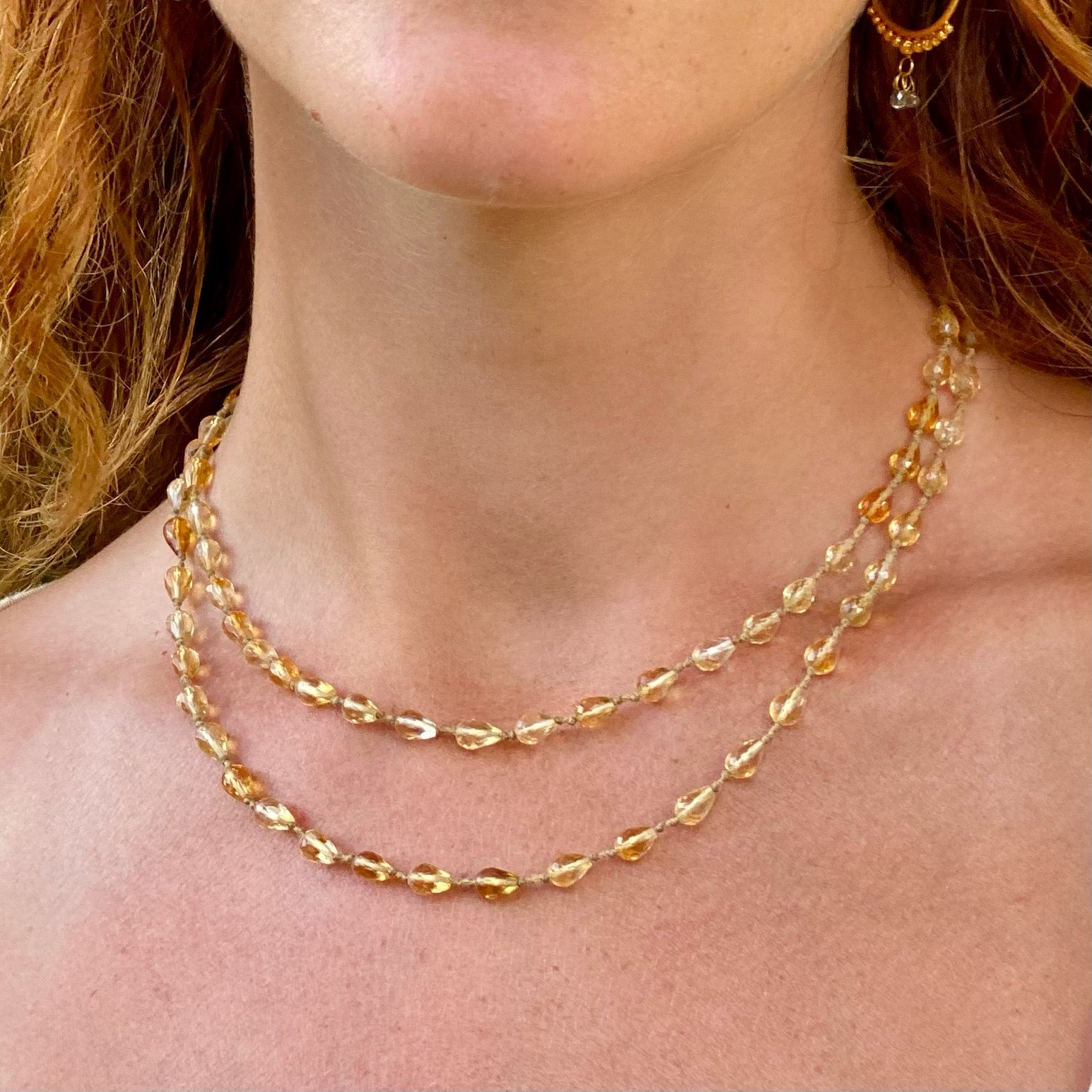 Warm and luminous Citrine drops. Can be worn singled, doubled or sometimes wrapped around the wrist.