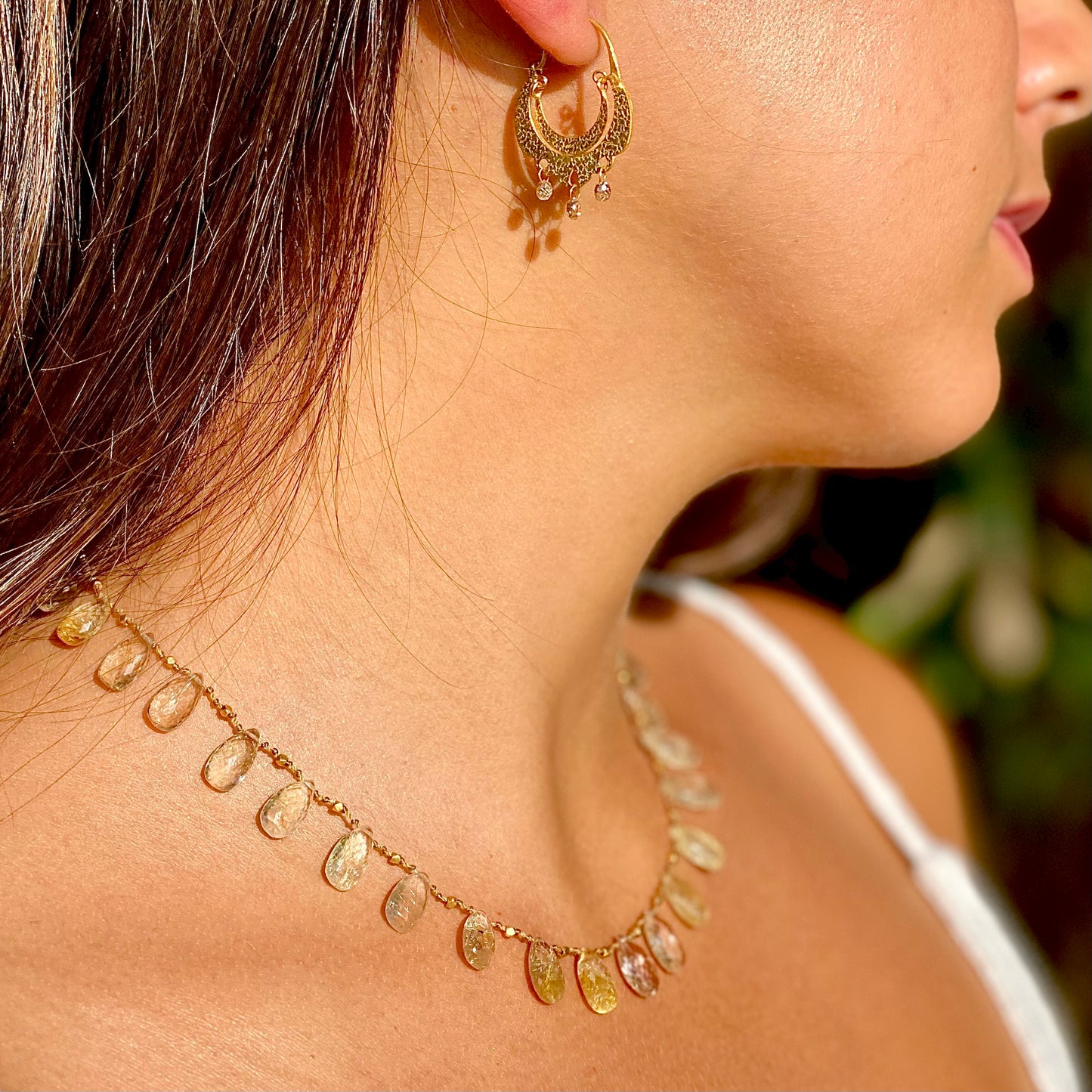 Designed and crafted in alliance with a 9th generation gold smithing family from India, these handmade earrings are as authentic as they are delightful. The precious metal gold is considered a master healer with rays in spiritual development, purification, and rejuvenation and these earrings carry the vibration rightly. Inspired by traditional Indian design with Amalia’s flair for detail their style is enhanced with solid 18 karat gold, precious gemstones, and hand formed beads. Together they spark a quiet revival of play, artistry, and finely honed craft, honoring the maker and the adorned.