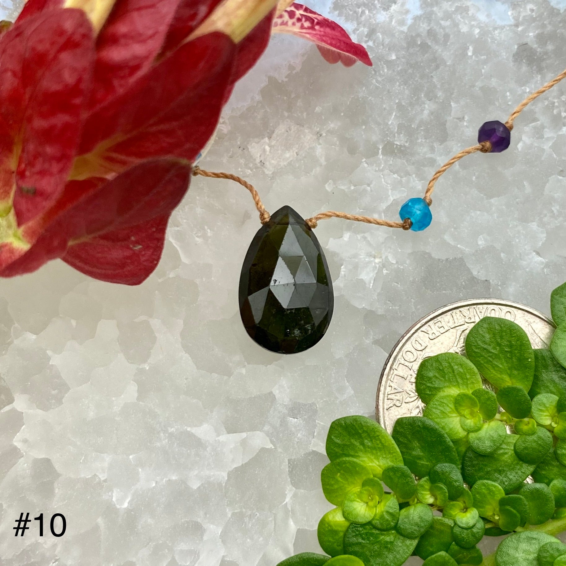 Rainbow drops accent our rainbow leis beautifully and can be worn to emphasize similar colors or to create striking contrasts. They also function as a powerful seed piece inside a stack of chosen malas, leis, and rainbow mana.