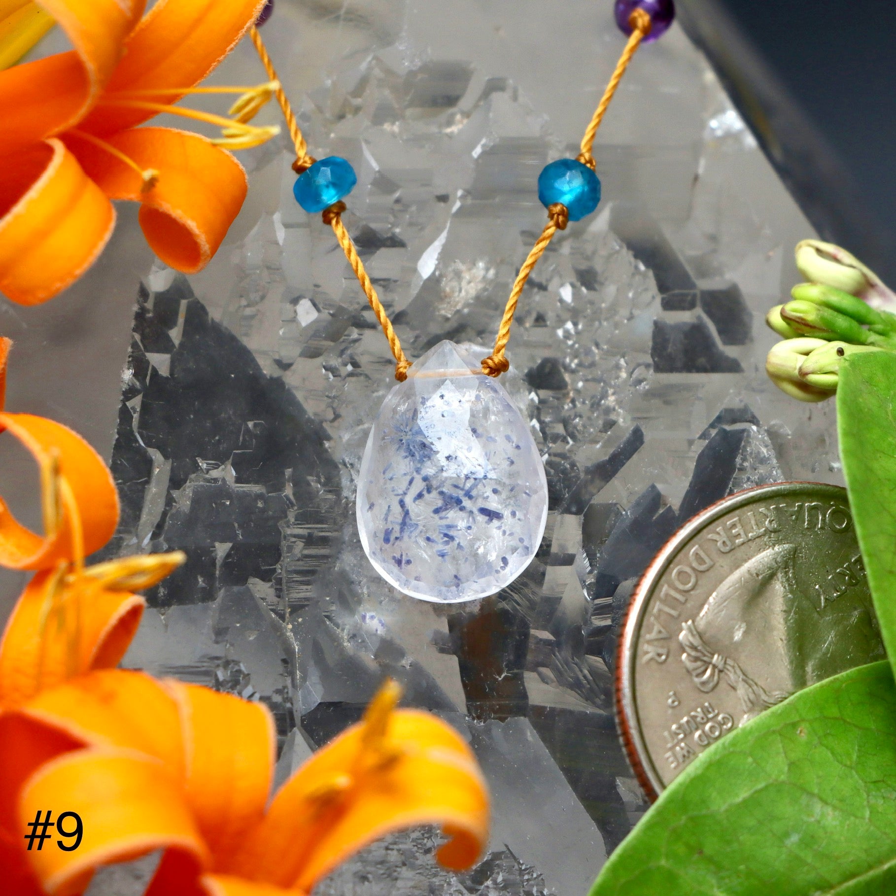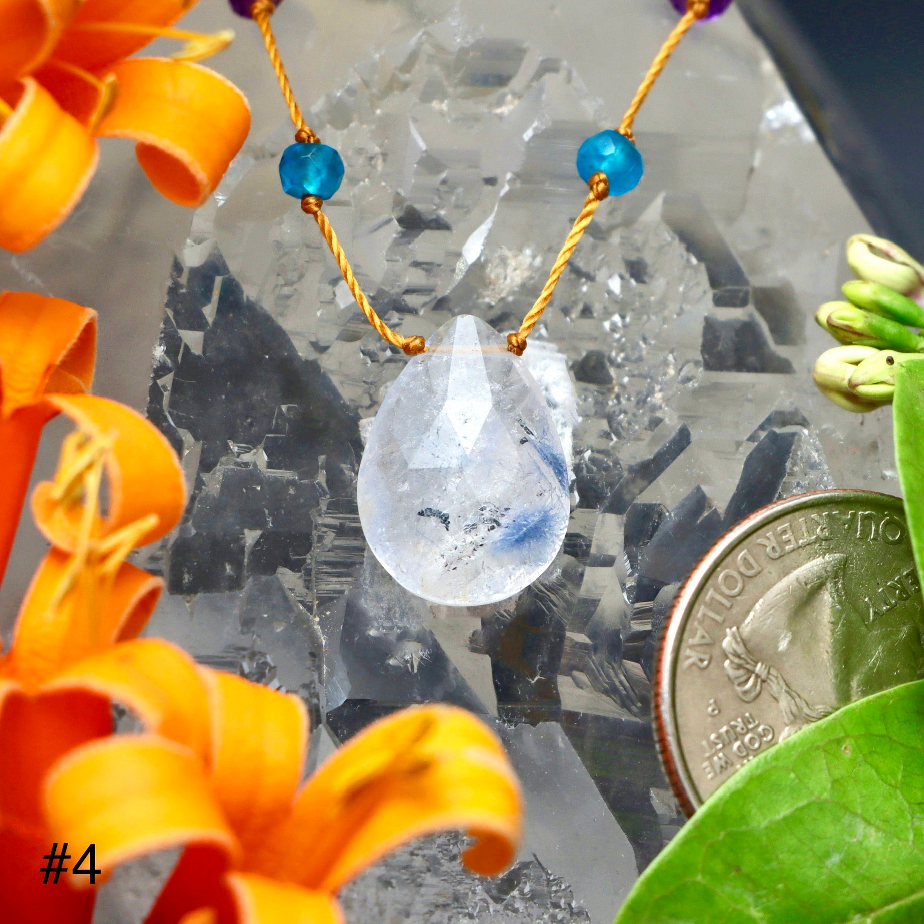 Perhaps the quintessential beginning of Rainbow Gems Kauai, our rainbow drops have been adorning people for over a decade. These delicate rainbow drops showcase the full light spectrum with carefully spaced individual gemstones, culminating in a featured crystalline drop. Just as rainbows herald new beginnings and luck these exquisite strands are the perfect place to begin your love affair with Amalia’s artwork. Many find that once they put on their rainbow drop they never take it off again, such is the nature of love. These strands are perfect for the minimalist at heart and make a striking impression stacked in a series with our other collections.