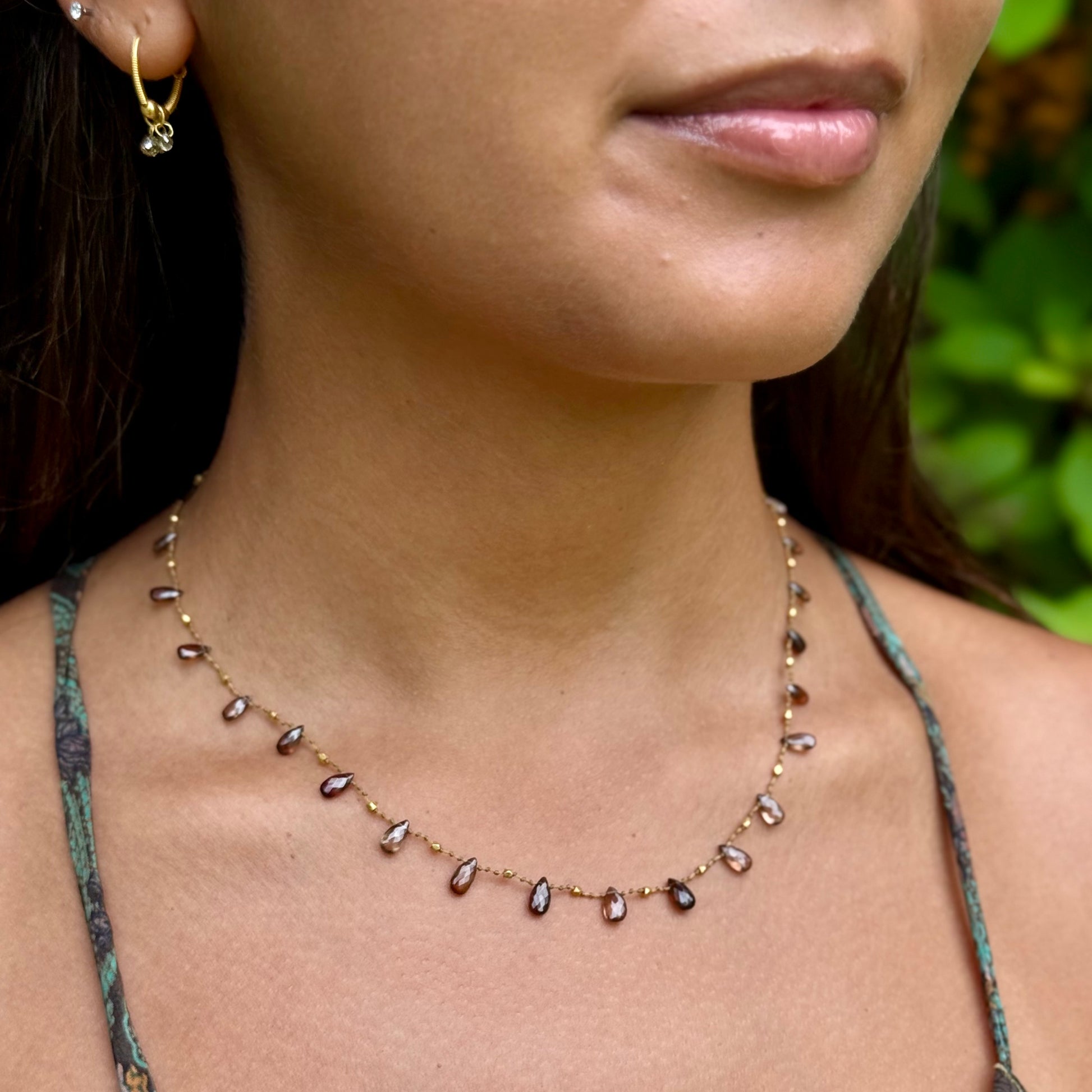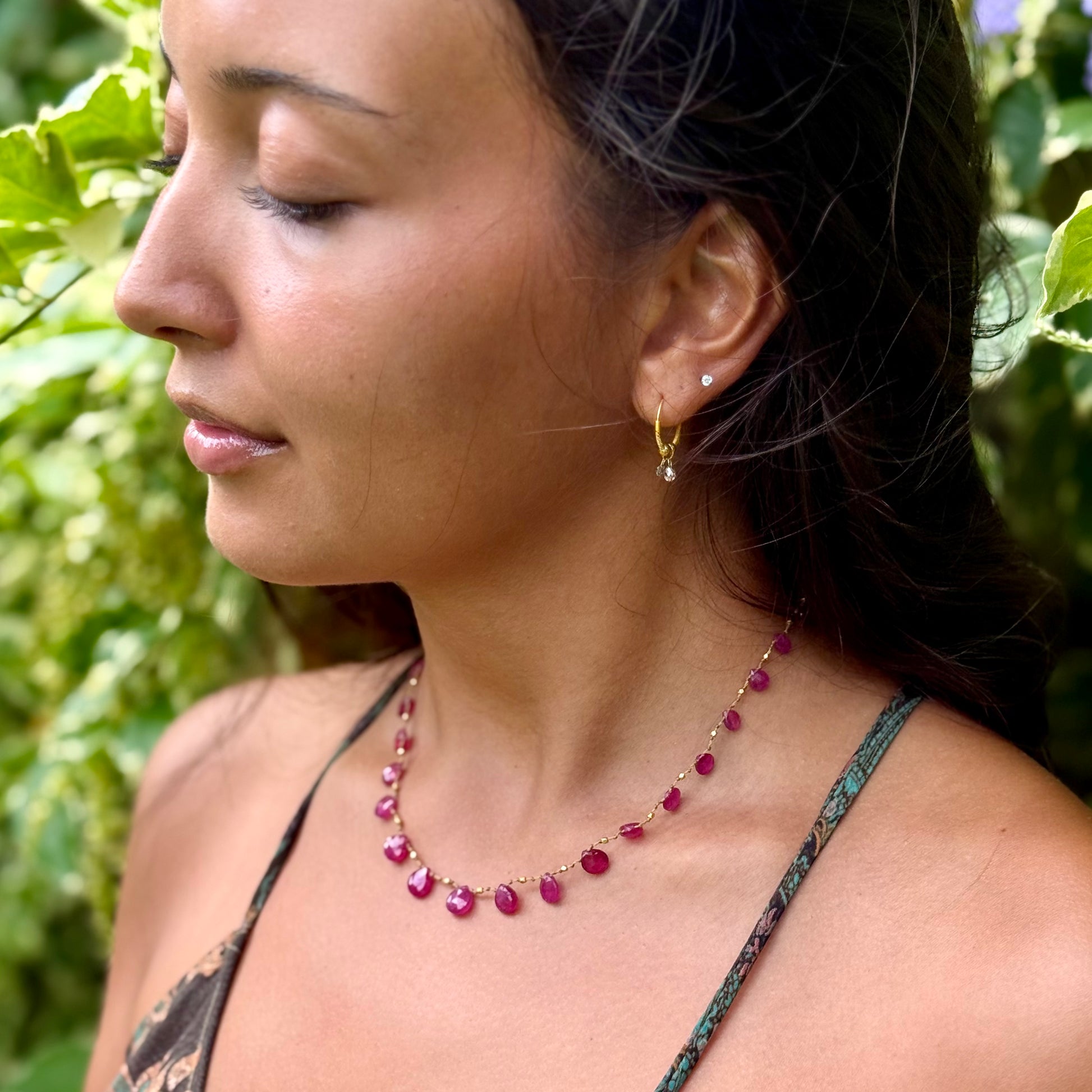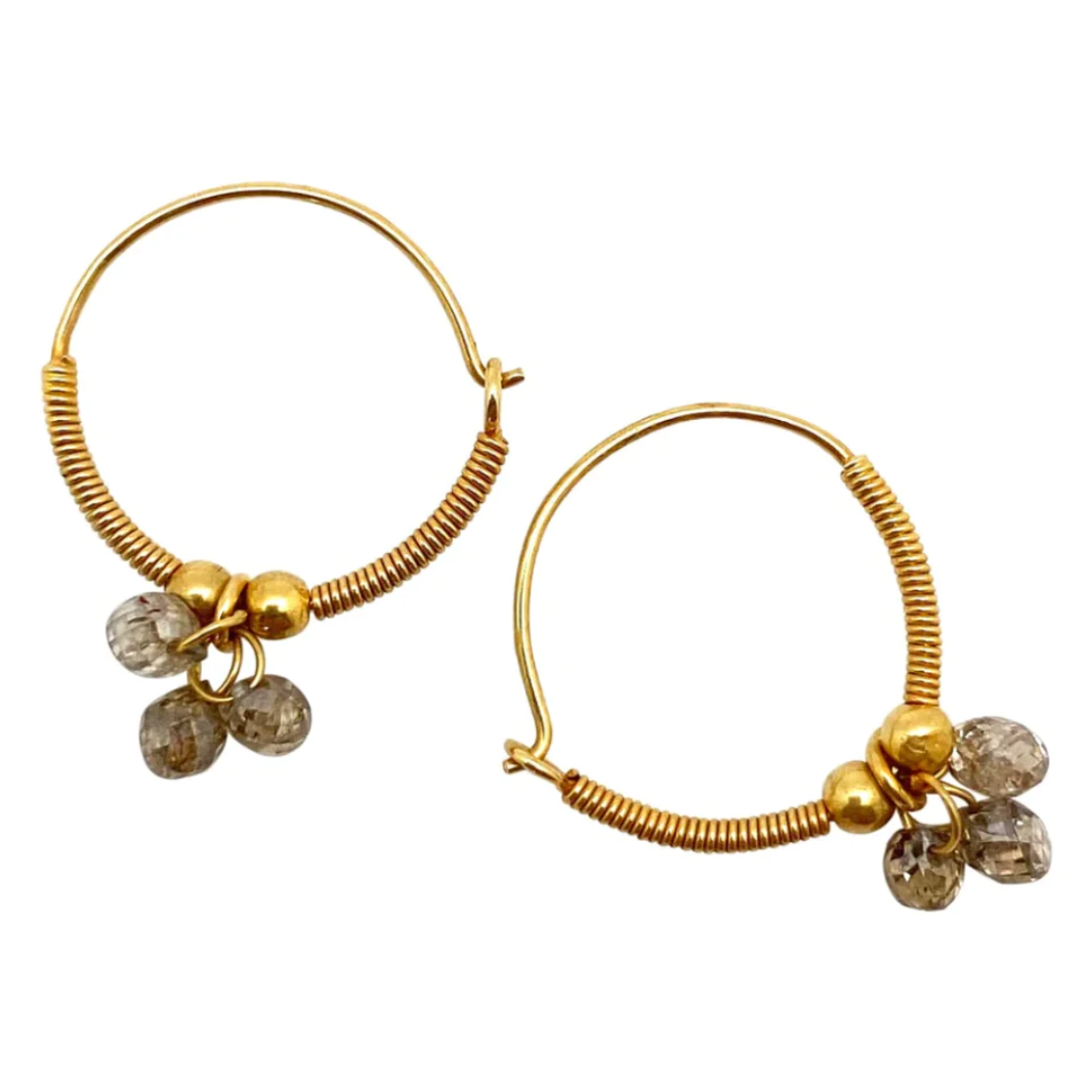 Golden Droplet Hoops with Natural Diamond Cluster, Baby (15mm)