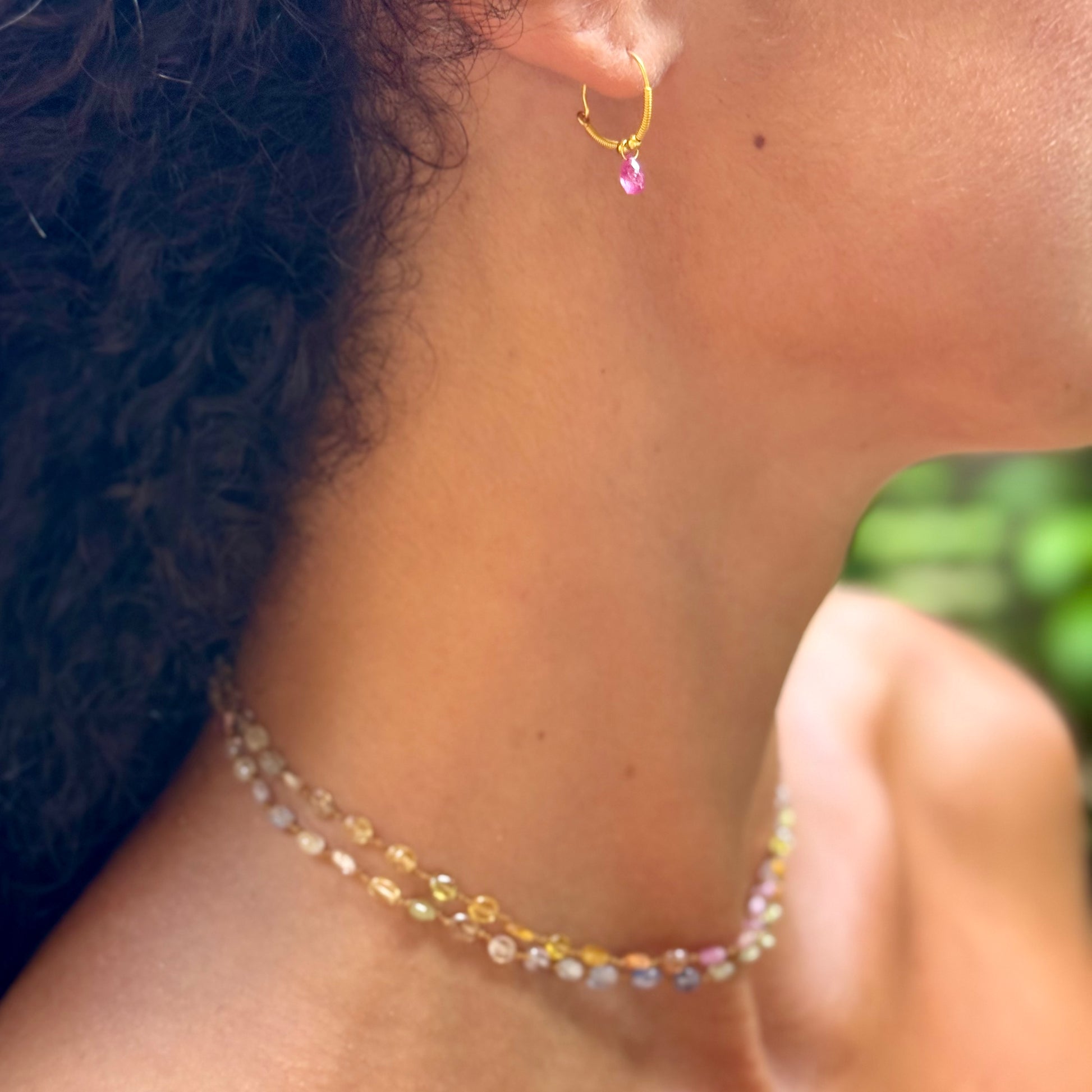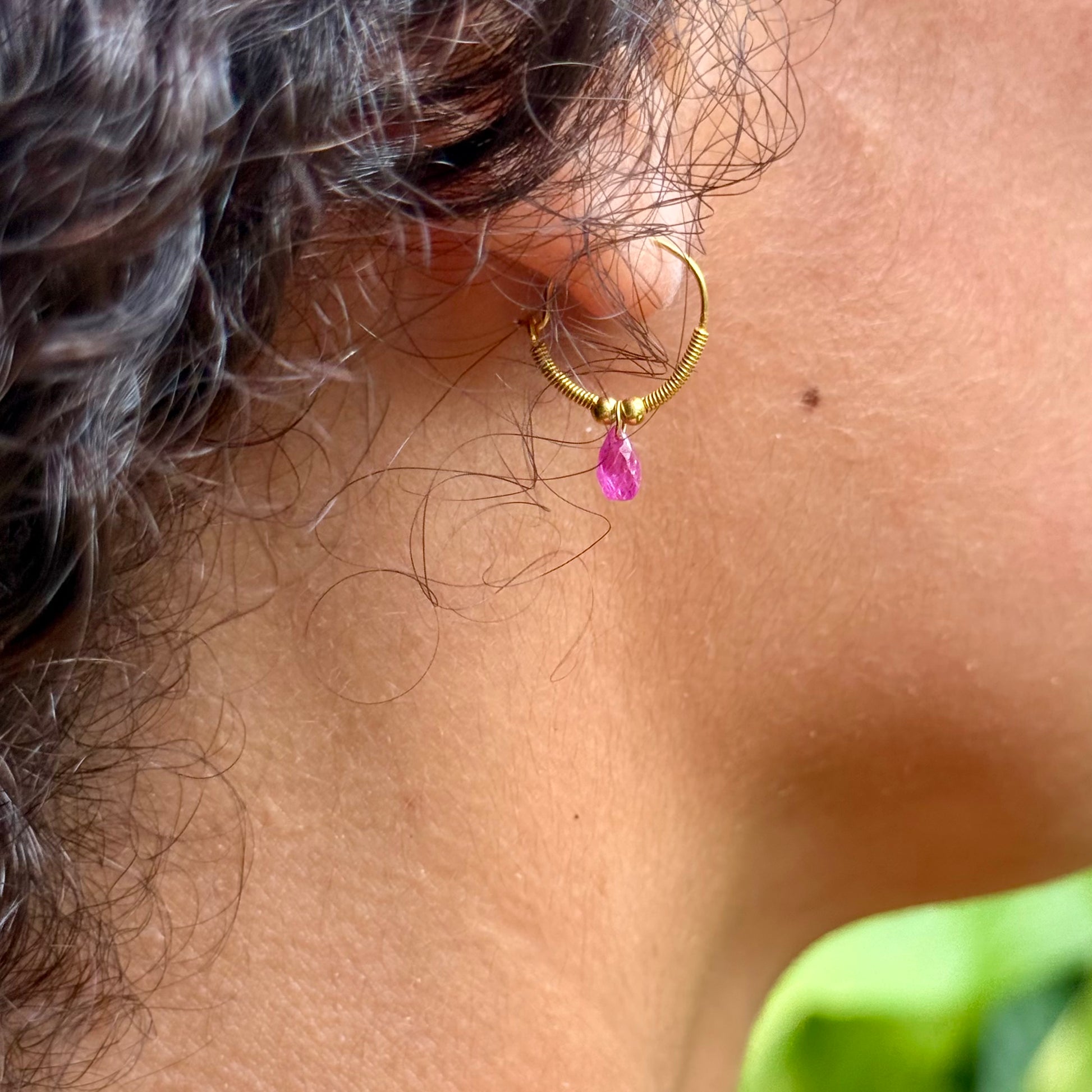 Golden Droplet Hoops with Rubies, Baby (15mm)