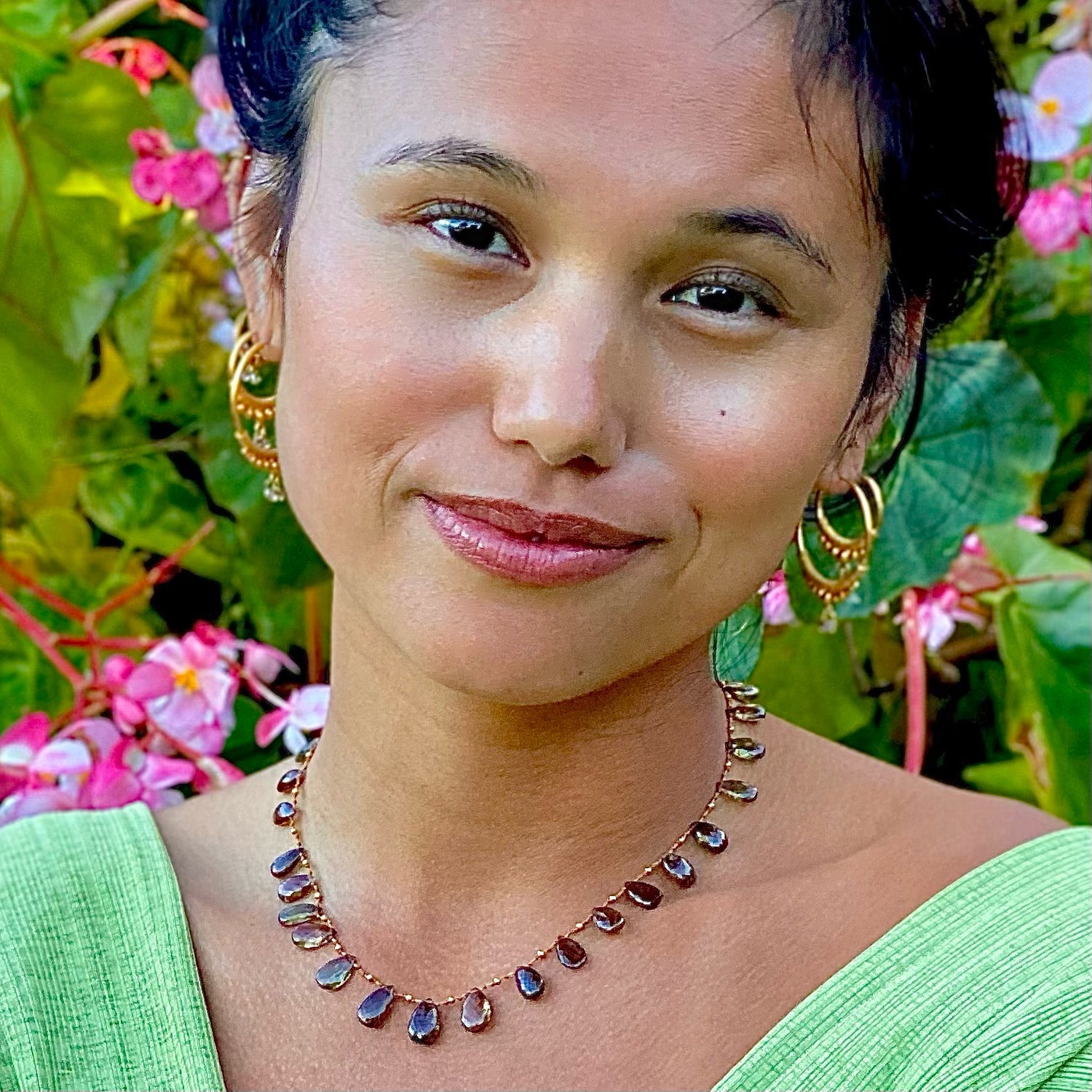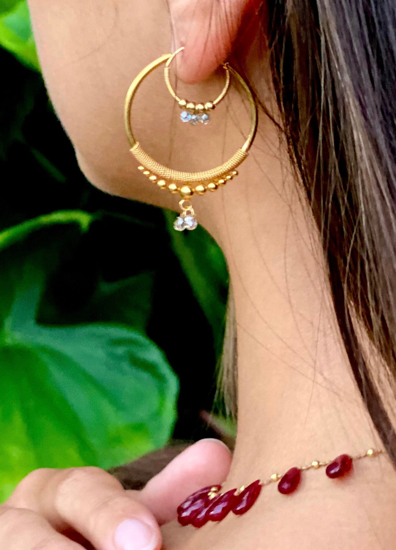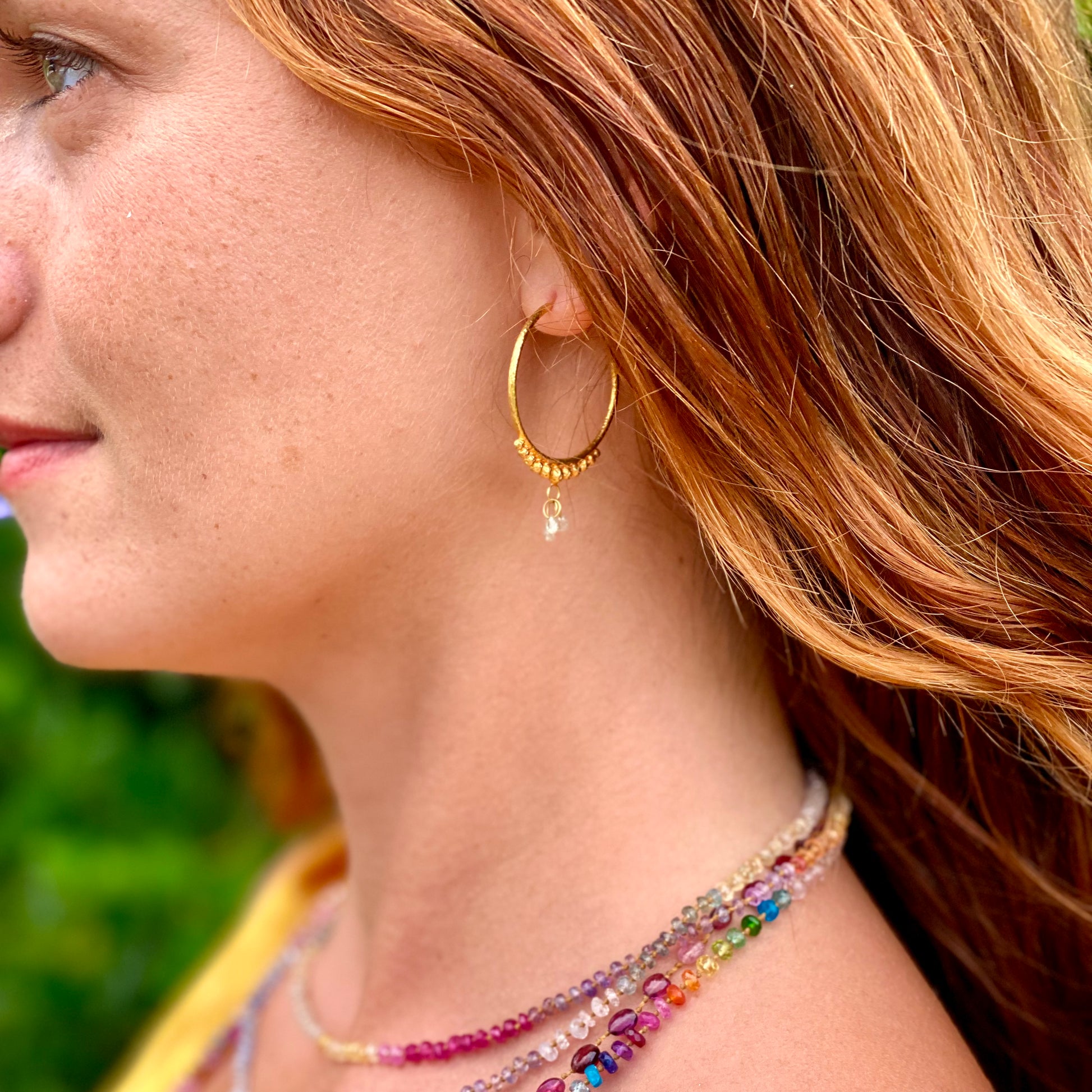 Designed and crafted in alliance with a 9th generation gold smithing family from India, these handmade earrings are as authentic as they are delightful. The precious metal gold is considered a master healer with rays in spiritual development, purification, and rejuvenation and these earrings carry the vibration rightly. Inspired by traditional Indian design with Amalia’s flair for detail their style is enhanced with solid 18 karat gold, precious gemstones, and hand formed beads. Together they spark a quiet revival of play, artistry, and finely honed craft, honoring the maker and the adorned.