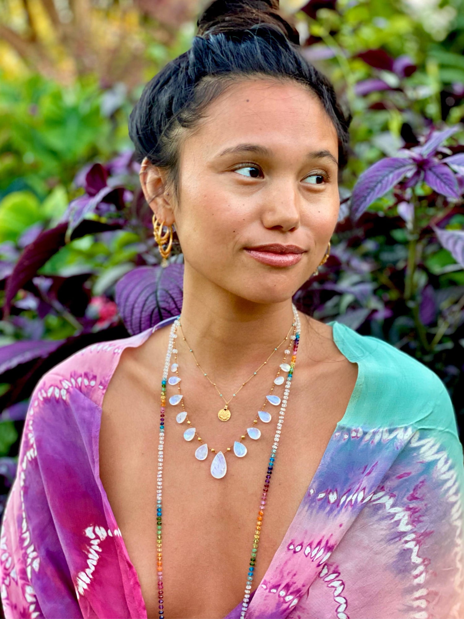 We think the Ali'i Mana make incredible solo statement pieces and are beautifully accented aside our earring collection. But as always, they may be worn in sophistication with any of our other collections such as our Rainbow Leis, malas, or bracelets.