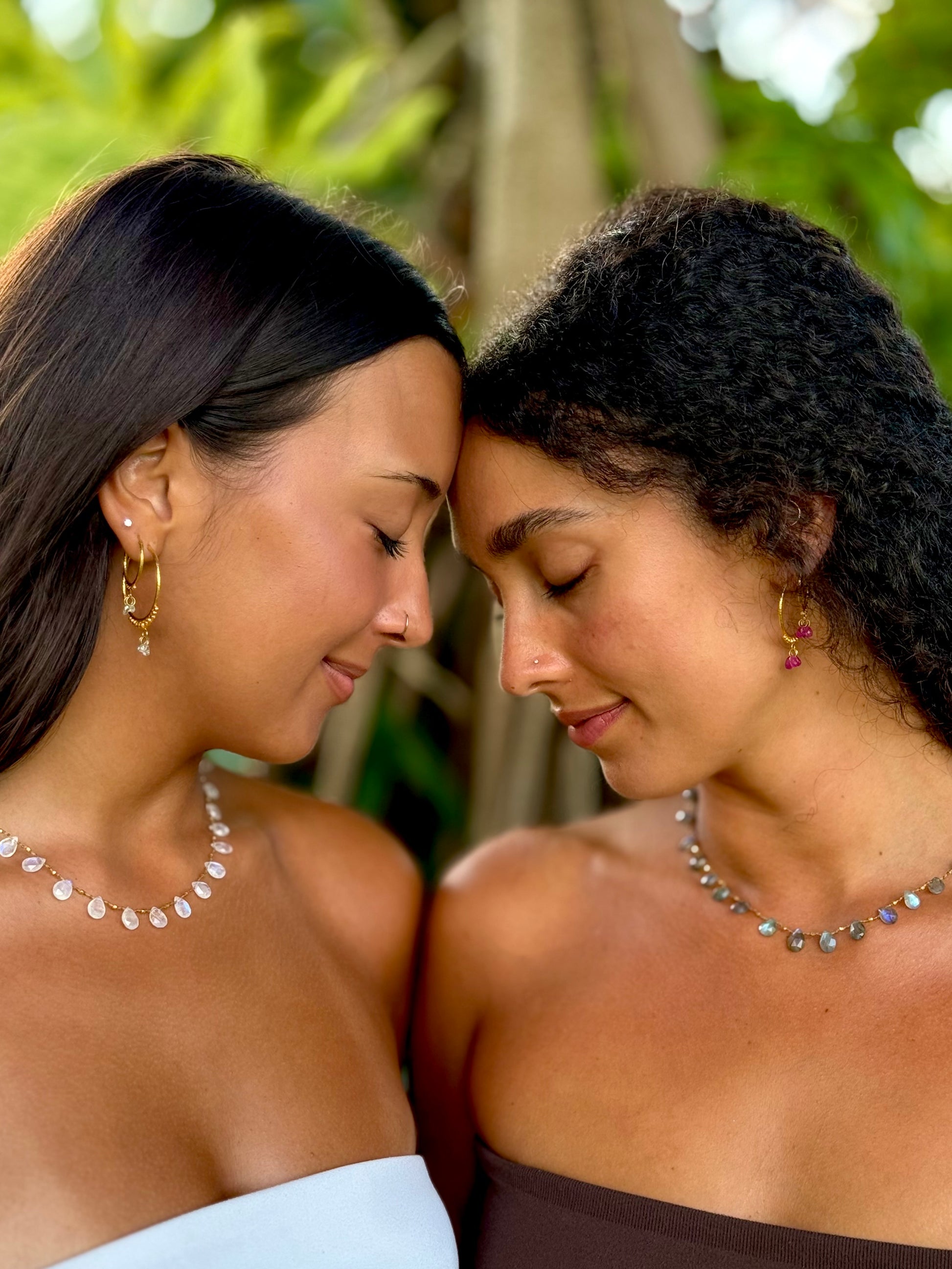 I decided to expand my collection and delve deeper into the Ali'i series. I chose five different gemstones for Ali'i necklaces, each representing one of the five elements. For the element of Metal/White, I have selected Moonstone. Emerald, a beautiful green gemstone, represents the element of Wood. To embody the element of Water/Blue, I have chosen Aquamarine and Blue Sapphire. For Fire/Red, I have opted for Pink Sapphire (or Ruby). To symbolize the element of Earth/Yellow, I have selected Pomegranate Gems and Citrine. These gemstones possess vibrant colors and distinct energies that bring a sense of balance and harmony to my personal practice. I LOVE all of my Ali'i necklaces.