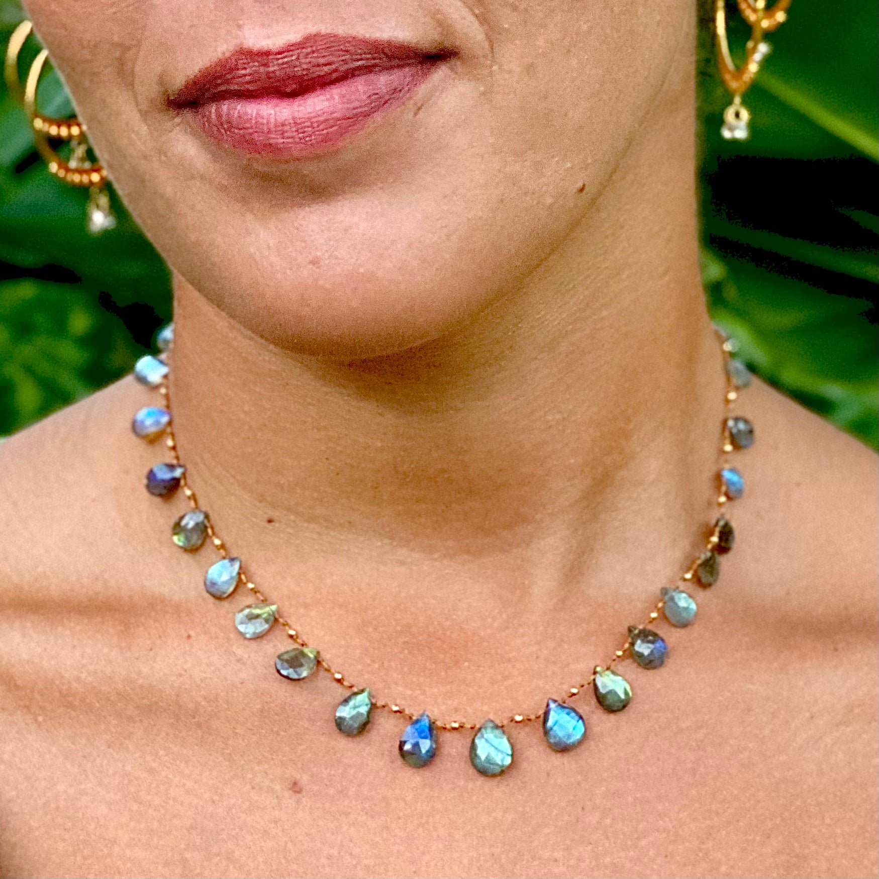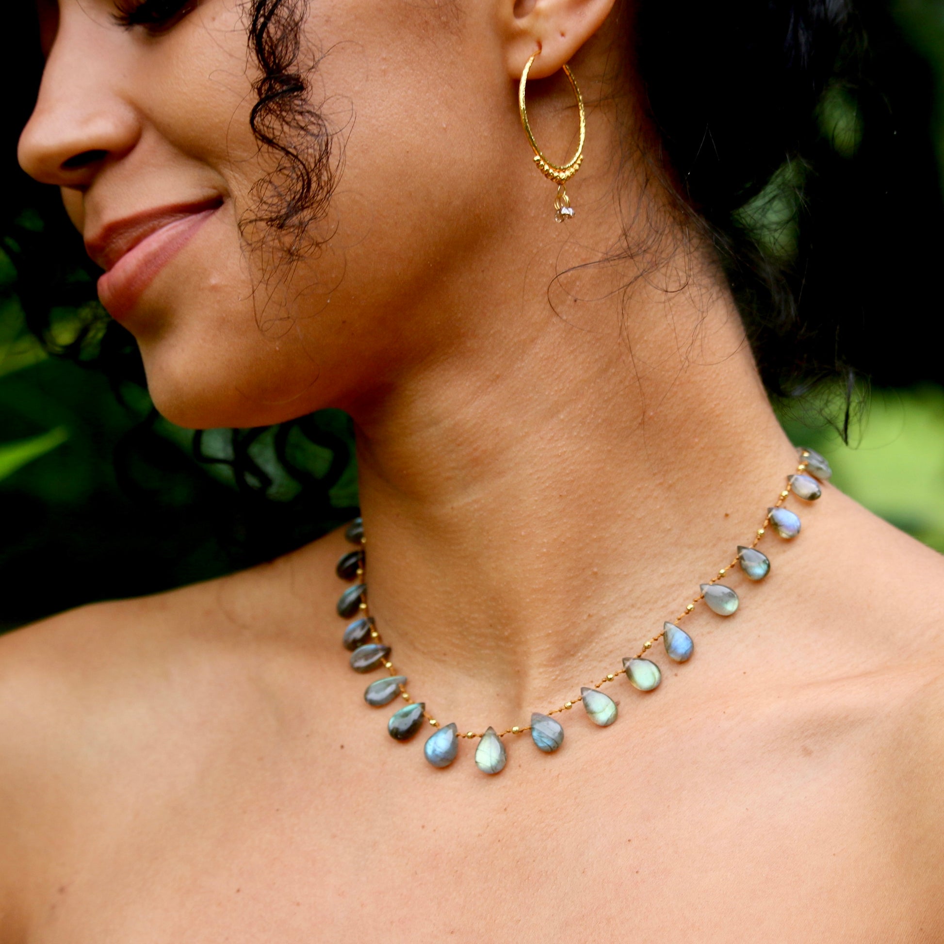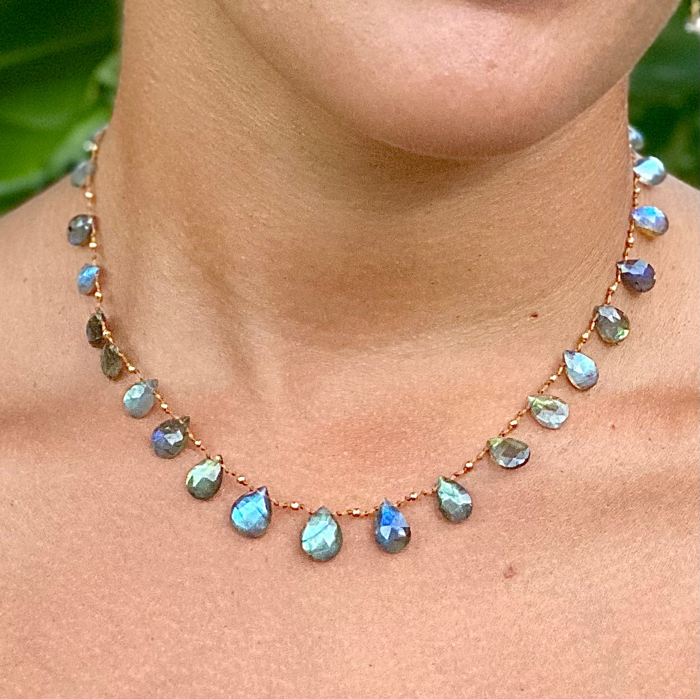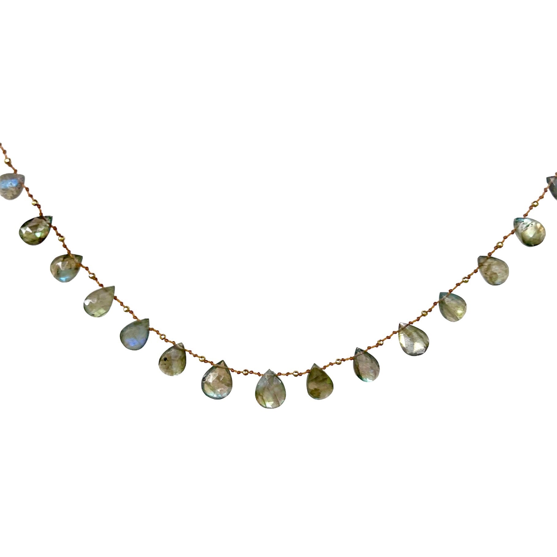 Gorgeous Labradorites delicately spaced with handmade solid 18k gold beads