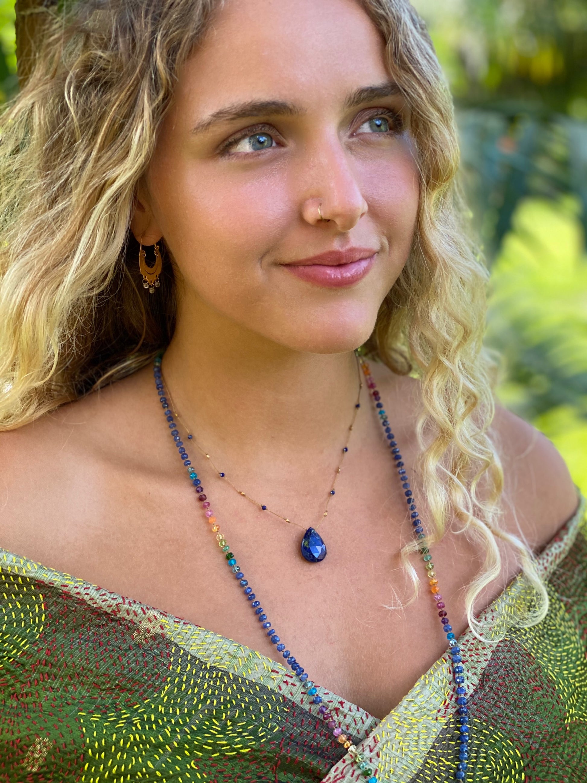 You can layer Alohi Drops with our Rainbow Leis, Malas or any of our other collections to highlight dynamic color contrast or chosen mineral emphasis. They are also lovely paired with our gold earring collection.