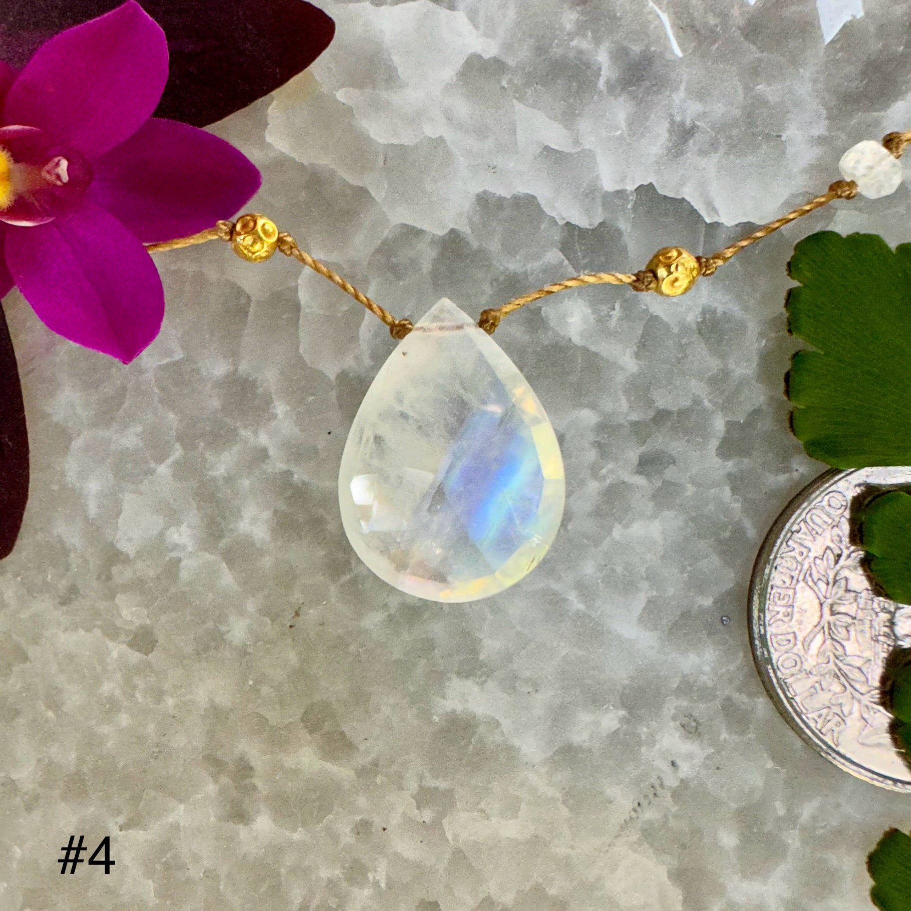 Exquisitely iridescent large Moonstone drop with large handmade solid 18k gold beads.