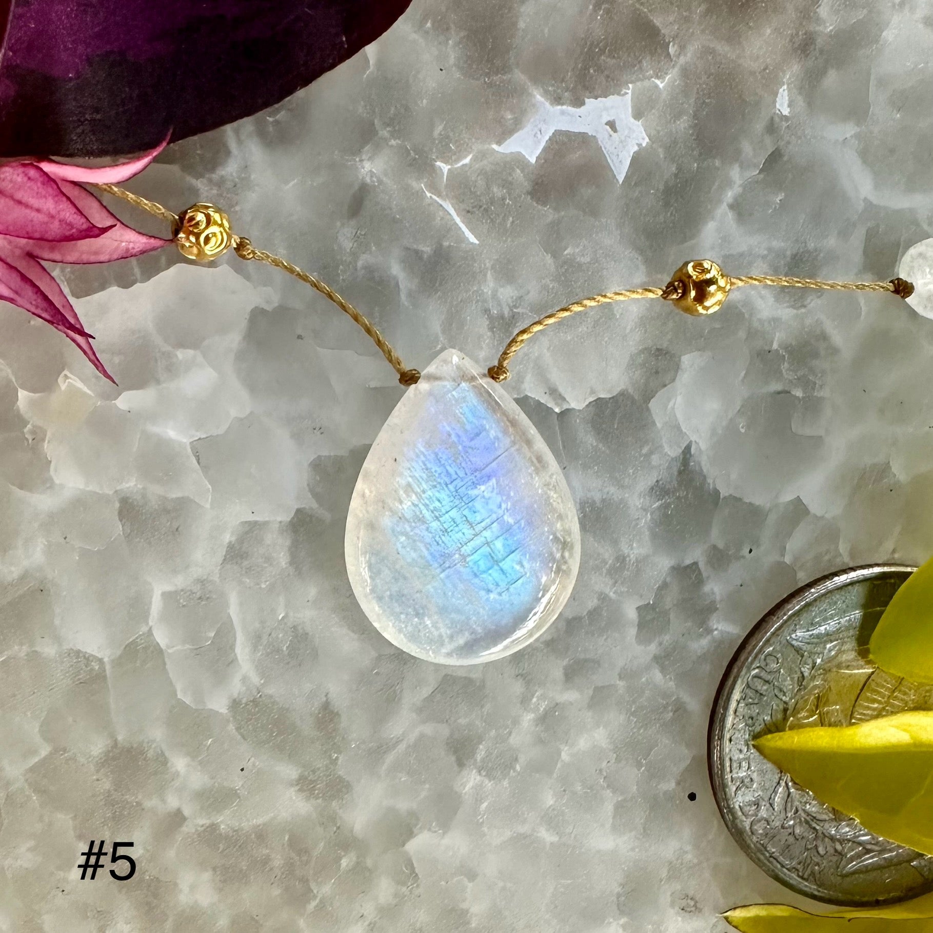 So named after our guiding moon, this kaleidoscopic amulet by way of India illuminates our peripheries to bigger pictures and helps us align with the cyclical nature of life, thereby embracing change and new beginnings. A magnifier of emotions, it relates to the higher chakras and the physical womb. It may be of assistance with fertility, hormone balance, inner vision, and intuition.