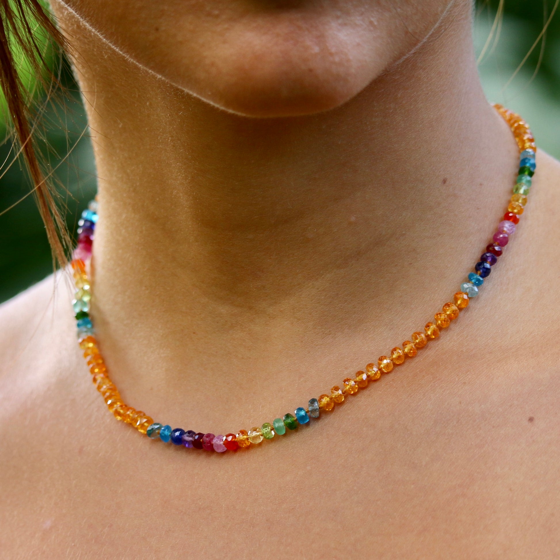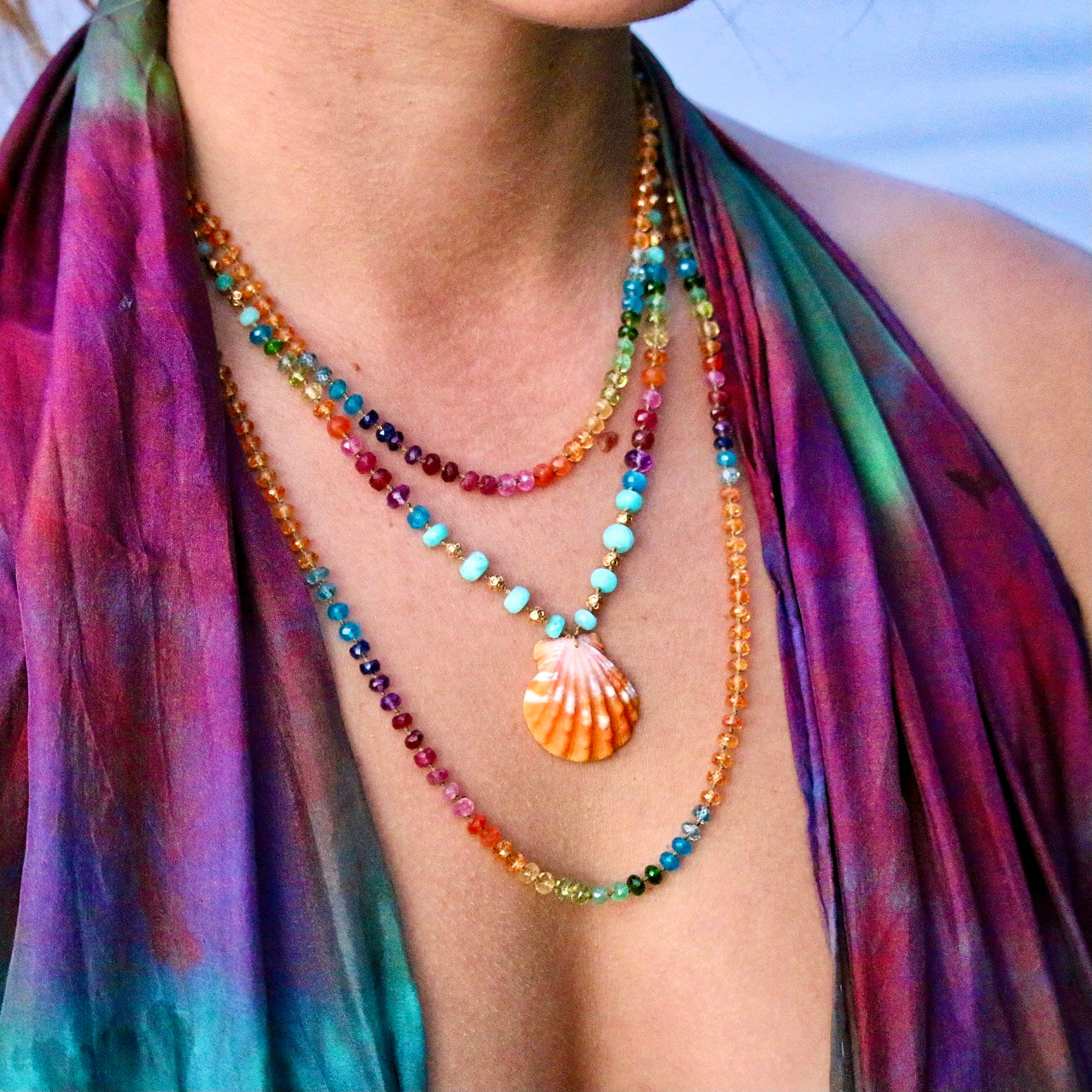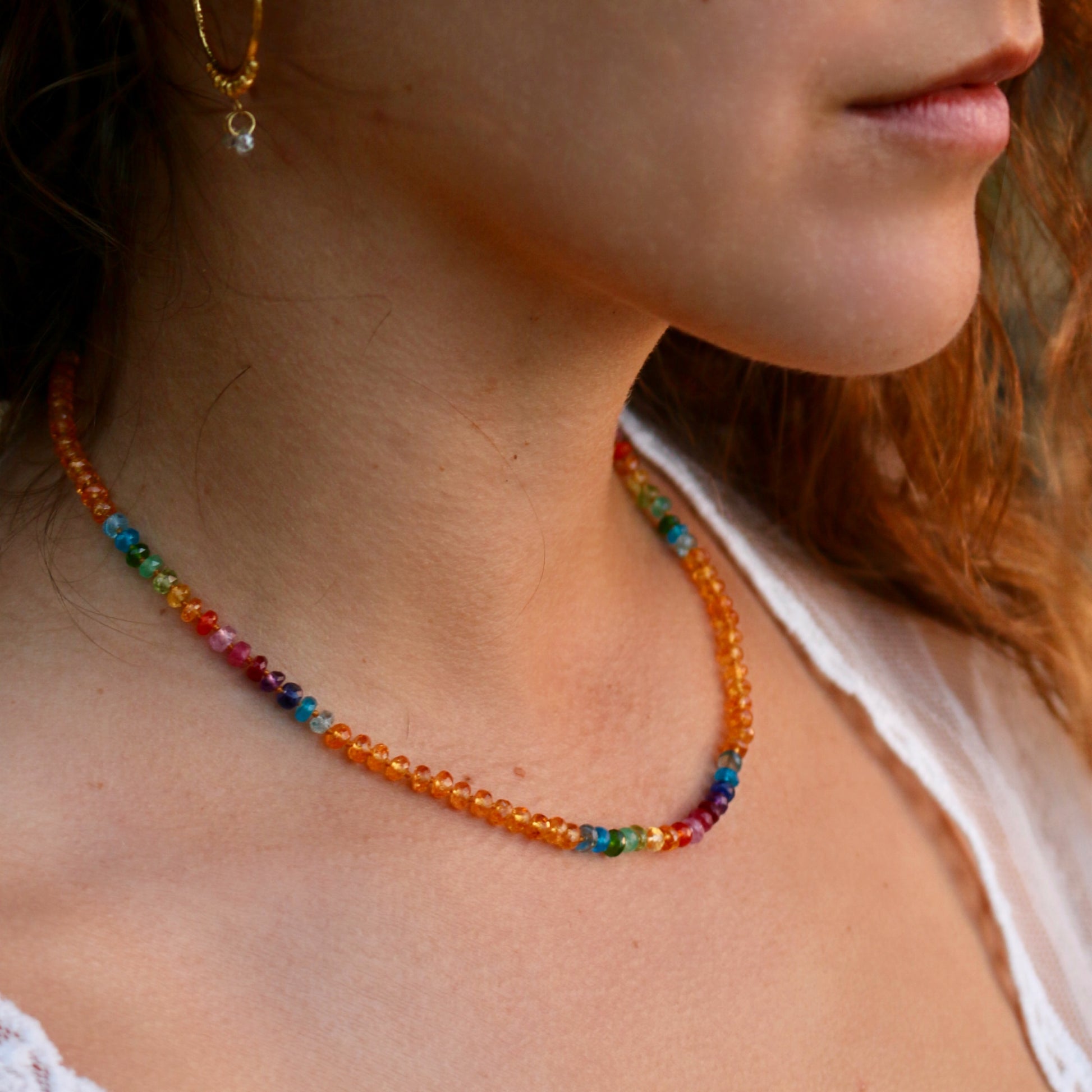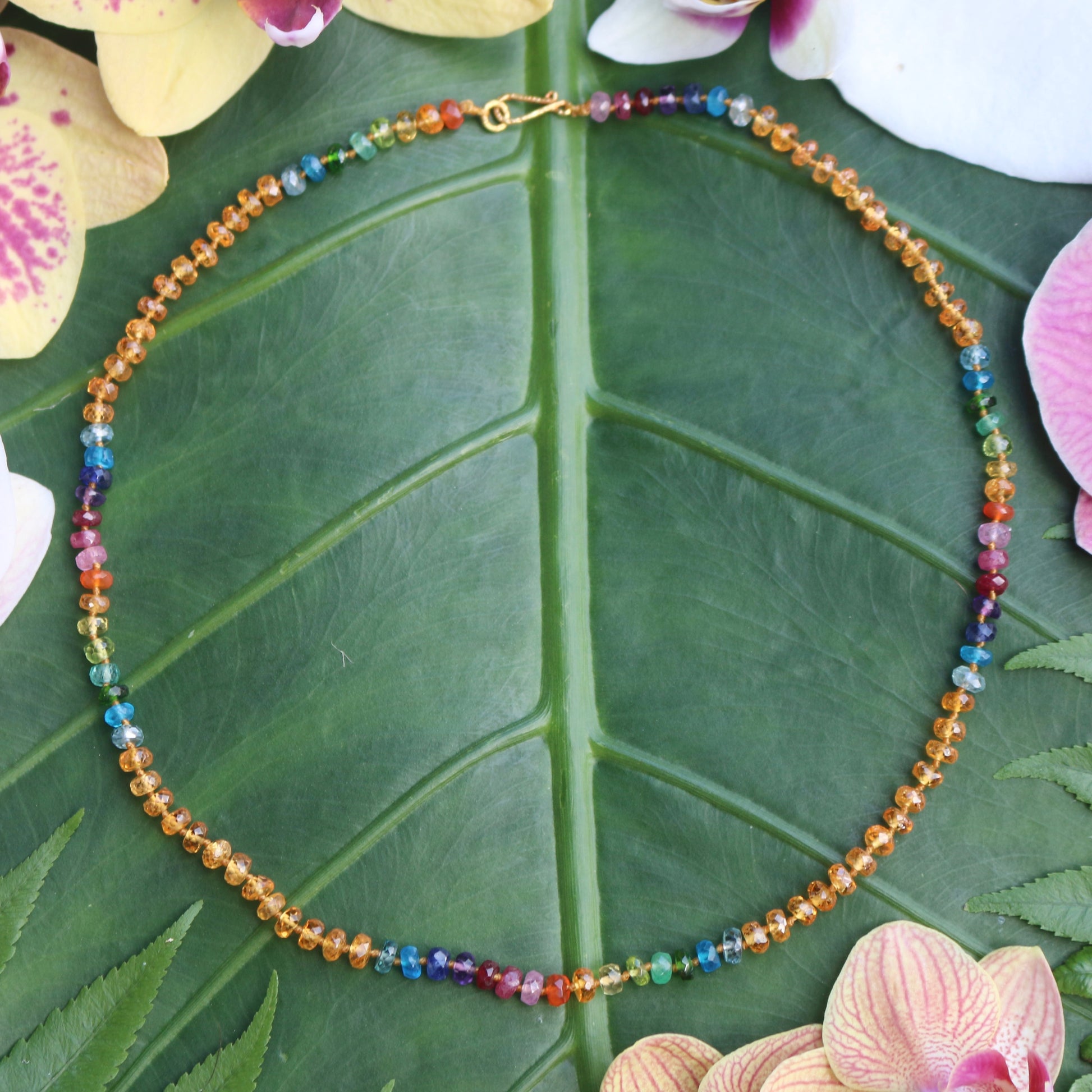 You can layer Rainbow Leis with with both our Alohi or Rainbow Drop collections. They are also a lovely compliment to our Rainbow Mana pieces and can be worn to bring forth dynamic color contrast or chosen mineral emphasis.