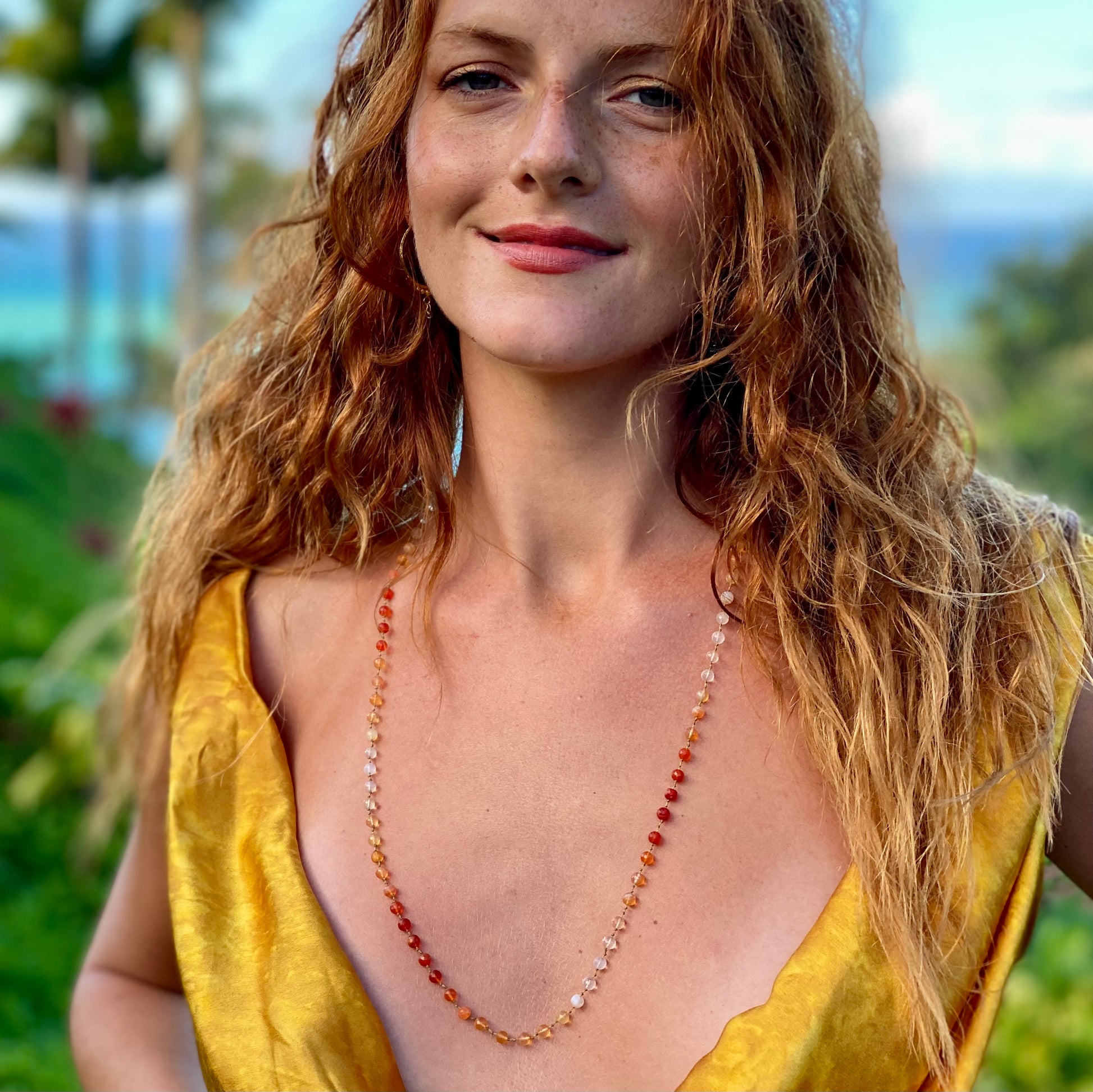 Leis are a quintessential Hawaiian tradition formed in the stringing of aromatic flower blossoms and local foliage bestowing the spirit of aloha upon the recipient. While these gemstone garlands are visually similar to our mala collection, the number of beads vary as benefits the particular gemstone design and are meant to be worn as a stringed embrace of love, friendship, welcome, appreciation and honor.