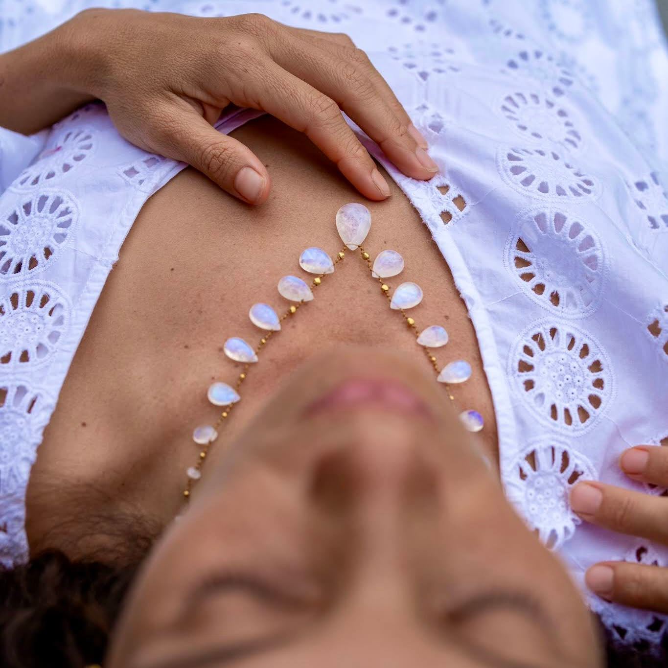 So named after our guiding moon, this kaleidoscopic amulet by way of India illuminates our peripheries to bigger pictures and helps us align with the cyclical nature of life, thereby embracing change and new beginnings. A magnifier of emotions, it relates to the higher chakras and the physical womb. It may be of assistance with fertility, hormone balance, inner vision, and intuition.