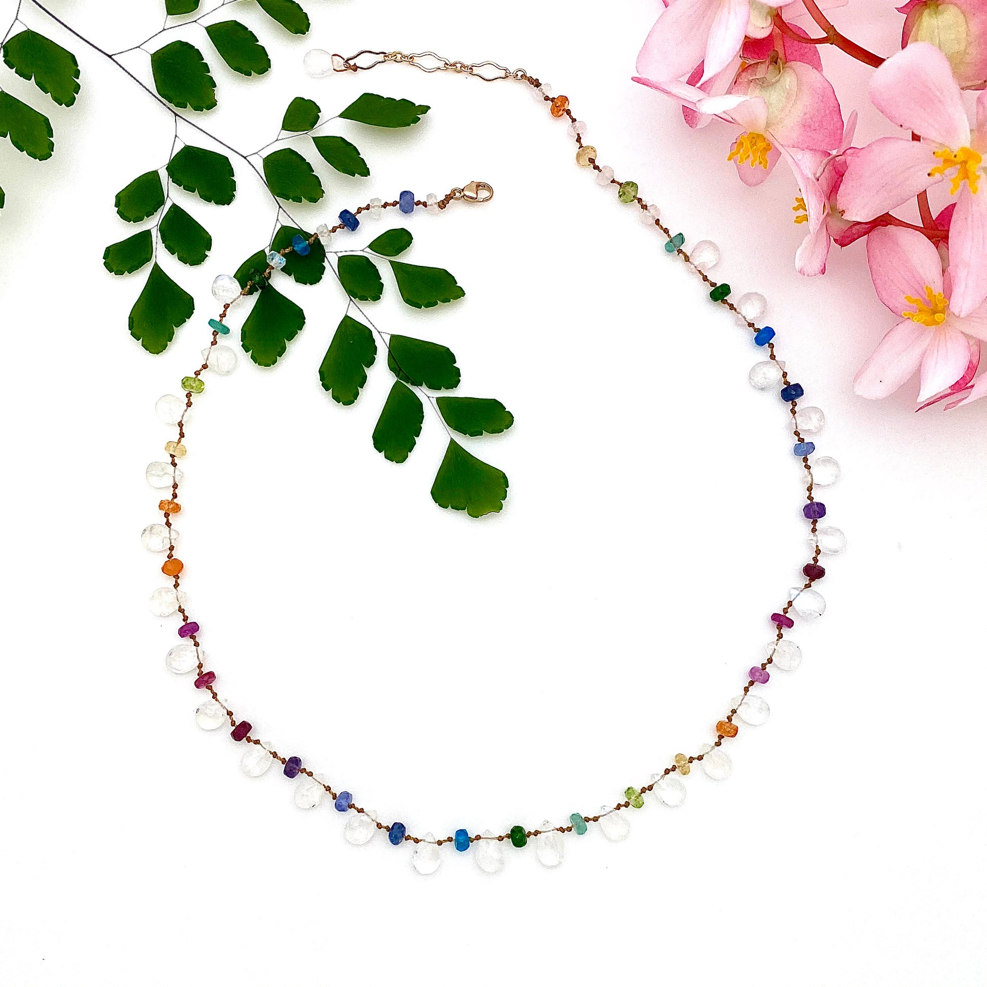 I decided to expand my collection and delve deeper into the Ali'i series. I chose five different gemstones for Ali'i necklaces, each representing one of the five elements. For the element of Metal/White, I have selected Moonstone. Emerald, a beautiful green gemstone, represents the element of Wood. To embody the element of Water/Blue, I have chosen Aquamarine and Blue Sapphire. For Fire/Red, I have opted for Pink Sapphire (or Ruby). To symbolize the element of Earth/Yellow, I have selected Pomegranate Gems and Citrine. These gemstones possess vibrant colors and distinct energies that bring a sense of balance and harmony to my personal practice. I LOVE all of my Ali'i necklaces.