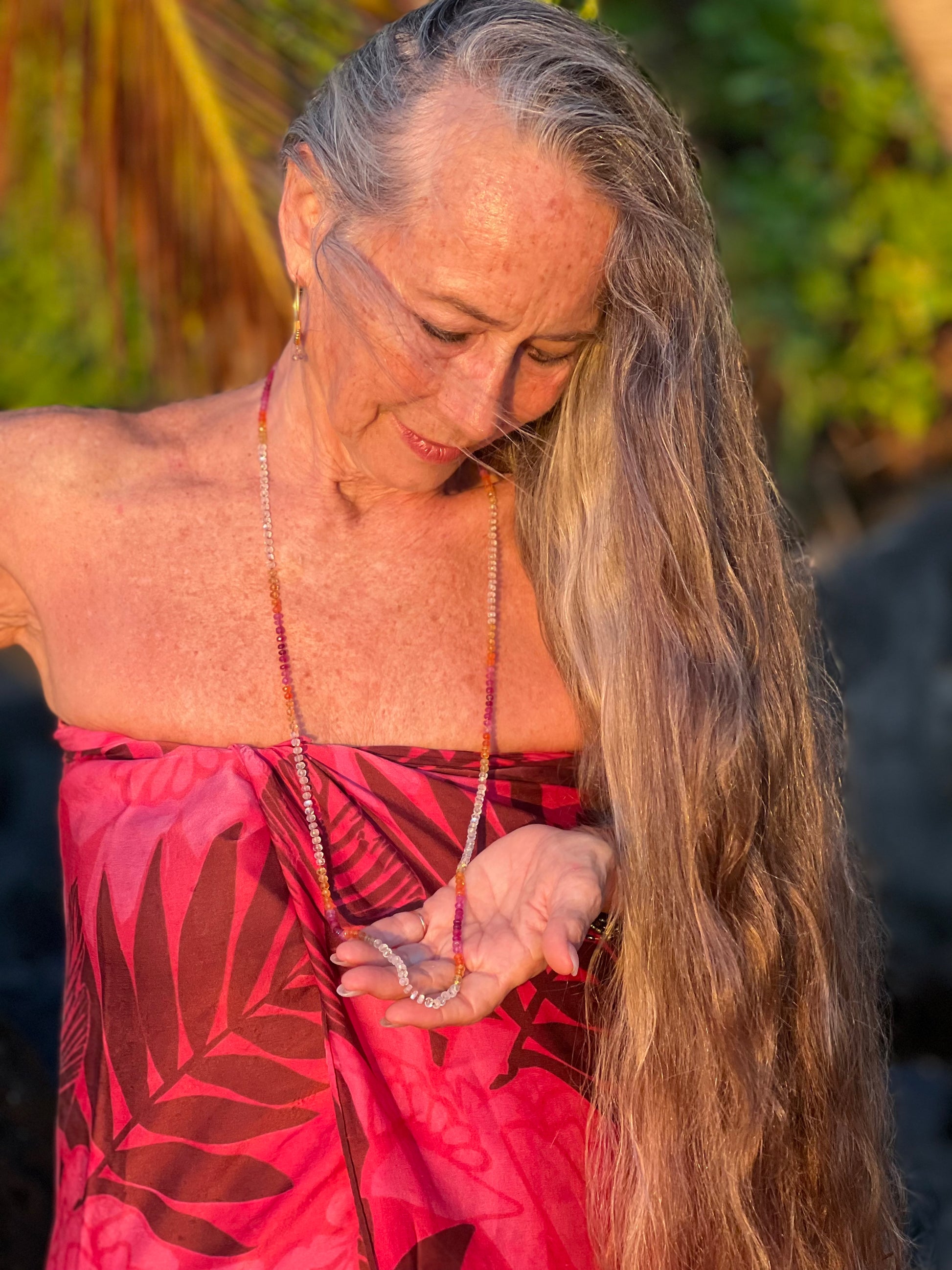 Leis are a quintessential Hawaiian tradition formed in the stringing of aromatic flower blossoms and local foliage bestowing the spirit of aloha upon the recipient. While these gemstone garlands are visually similar to our mala collection, the number of beads vary as benefits the particular gemstone design and are meant to be worn as a stringed embrace of love, friendship, welcome, appreciation and honor.