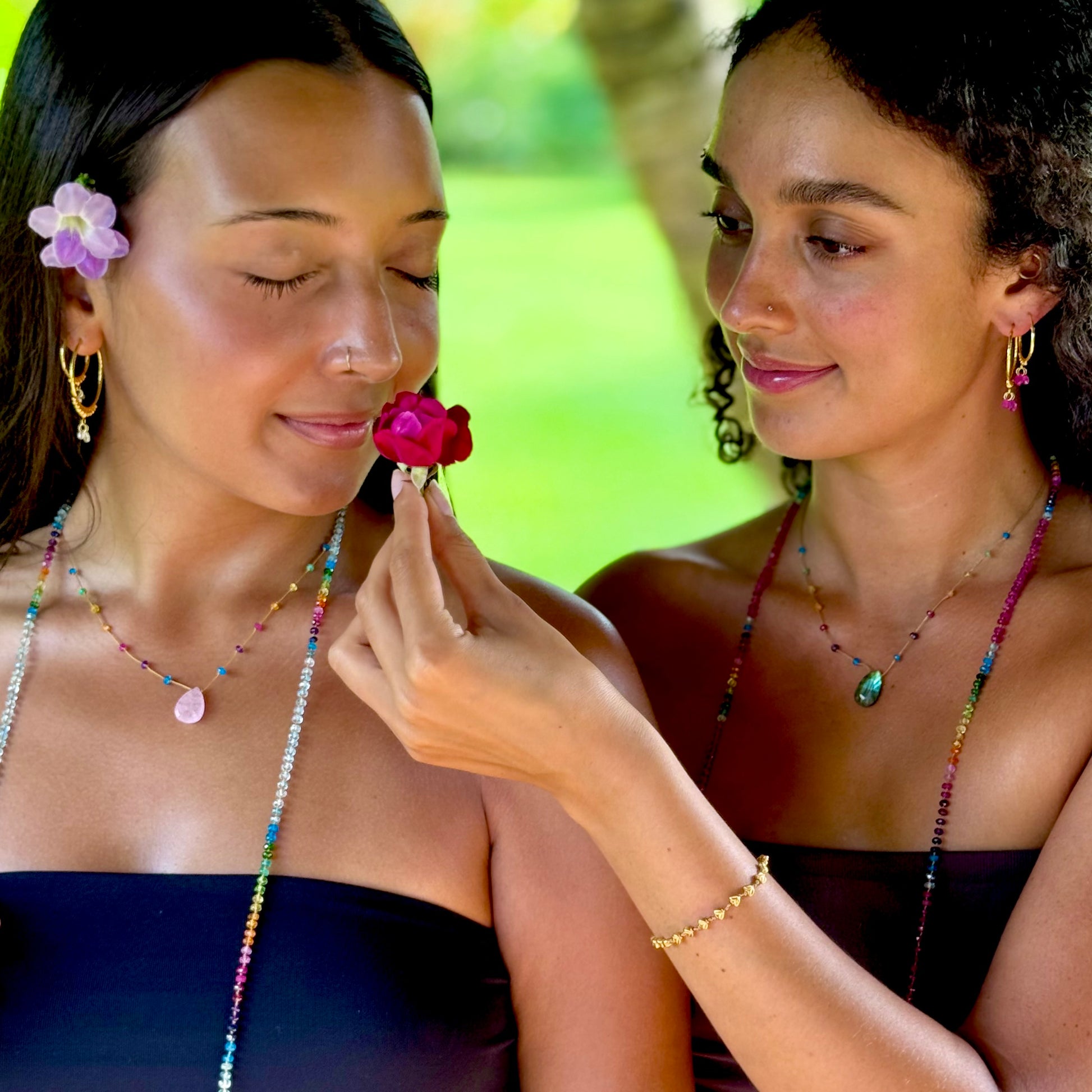 I have been blessed to be adorned by Amalia over the last decade and each year, a new piece finds its way to me. With each one, I can feel the prayers her hands have woven into the precious handcrafted works of art. Too often we forget to gift ourselves with such special gems of adornment. Amalia’s pieces remind us that we are all worthy enough to receive the treasures of sweet Rainbow Drops."