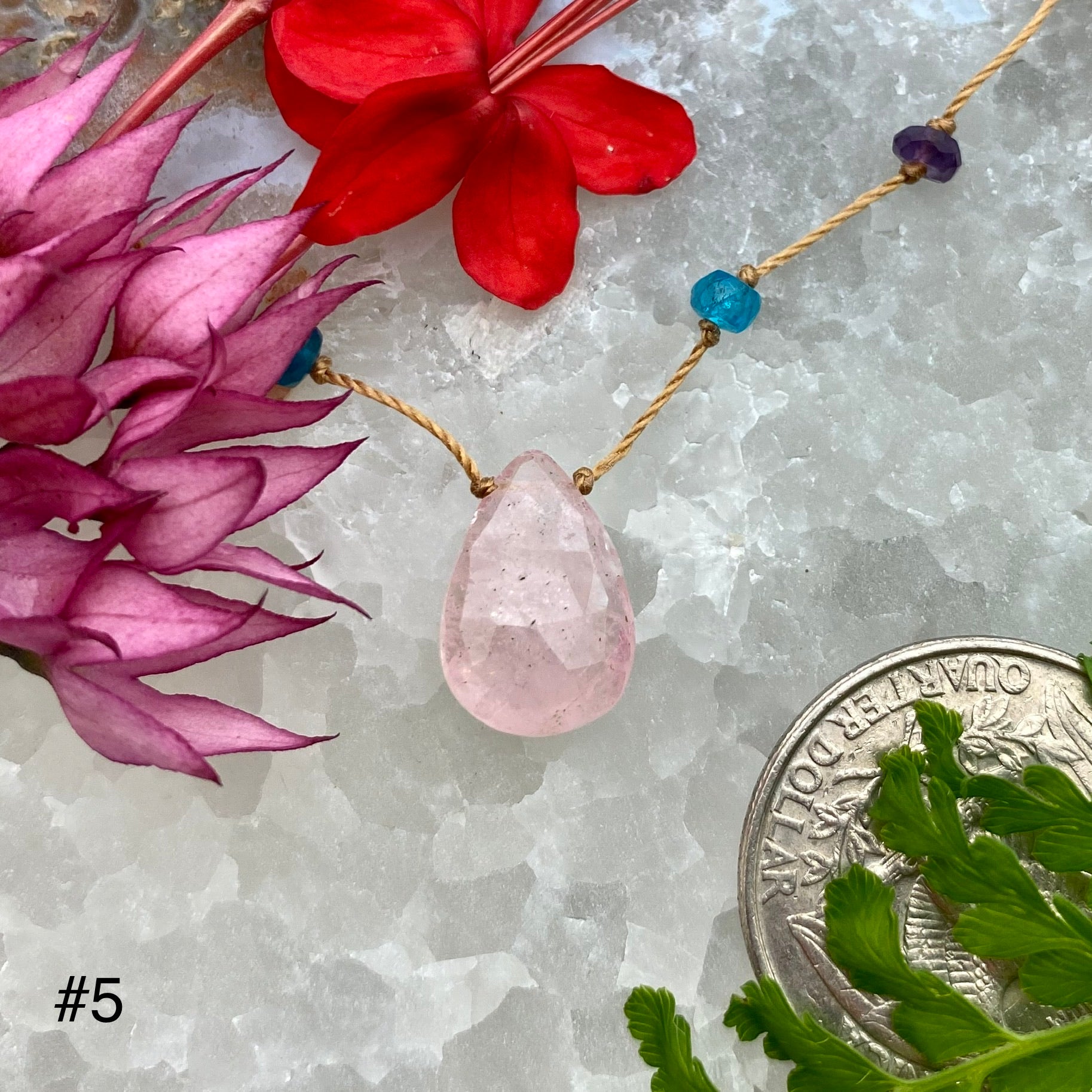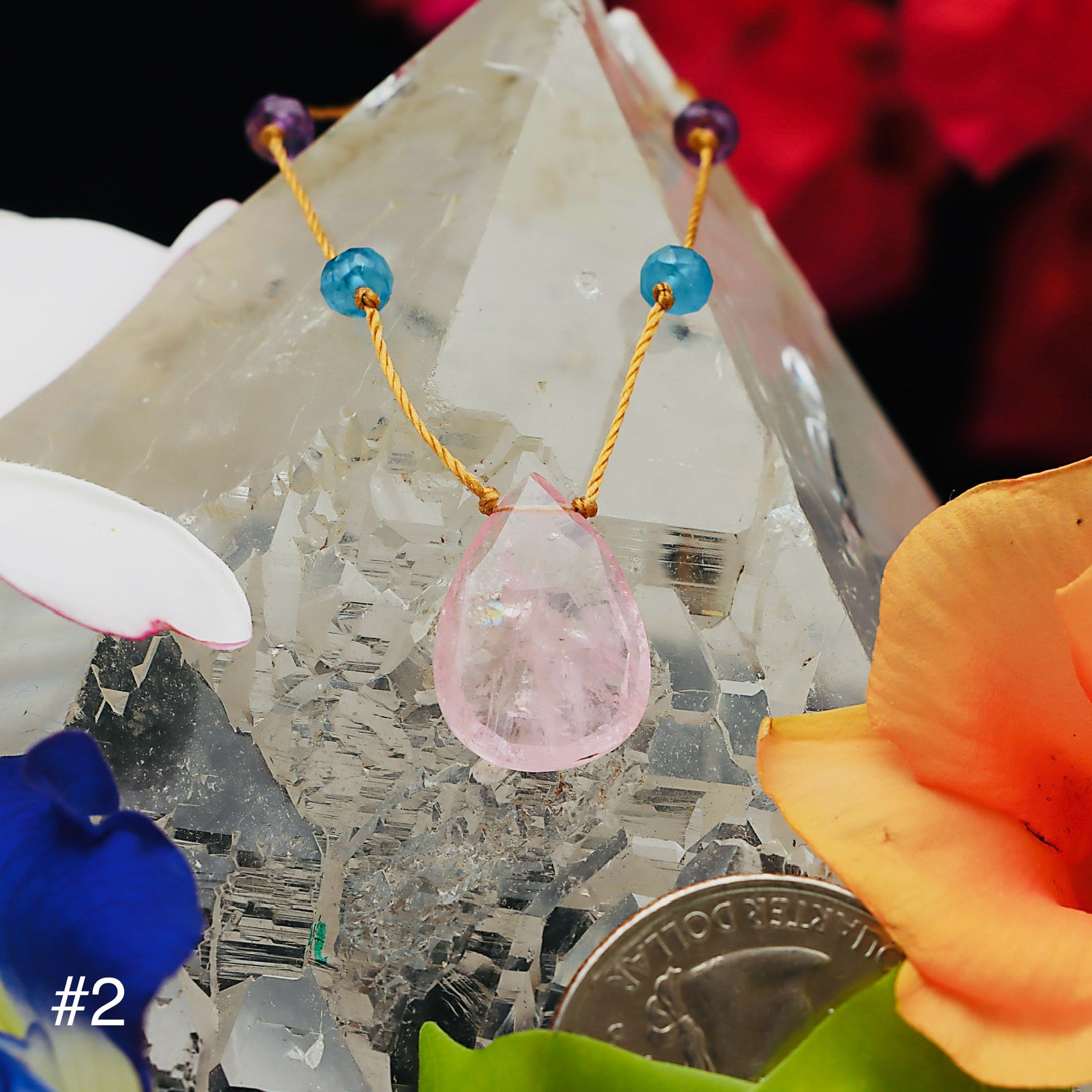 Rainbow drops accent our rainbow leis beautifully and can be worn to emphasize similar colors or to create striking contrasts. They also function as a powerful seed piece inside a stack of chosen malas, leis, and rainbow mana.