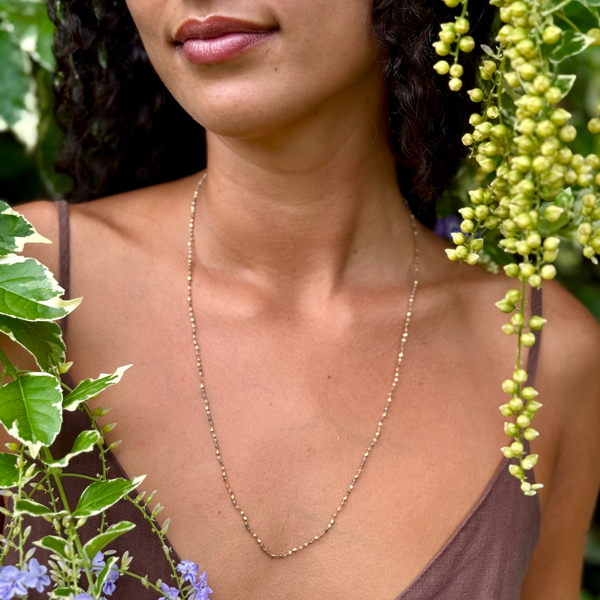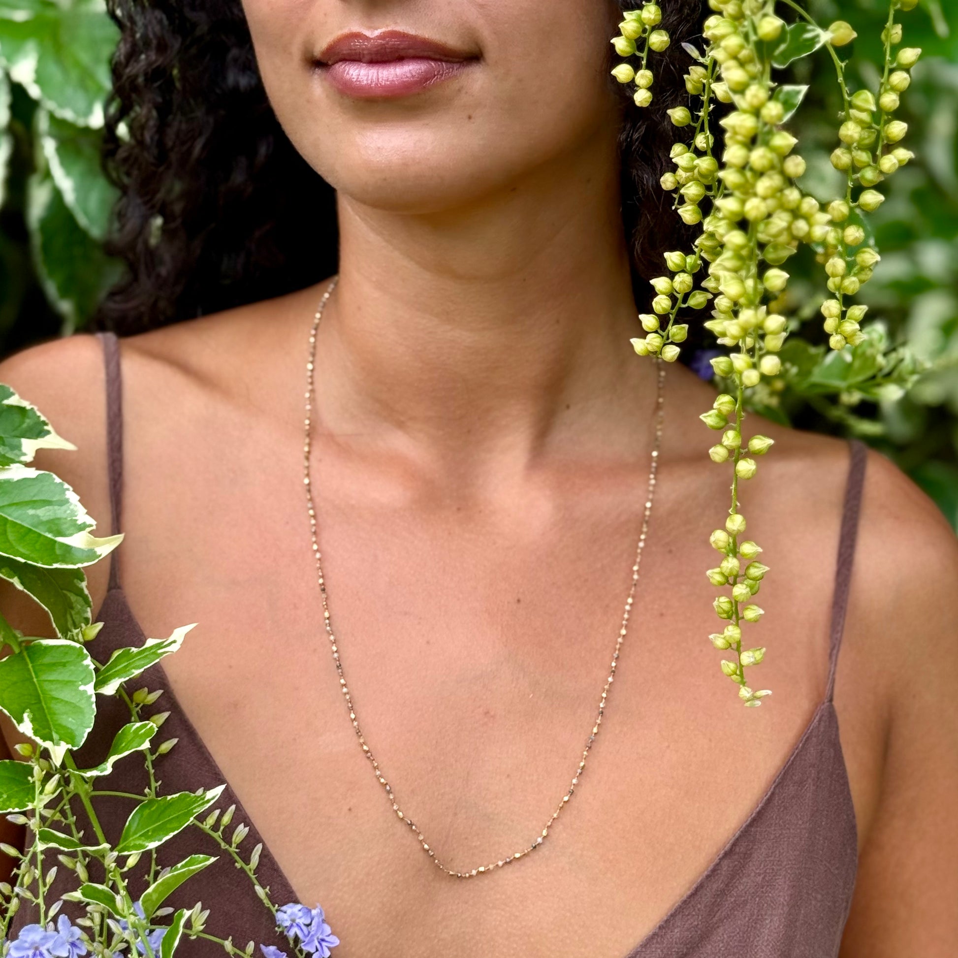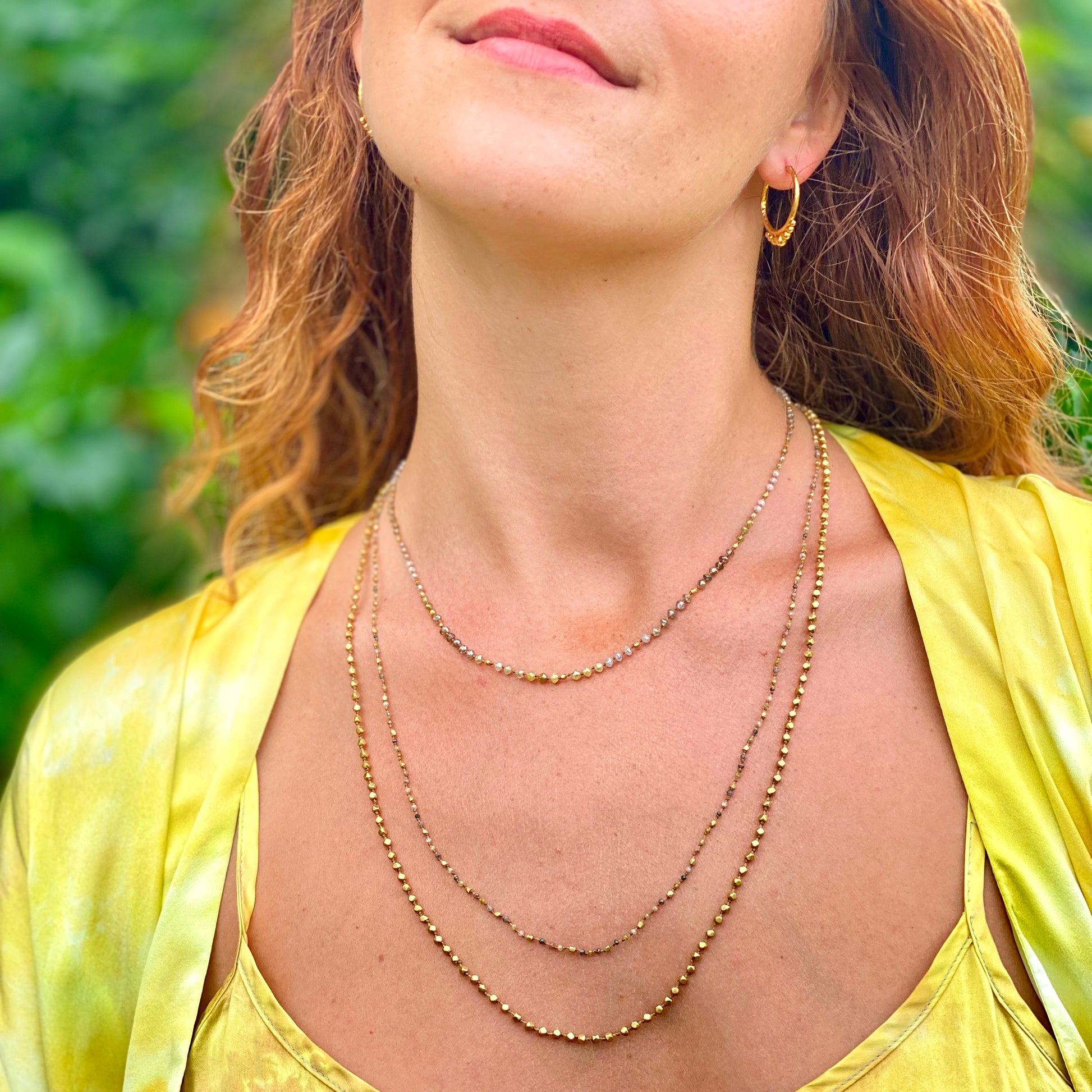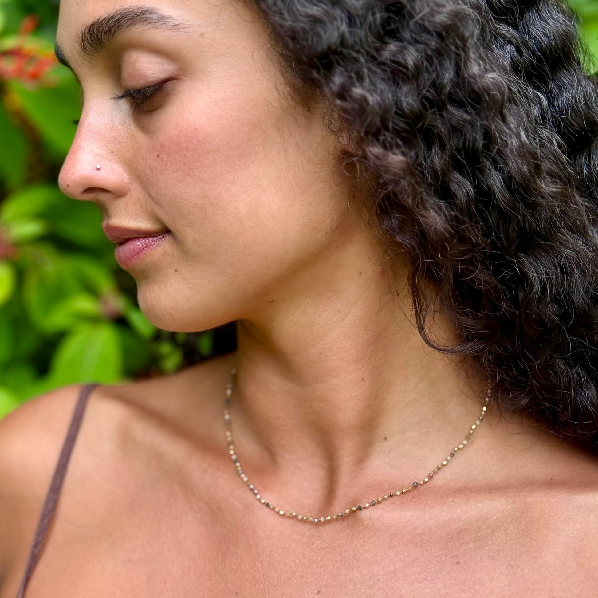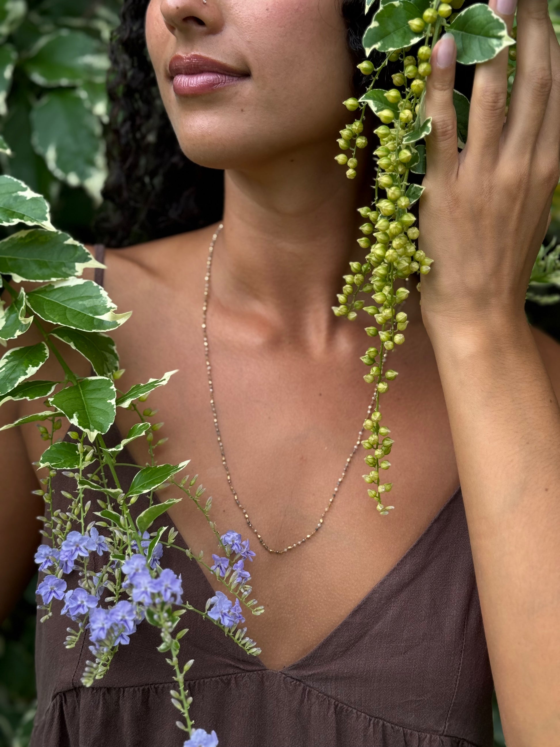 Dazzling and delicate Multi-color Diamond gradient including naturally occurring silver, yellow, green, teal, and chocolate Diamonds with tiny handmade solid 18k gold beads.