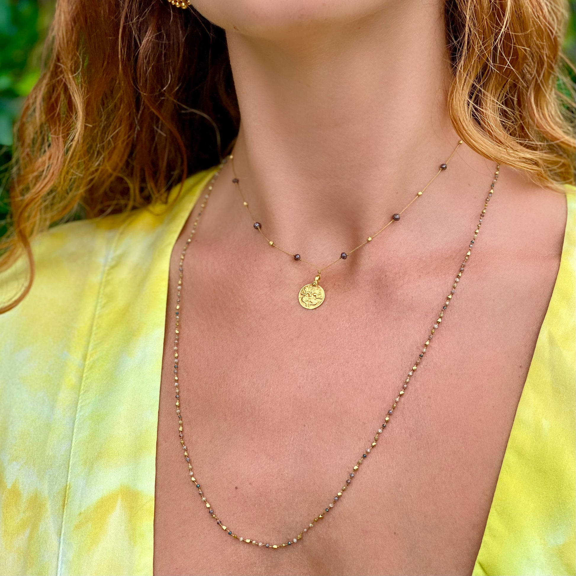 The precious metal gold is considered a master healer with rays in spiritual development, purification, and rejuvenation, and has long been associated with self-actualization. Treasured for its beauty and significance, gold has an enduring appeal. All of our gold elements are designed and crafted by hand in alliance with a 9th generation gold smithing family from India.