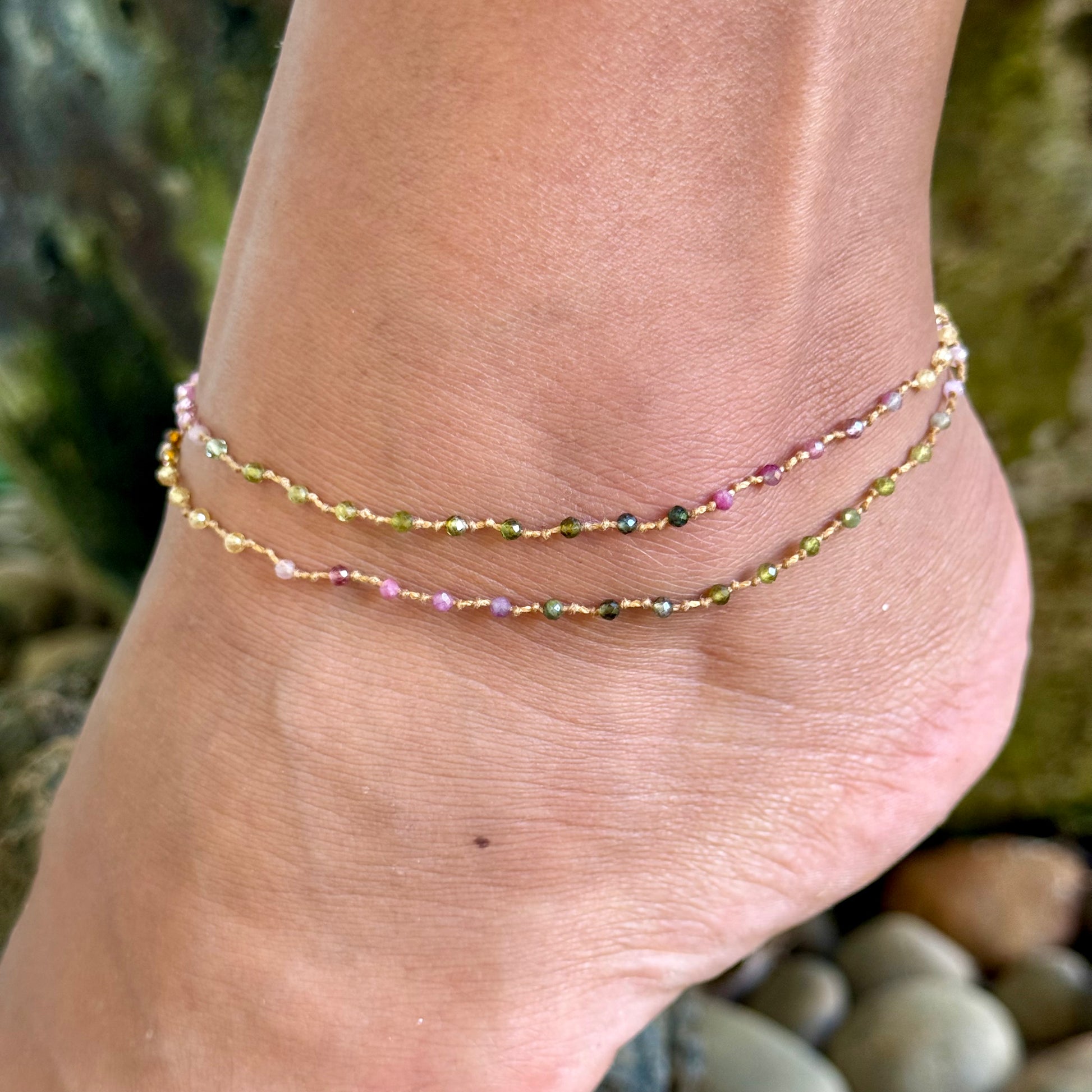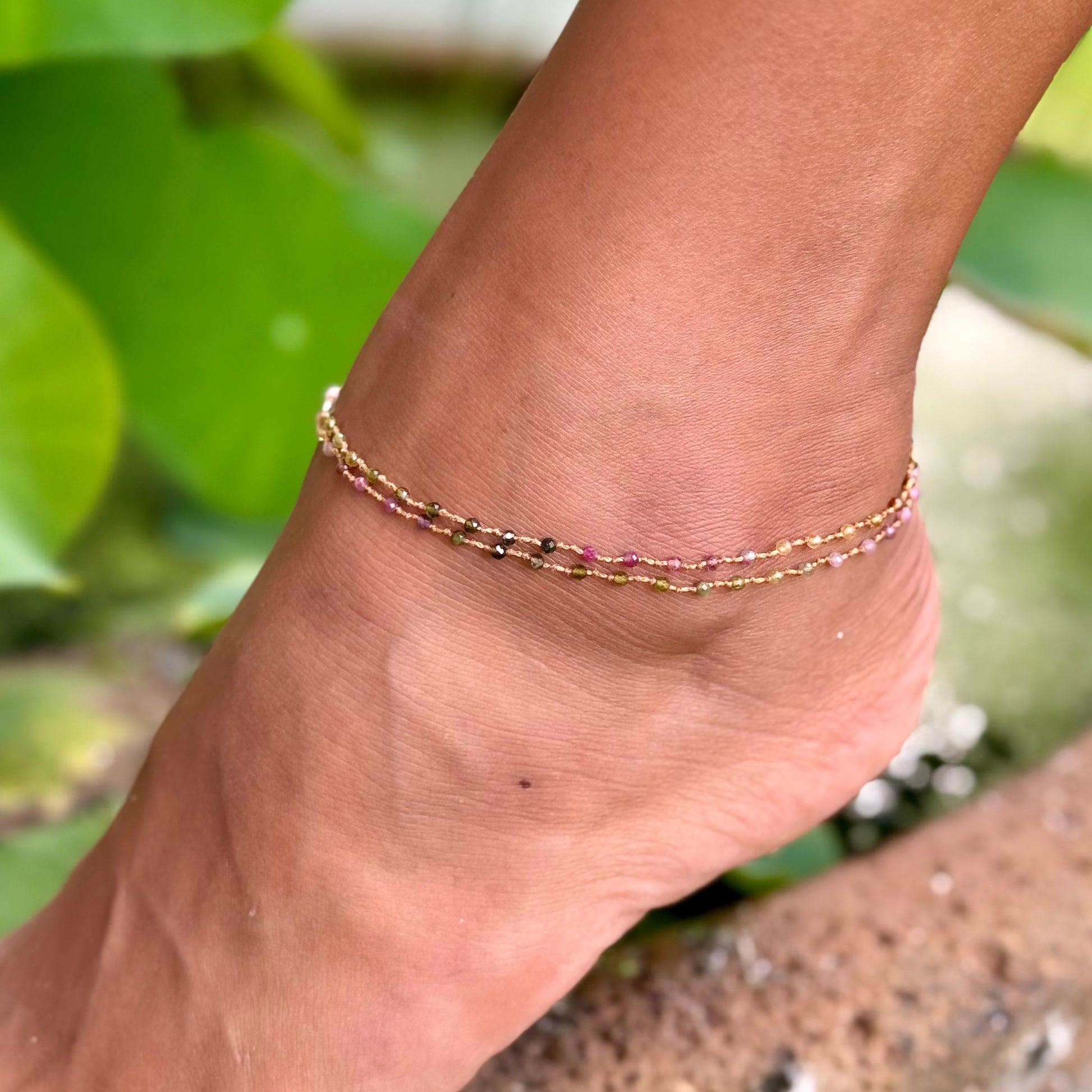 Our Anklets make a sweet accent to any and all of our collections, and can be enlivened stacked anklet to anklet.