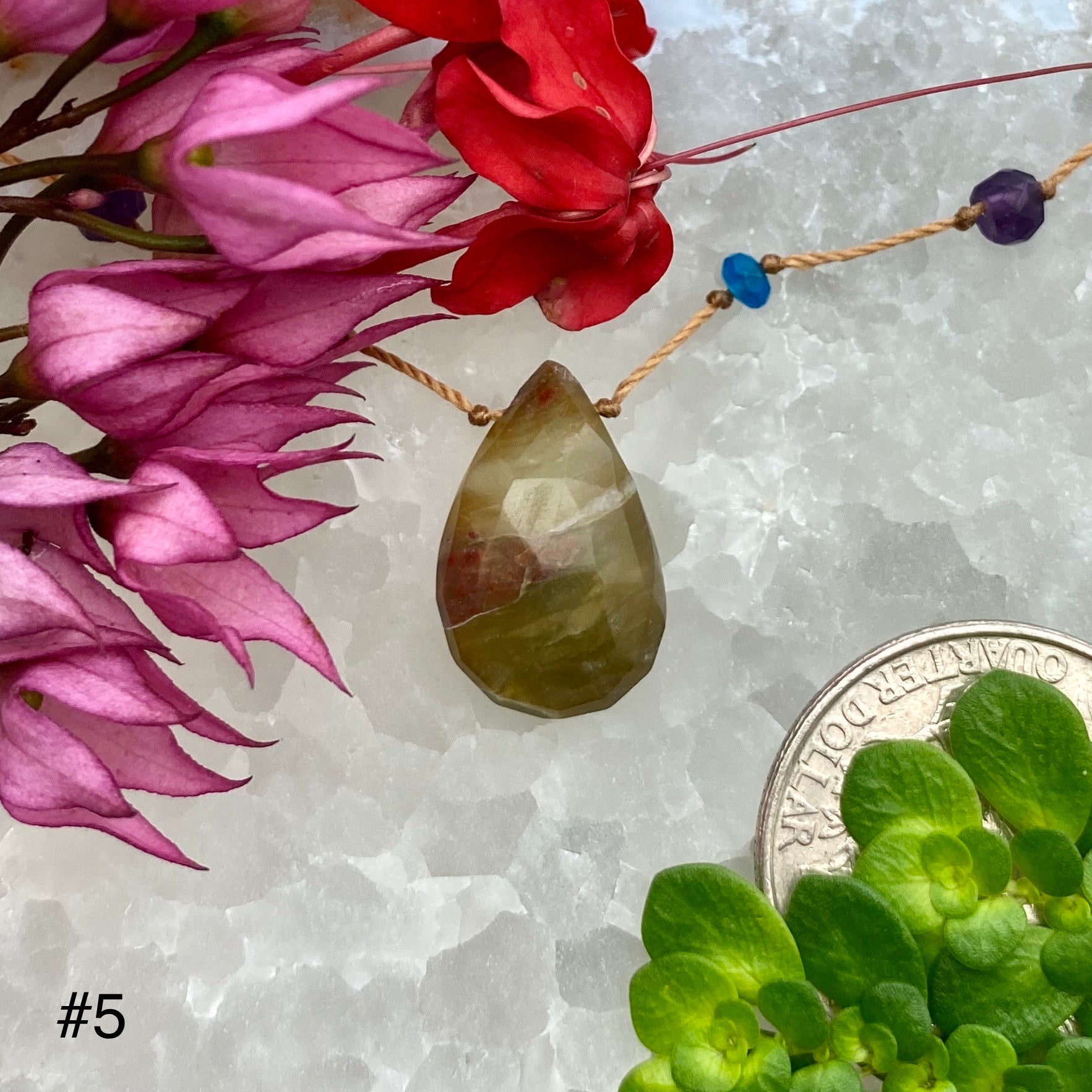 Rainbow drops accent our rainbow leis beautifully and can be worn to emphasize similar colors or to create striking contrasts. They also function as a powerful seed piece inside a stack of chosen malas, leis, and rainbow mana.