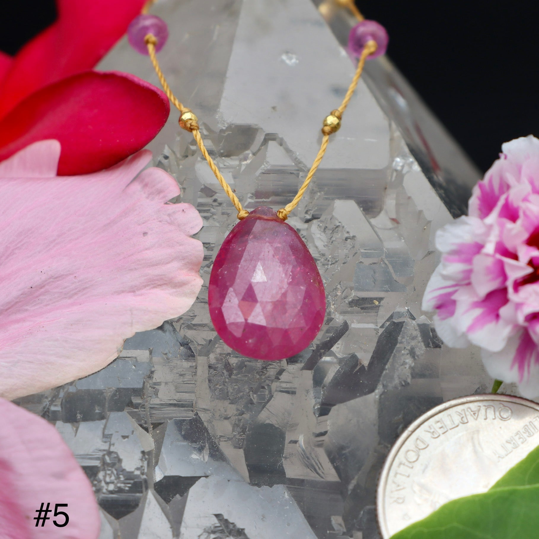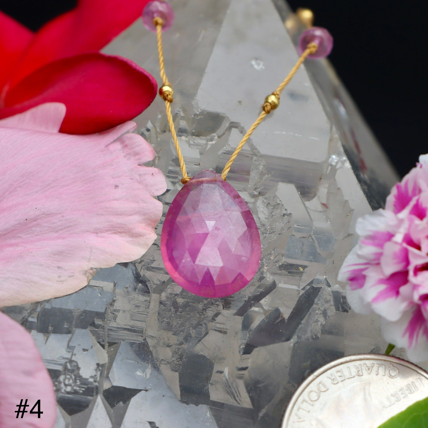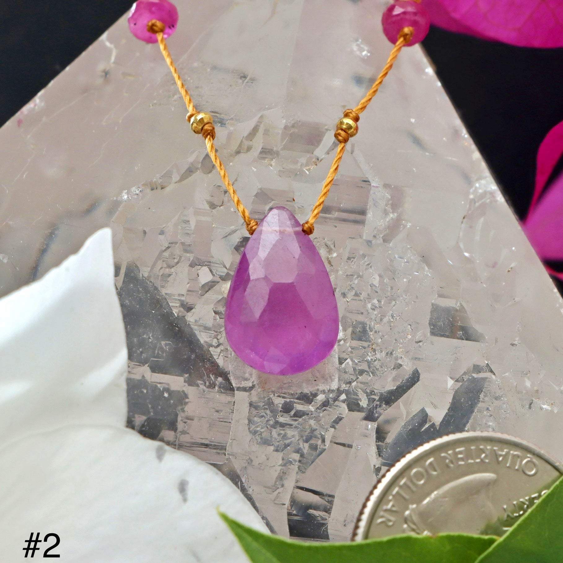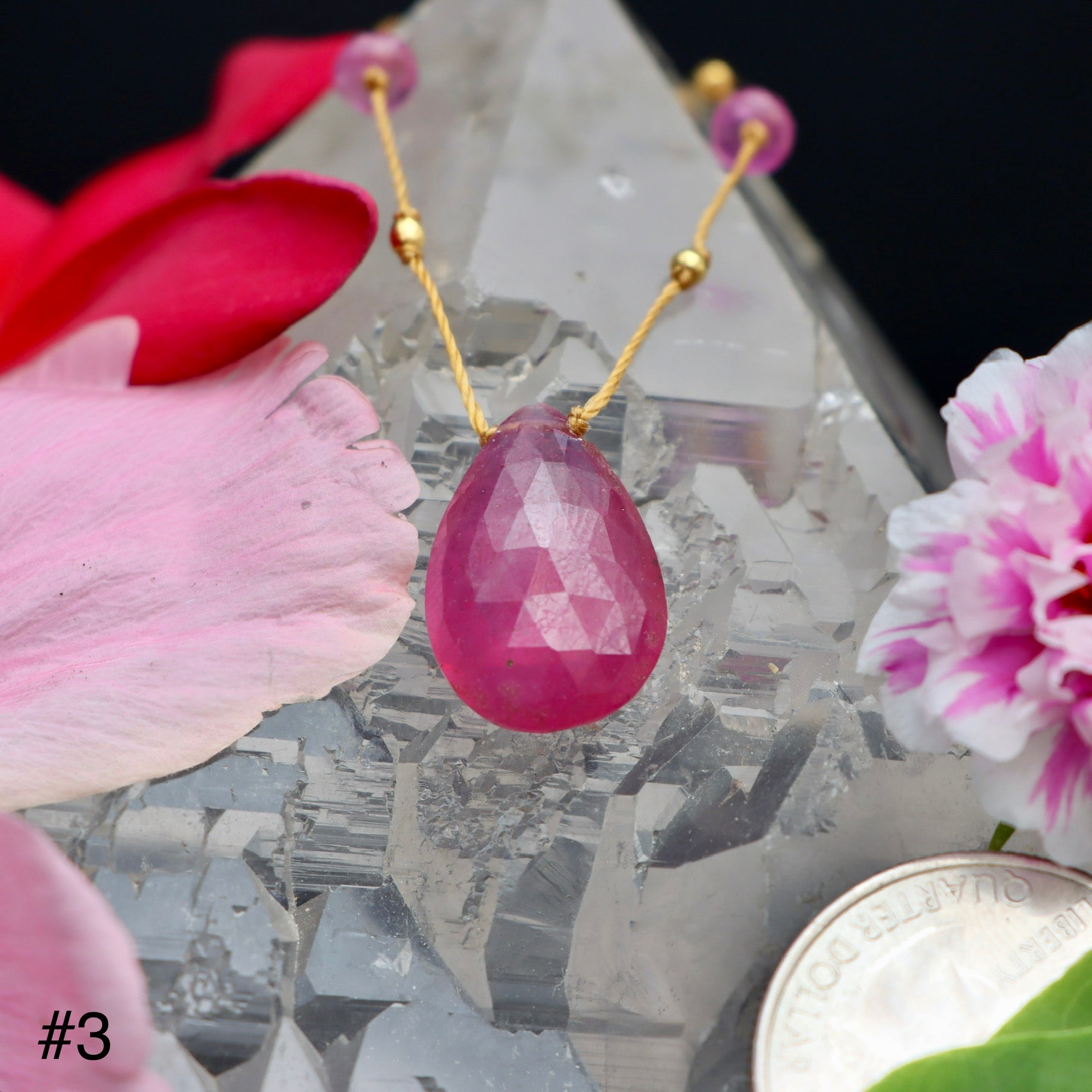 A sweet Pink Sapphire drop with handmade solid 18k gold beads.