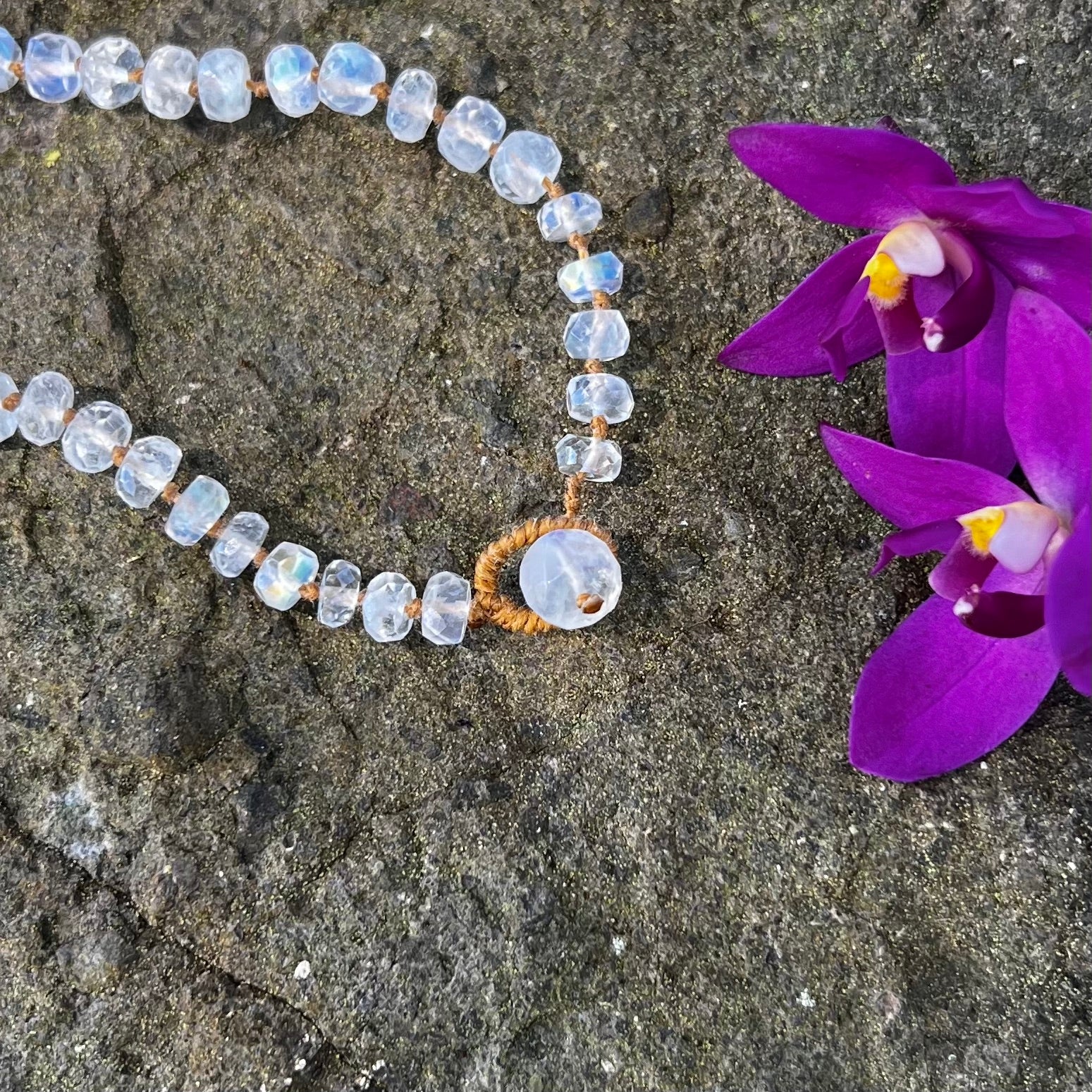 So named after our guiding moon, this kaleidoscopic amulet by way of India illuminates our peripheries to bigger pictures and helps us align with the cyclical nature of life, thereby embracing change and new beginnings. A magnifier of emotions, it relates to the higher chakras and the physical womb. It may be of assistance with fertility, hormone balance, inner vision, and intuition.