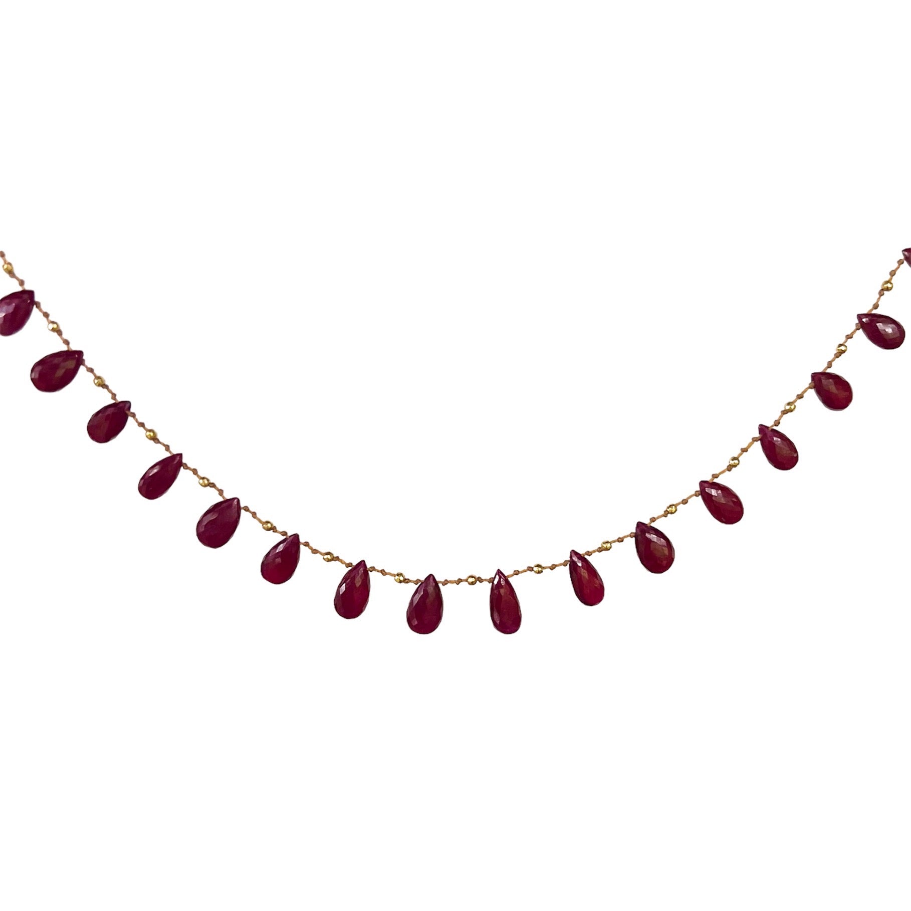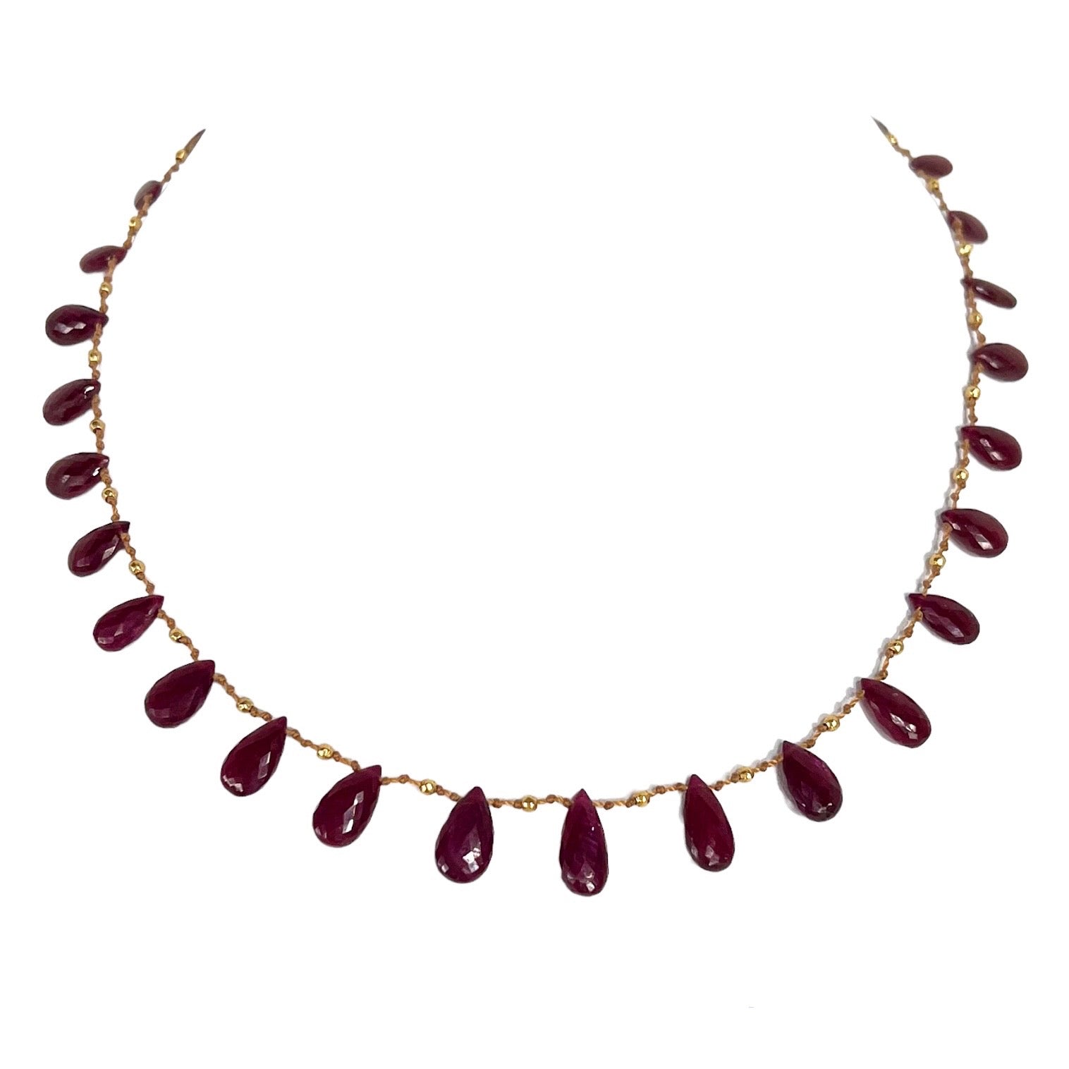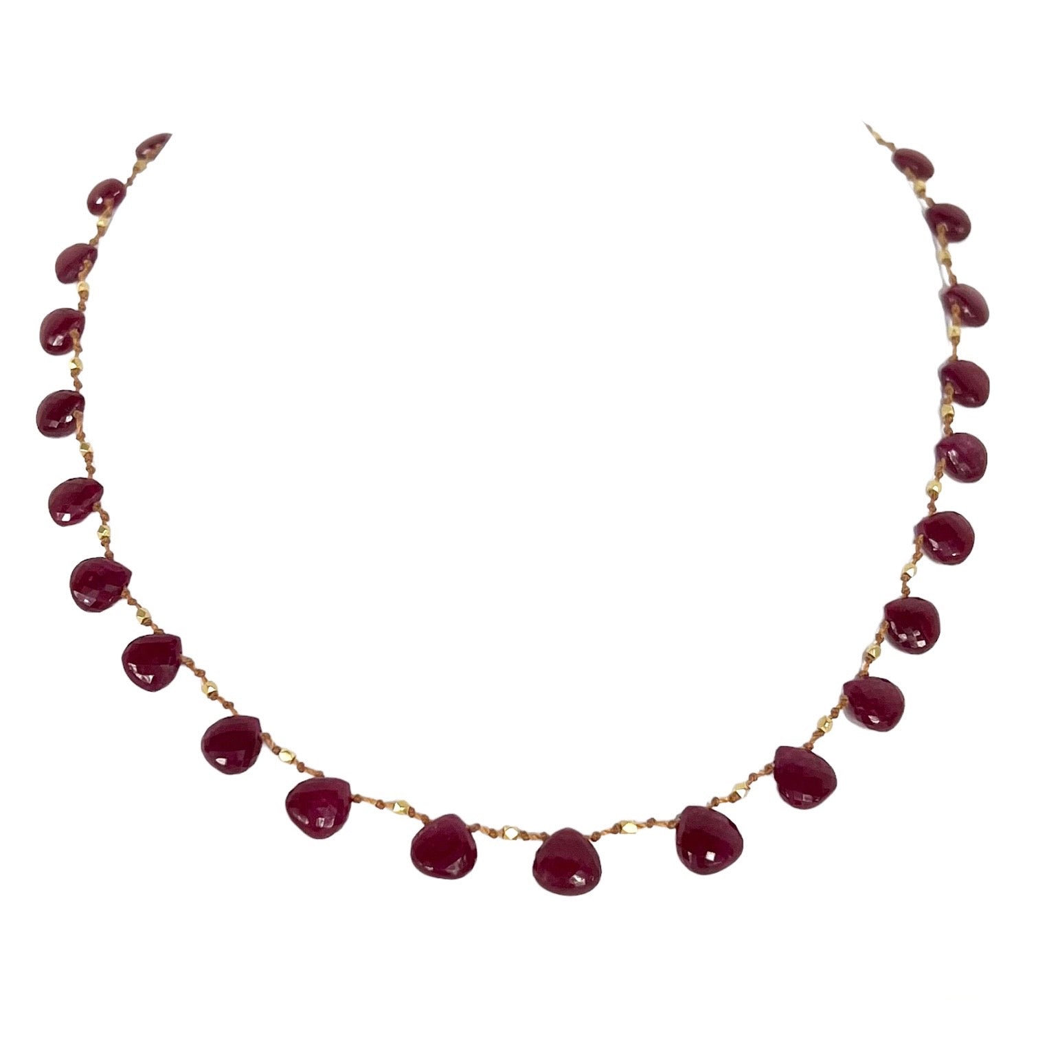 Gorgeous Deep Red Rubies delicately spaced with handmade solid 18k gold beads