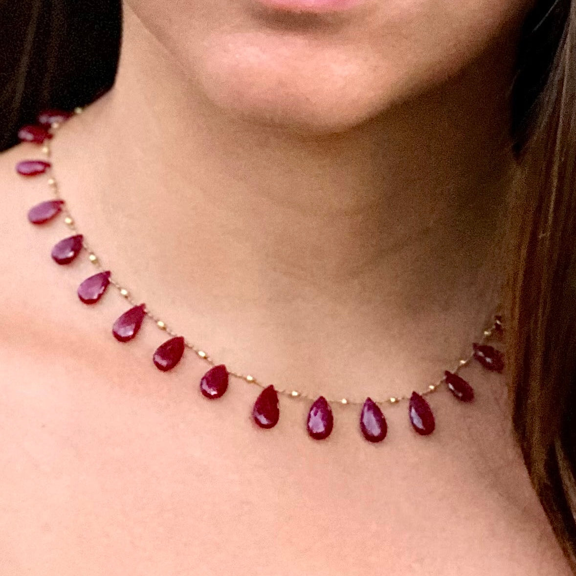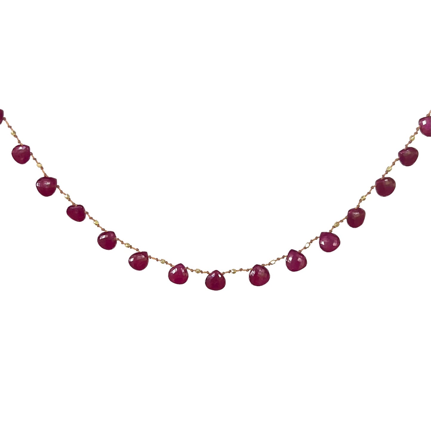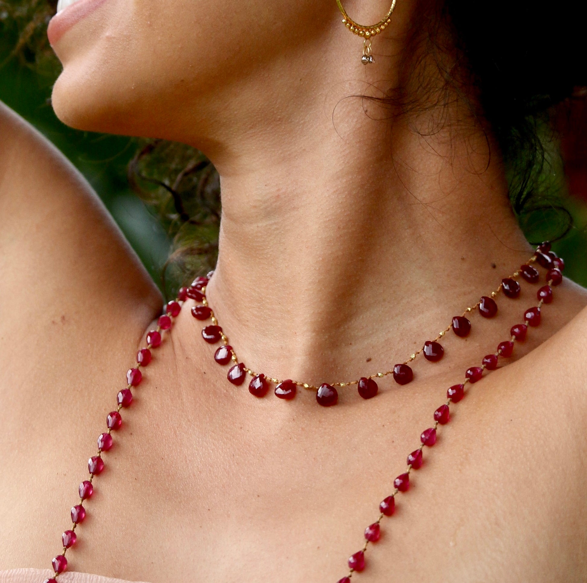 Gorgeous Deep Red Rubies delicately spaced with handmade solid 18k gold beads