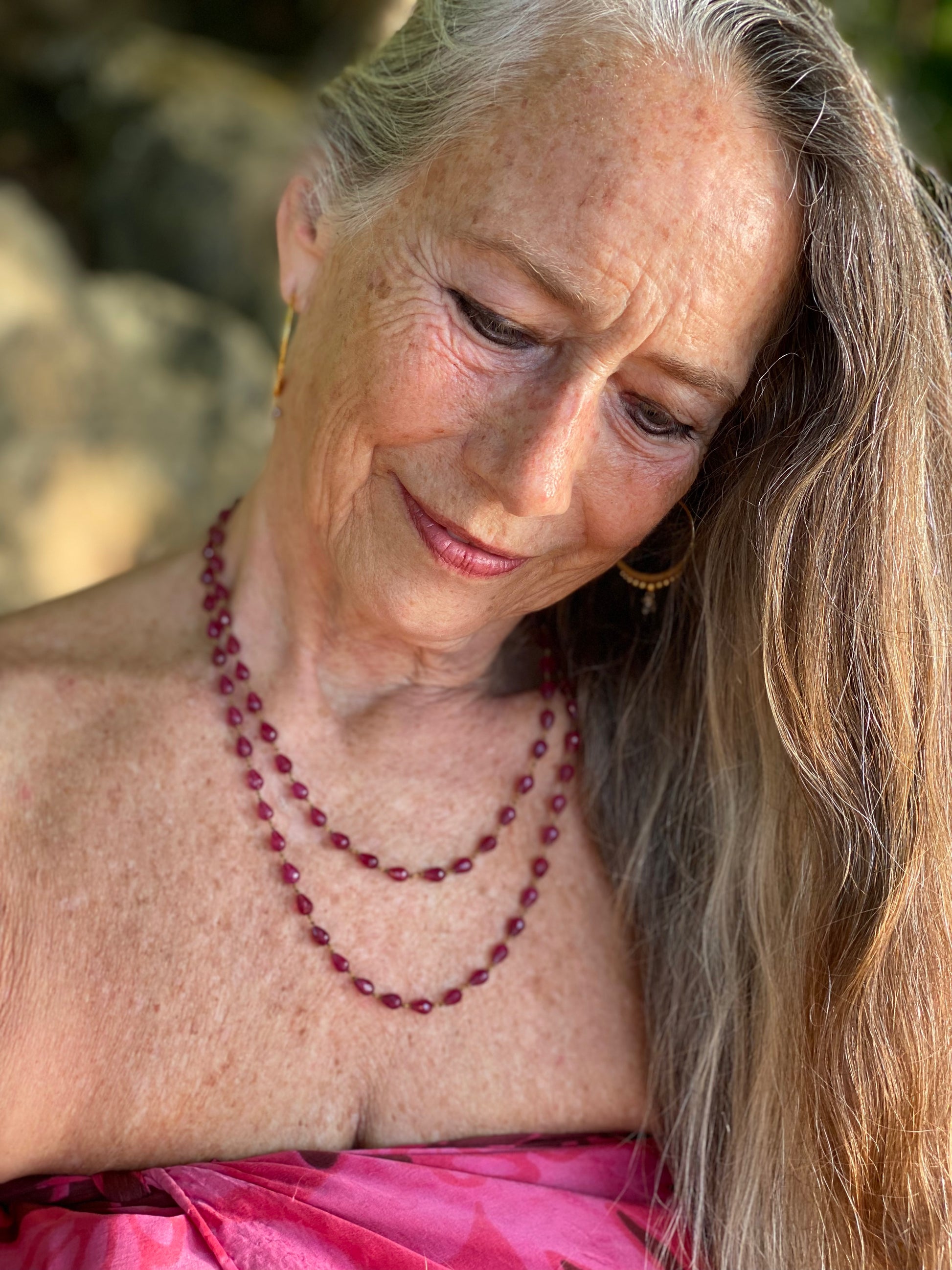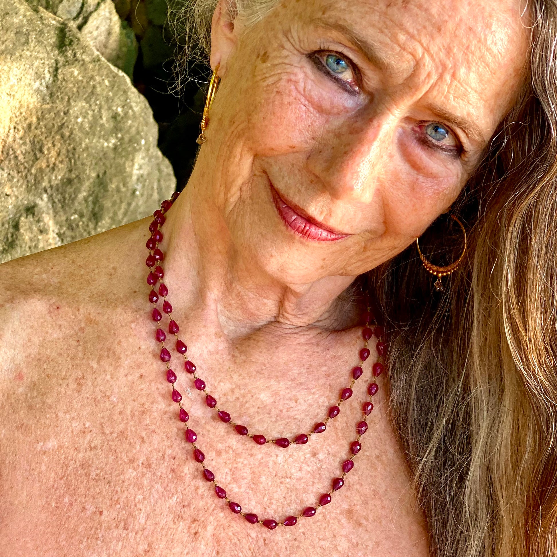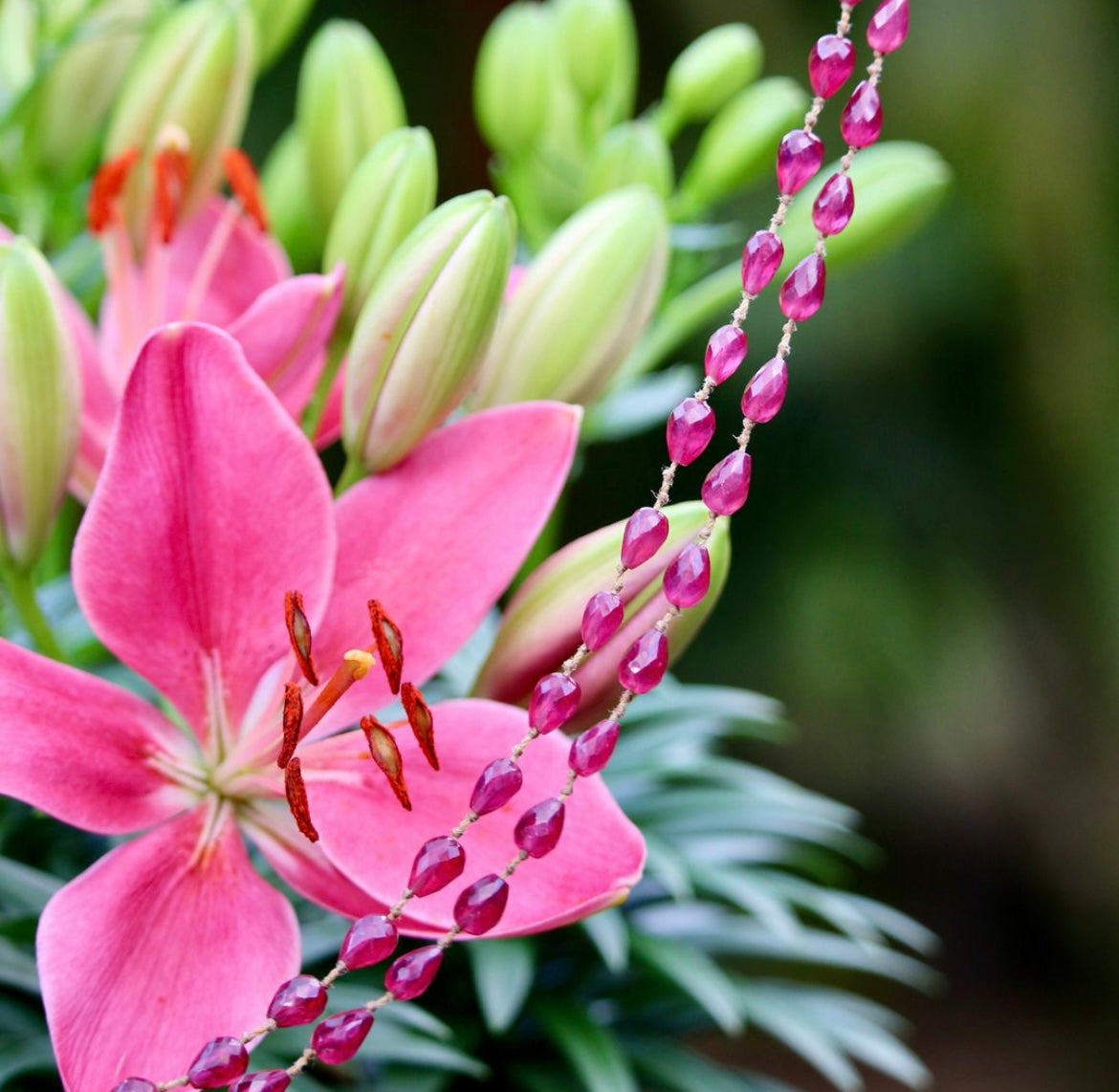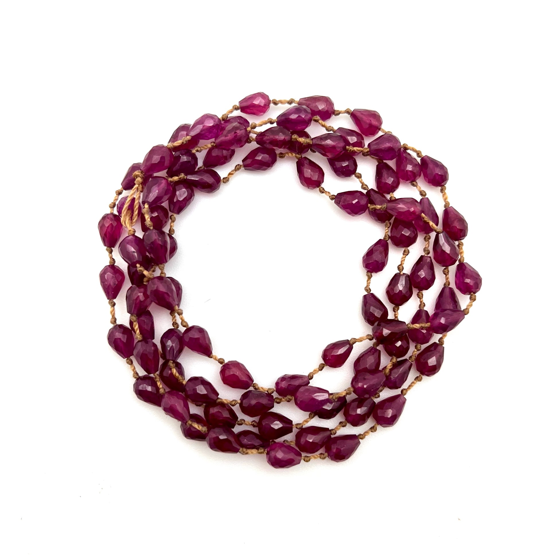 Gorgeous Deep Red Rubies. Can be worn singled, doubled or sometimes wrapped around the wrist.