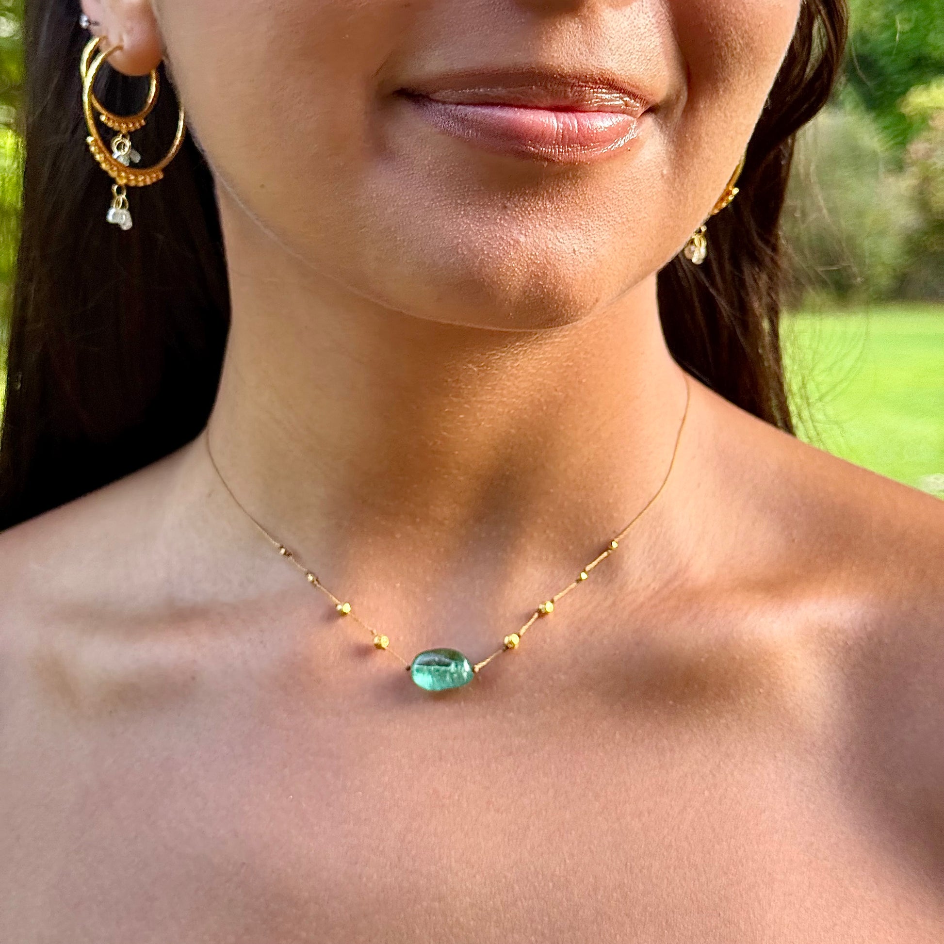 Smooth Emerald & Gold Accent Strand