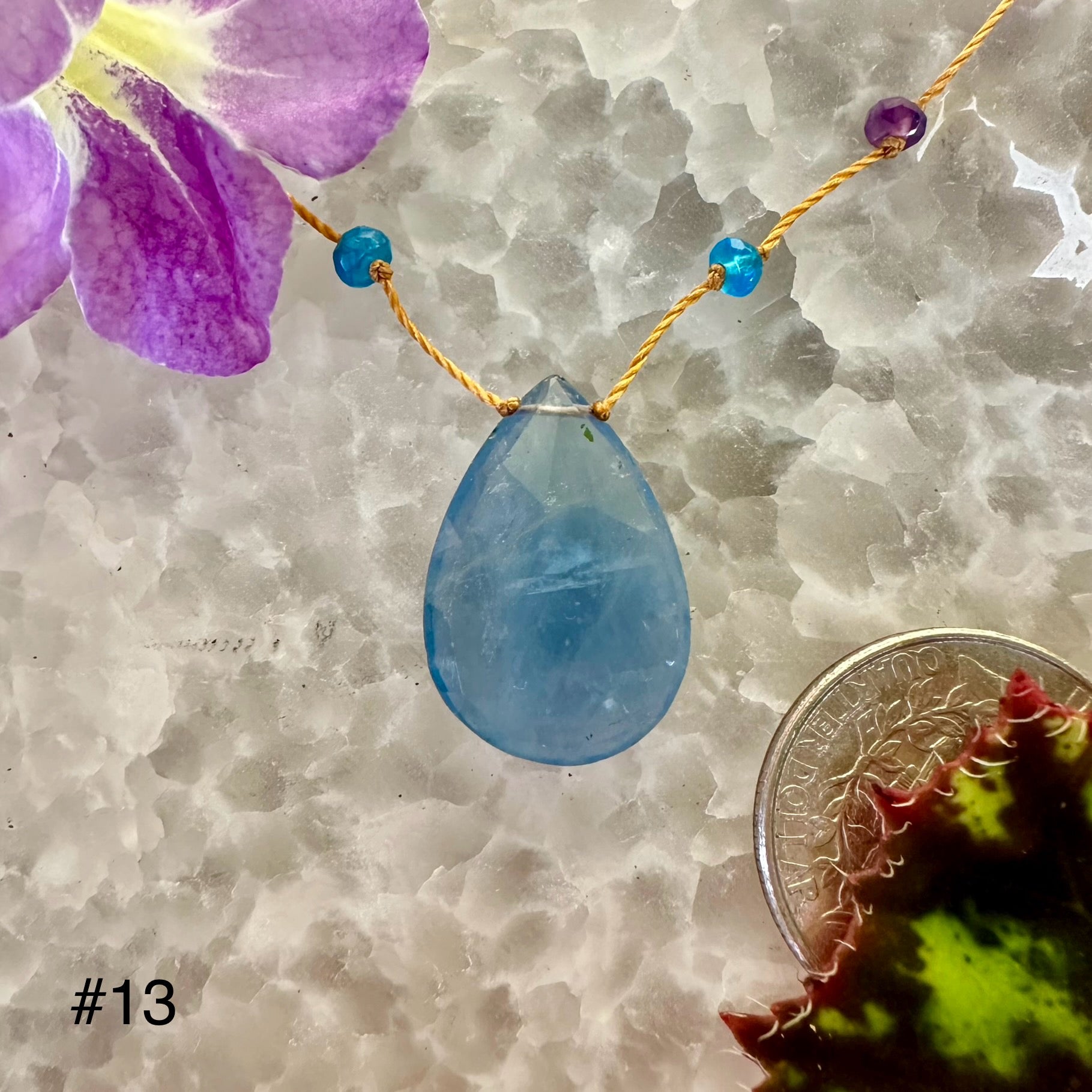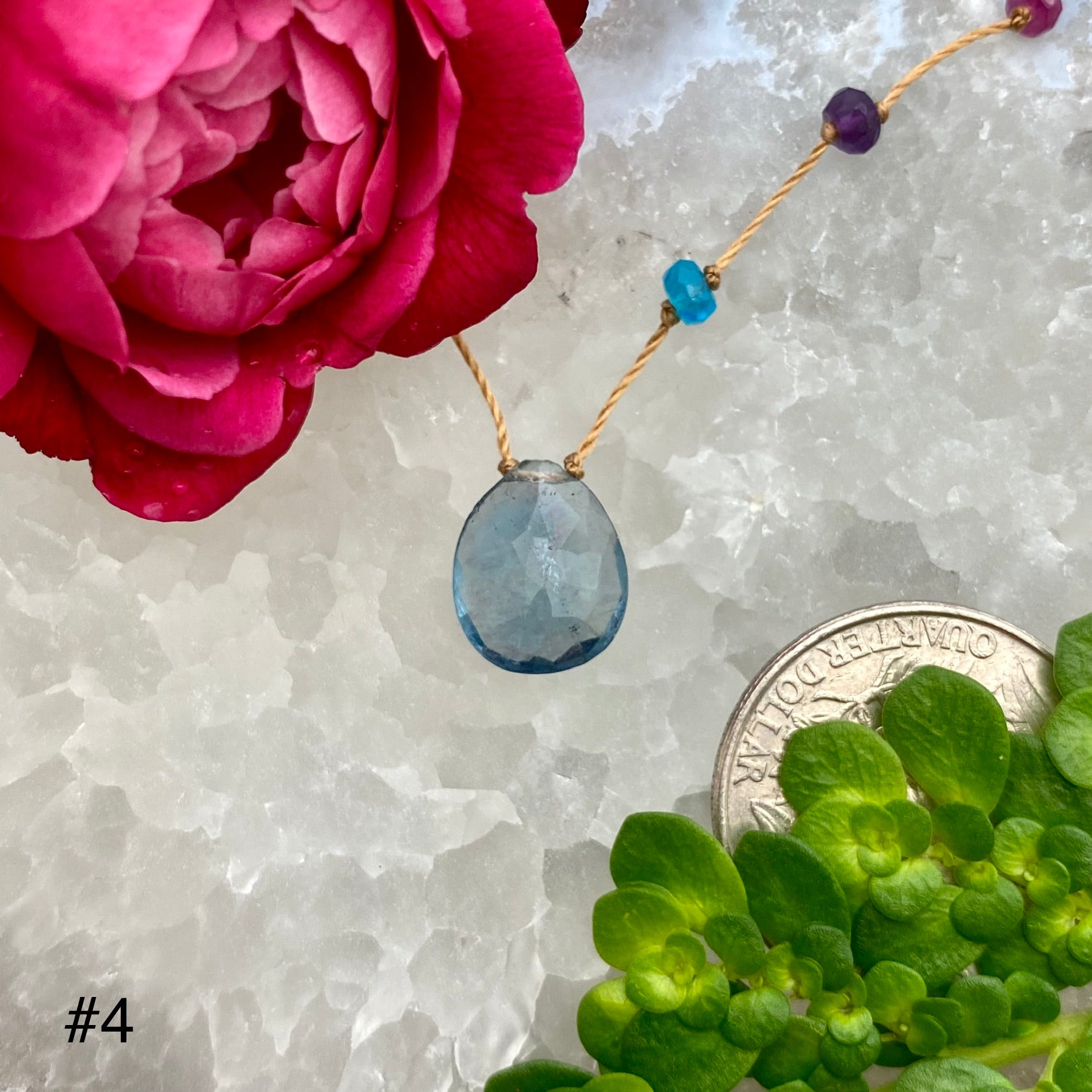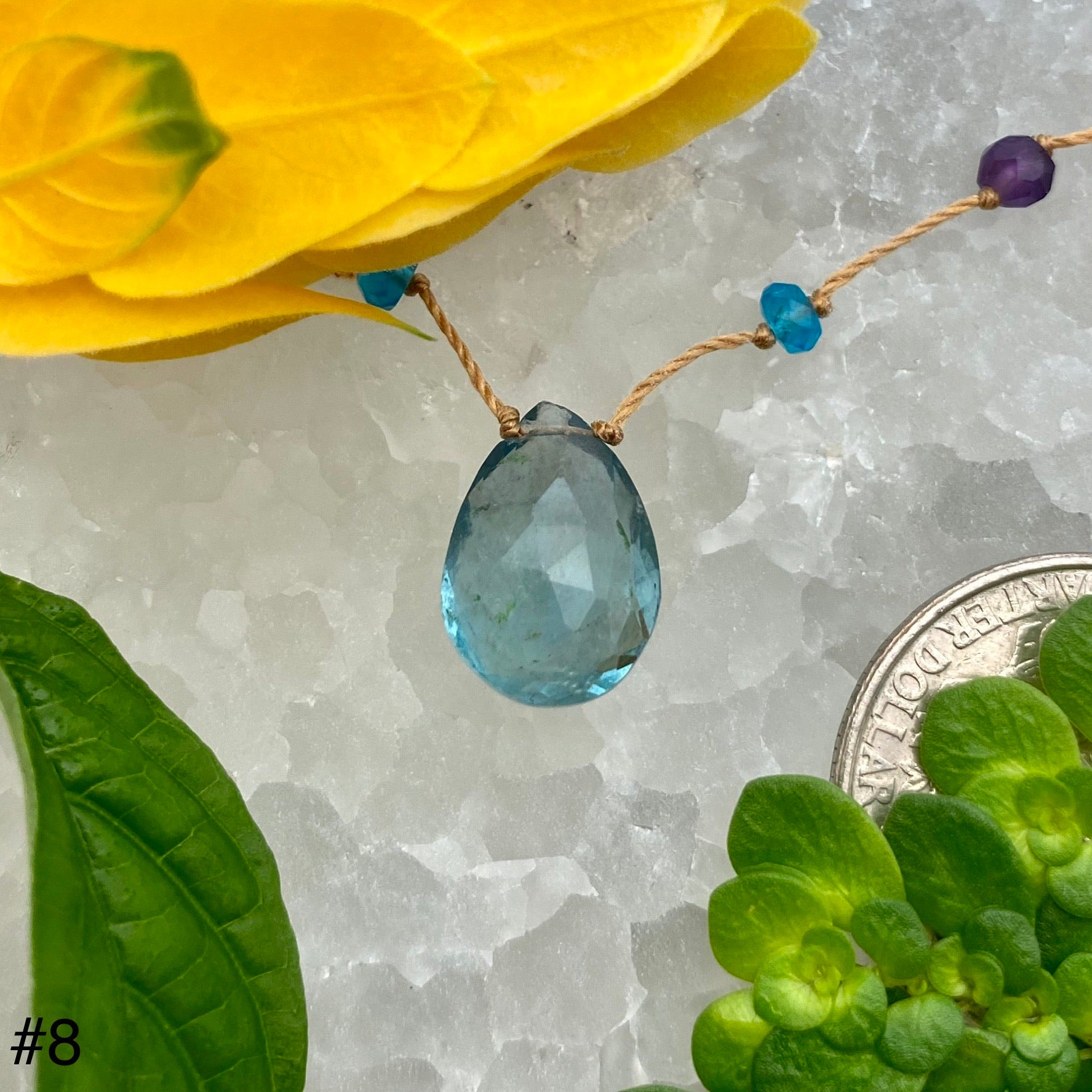 Perhaps the quintessential beginning of Rainbow Gems Kauai, our rainbow drops have been adorning people for over a decade. These delicate rainbow drops showcase the full light spectrum with carefully spaced individual gemstones, culminating in a featured crystalline drop. Just as rainbows herald new beginnings and luck these exquisite strands are the perfect place to begin your love affair with Amalia’s artwork. Many find that once they put on their rainbow drop they never take it off again, such is the nature of love. These strands are perfect for the minimalist at heart and make a striking impression stacked in a series with our other collections.