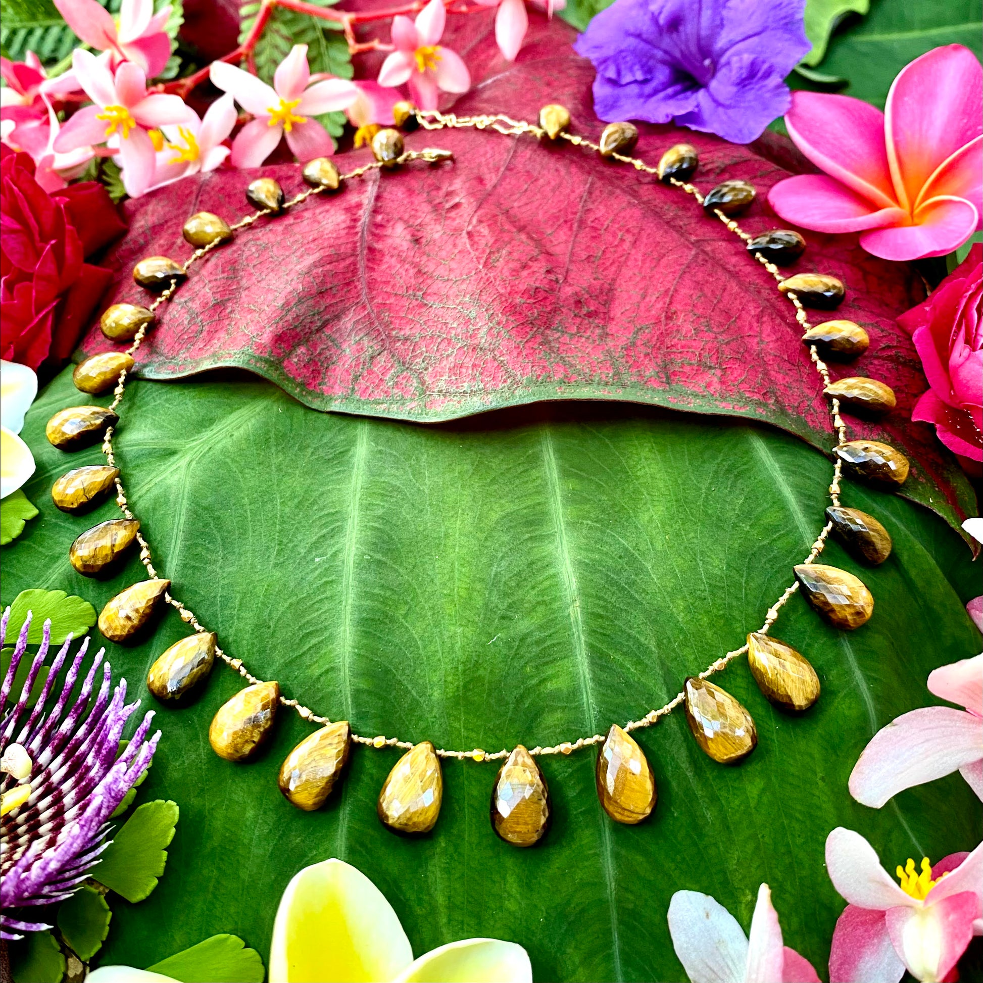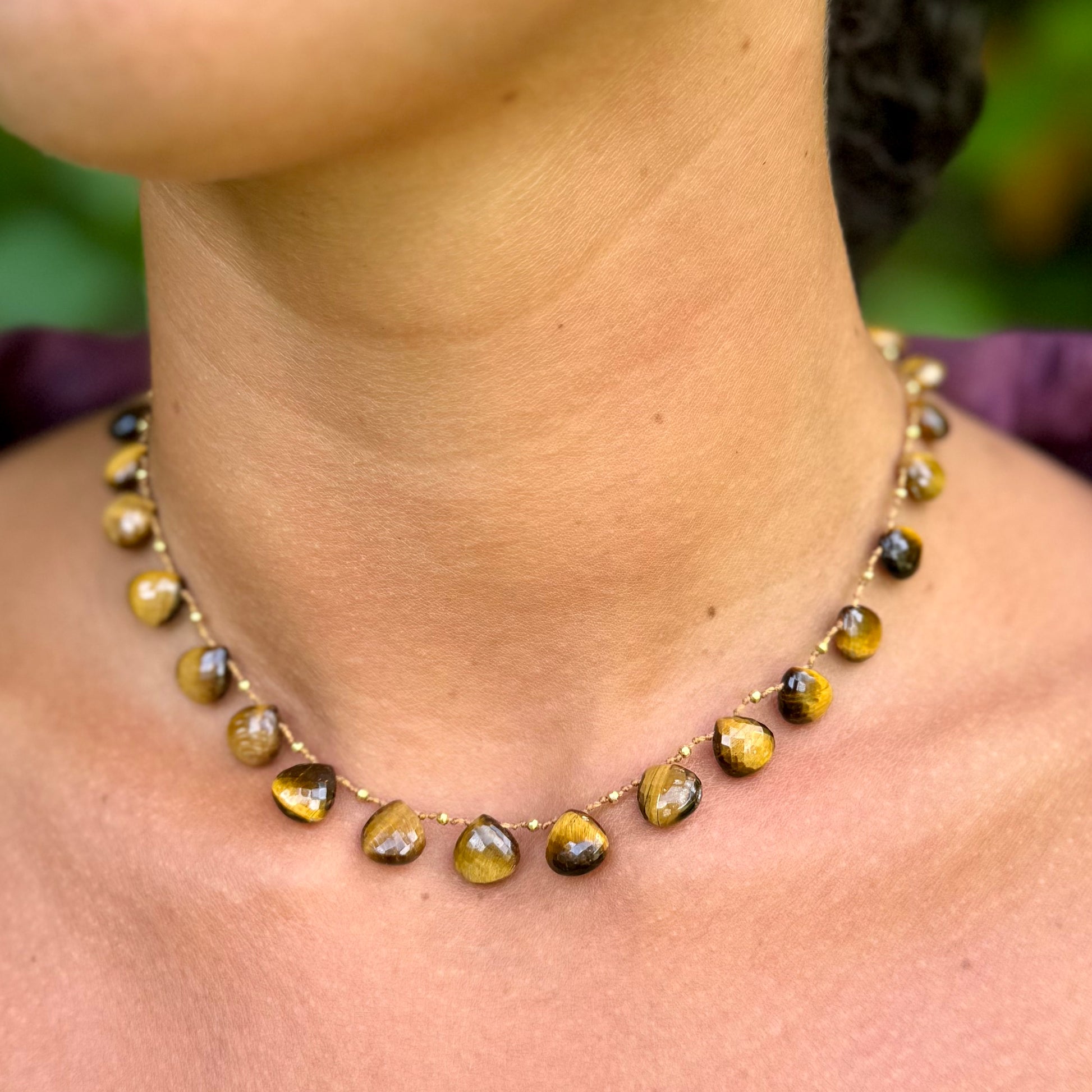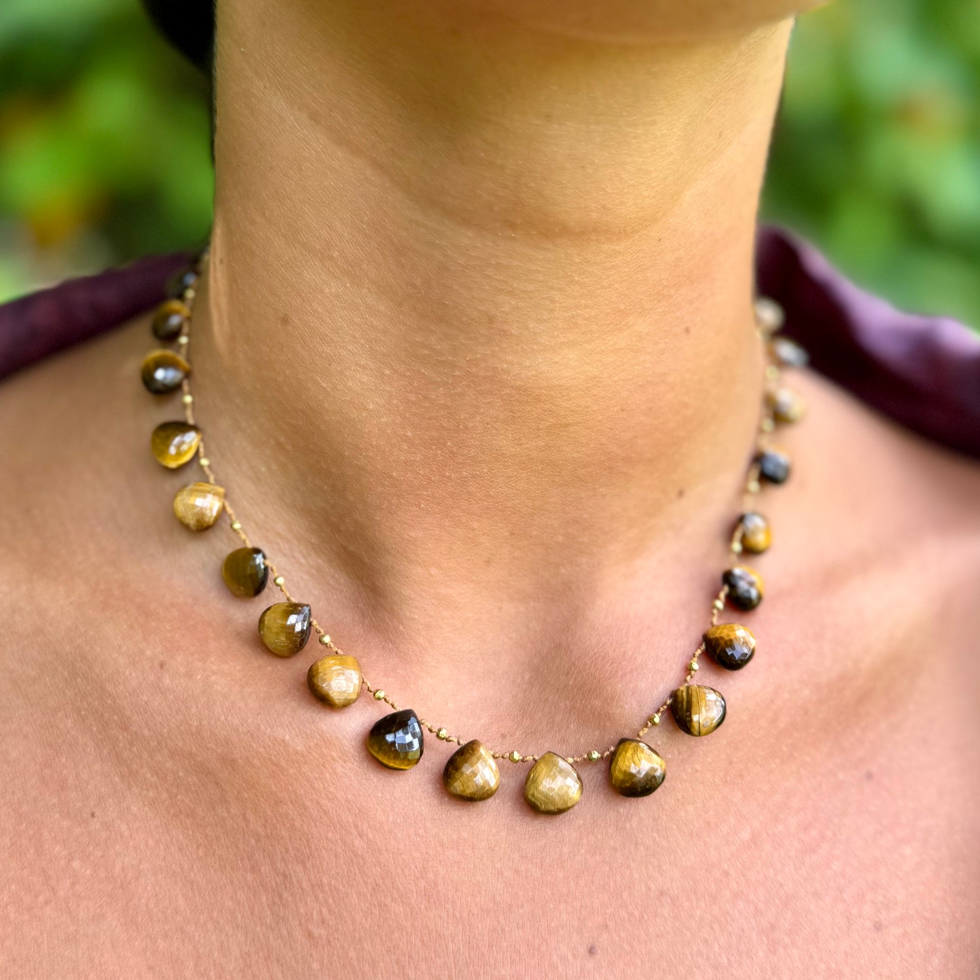 Powerful faceted Tiger's Eye delicately spaced with handmade solid 18k gold beads.
