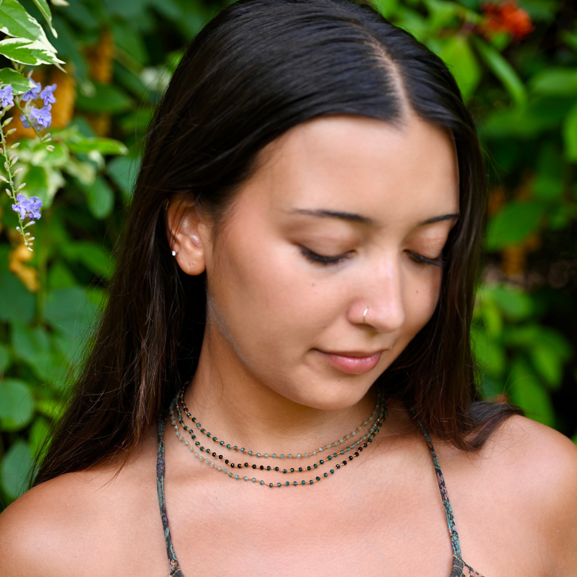 Leis are a quintessential Hawaiian tradition formed in the stringing of aromatic flower blossoms and local foliage bestowing the spirit of aloha upon the recipient. While these gemstone garlands are visually similar to our mala collection, the number of beads vary as benefits the particular gemstone design and are meant to be worn as a stringed embrace of love, friendship, welcome, appreciation and honor.
